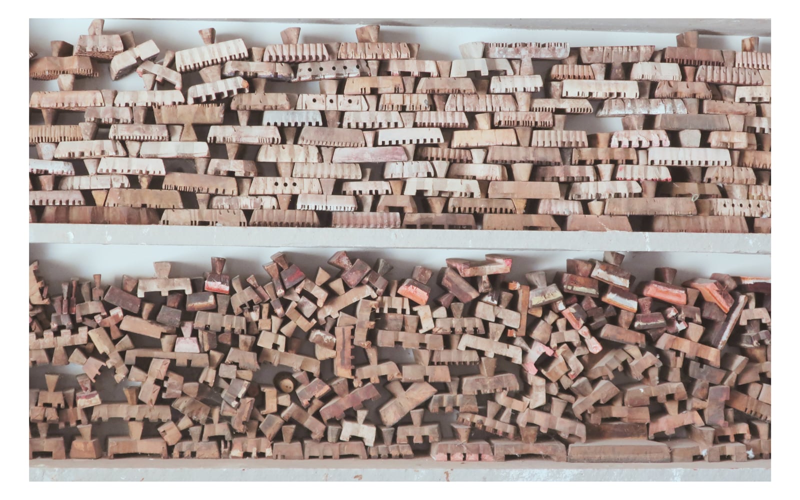 ブロックプリント生地【50cm単位】インド綿 ストライプ柄 白×ピンク #54019-WT1