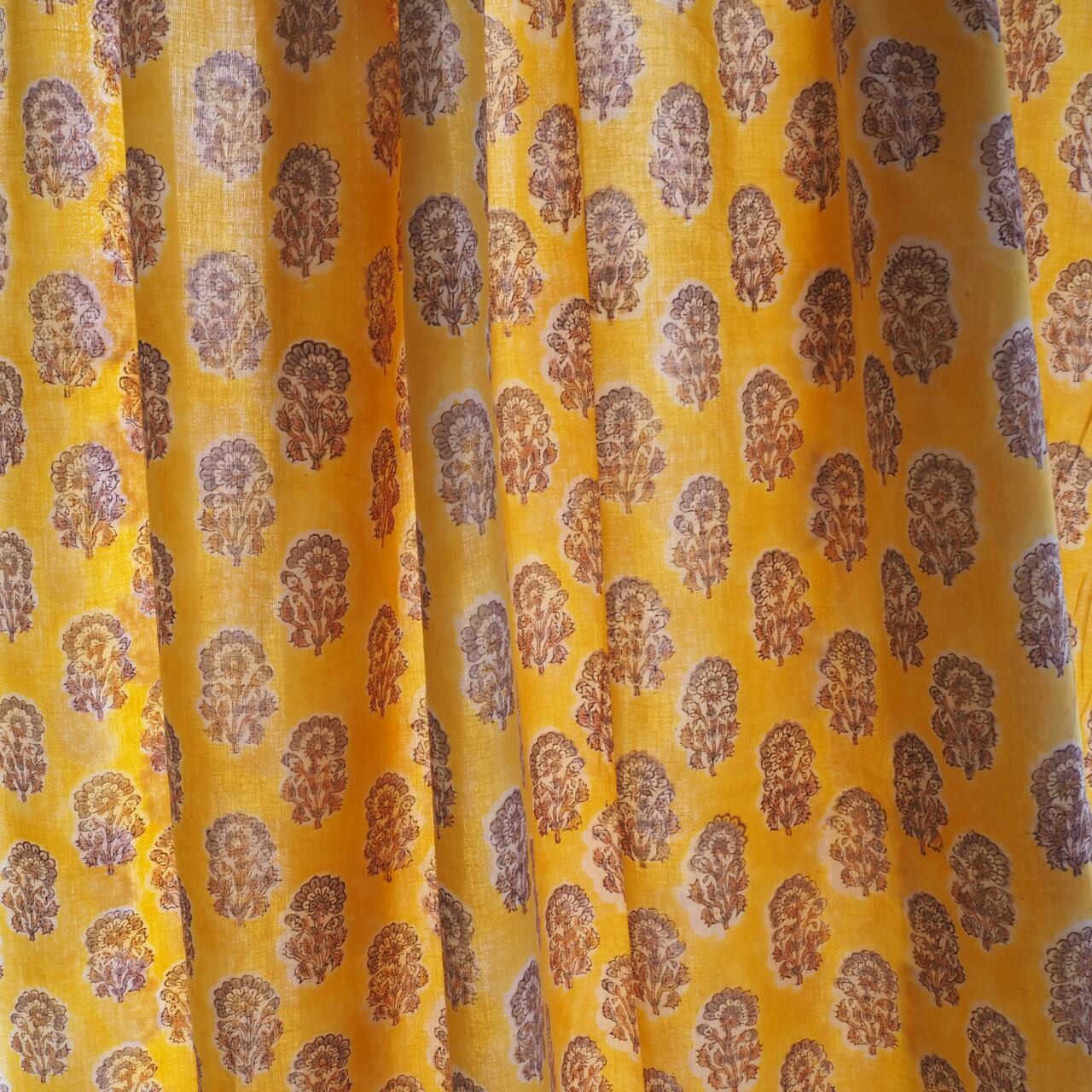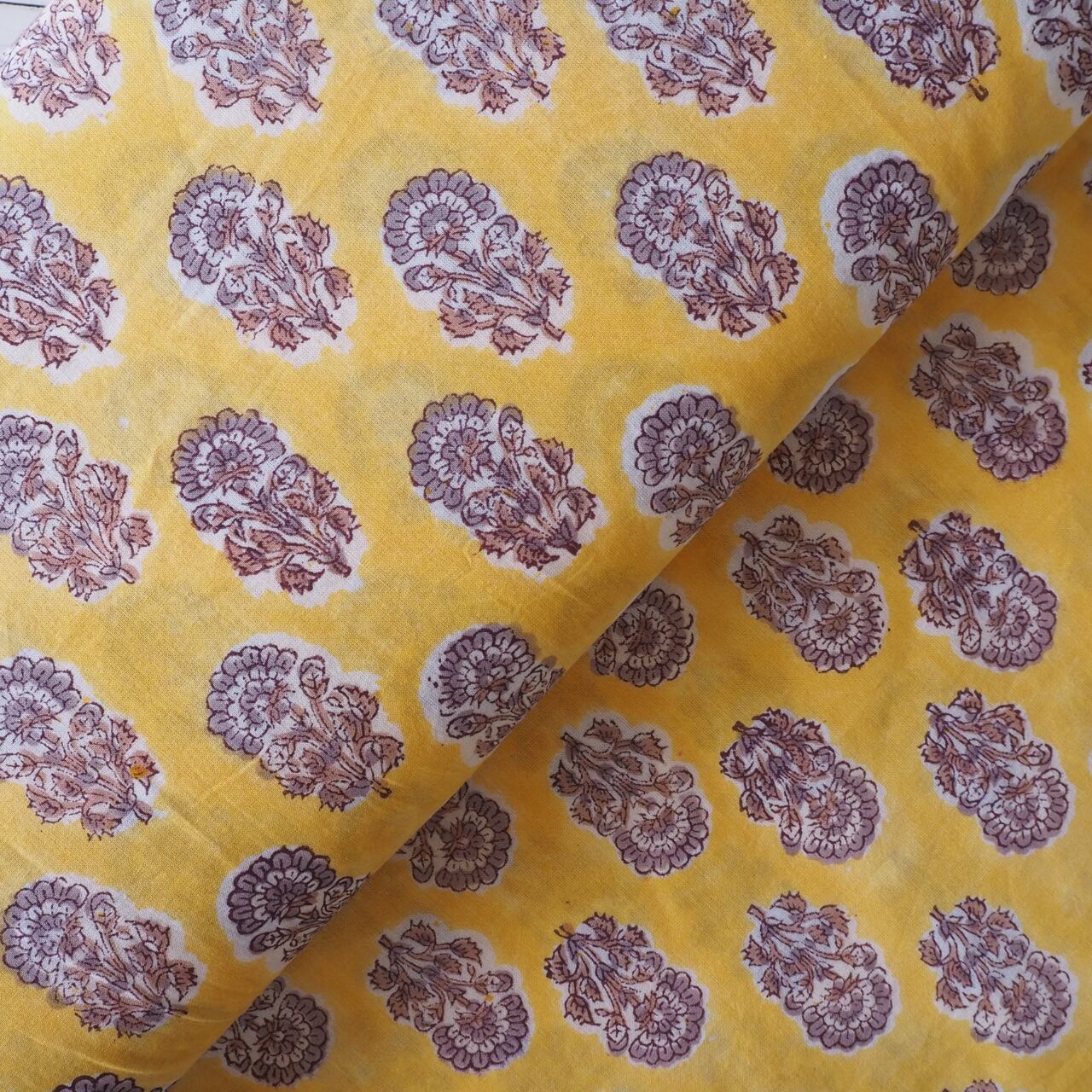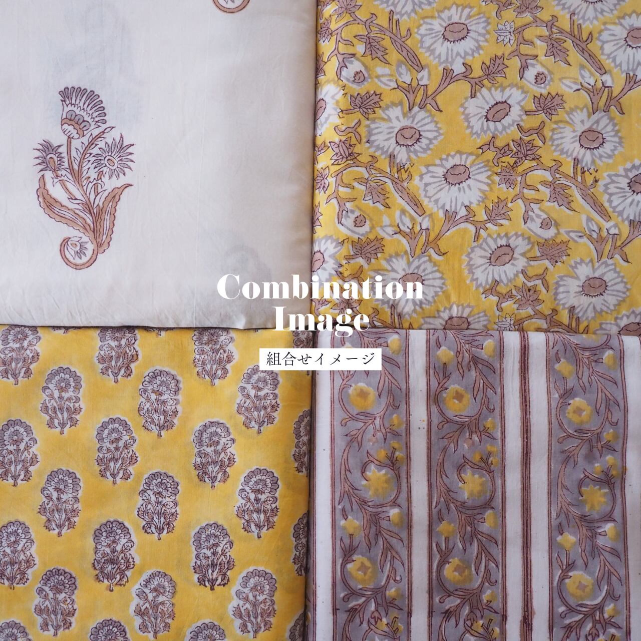 ブロックプリント生地【50cm単位】インド綿 小花柄 黄色×グレージュ #16726-YL2