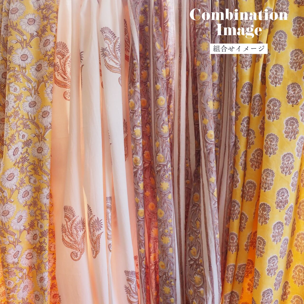 ハンドブロックプリントと呼ばれるインドのジャイプール地方に古くから伝わる伝統的な技法で、木彫りのスタンプで色を何度も重ね、全ての工程がインドの職人さんの手作業によって仕上がるAll Handmadeの生地です。