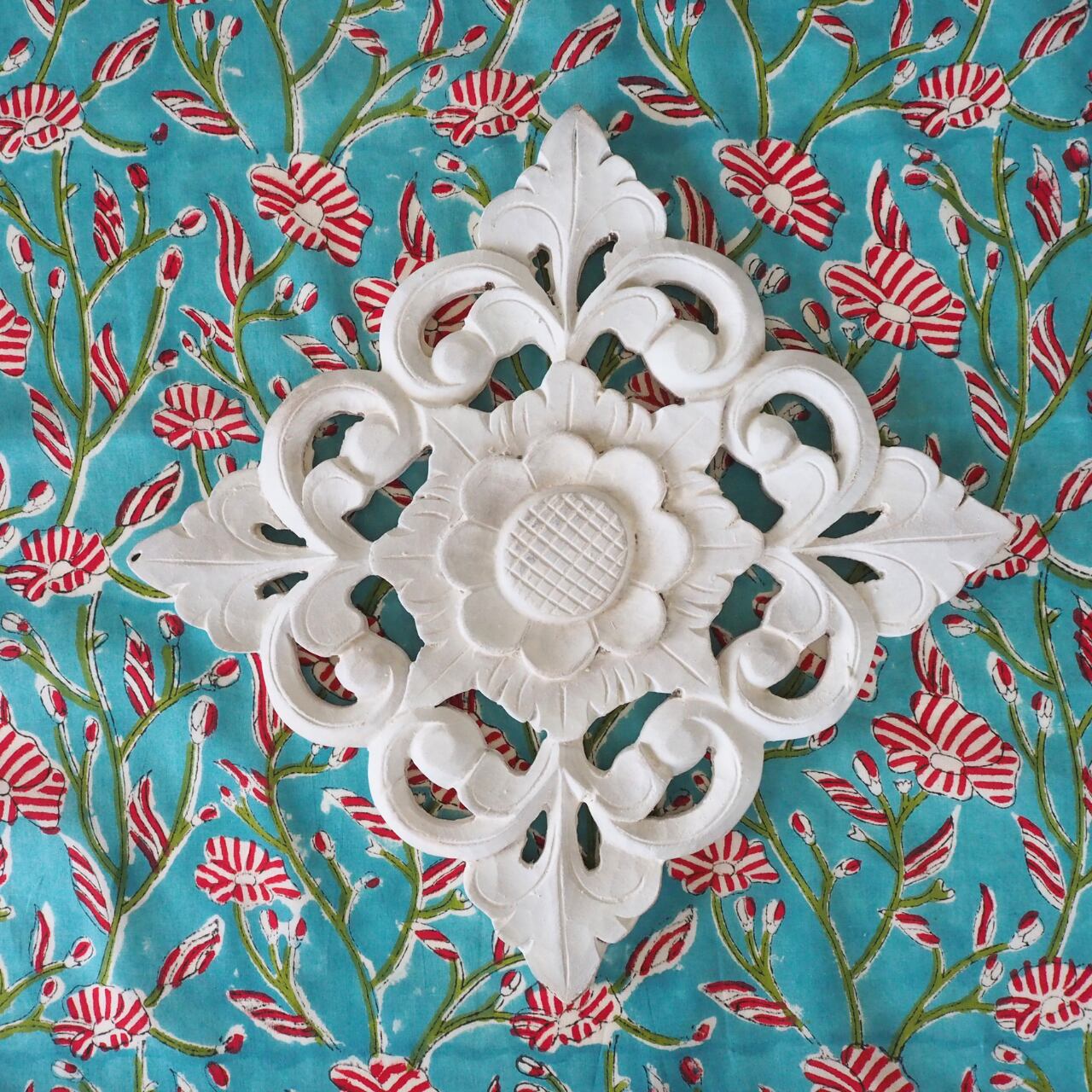 ハンドブロックプリントと呼ばれるインドのジャイプール地方に古くから伝わる伝統的な技法で、木彫りのスタンプで色を何度も重ね、全ての工程がインドの職人さんの手作業によって仕上がるAll Handmadeの生地です。