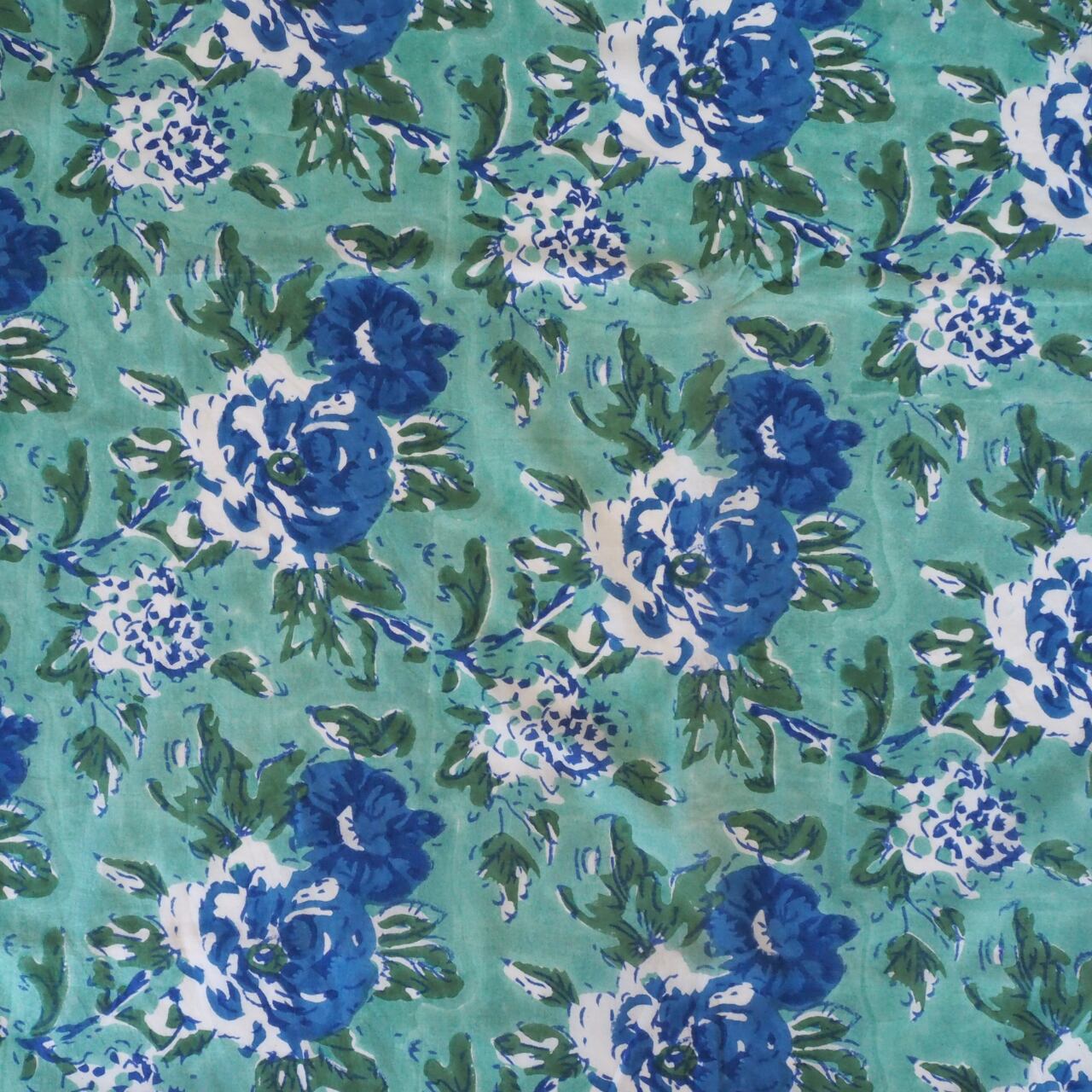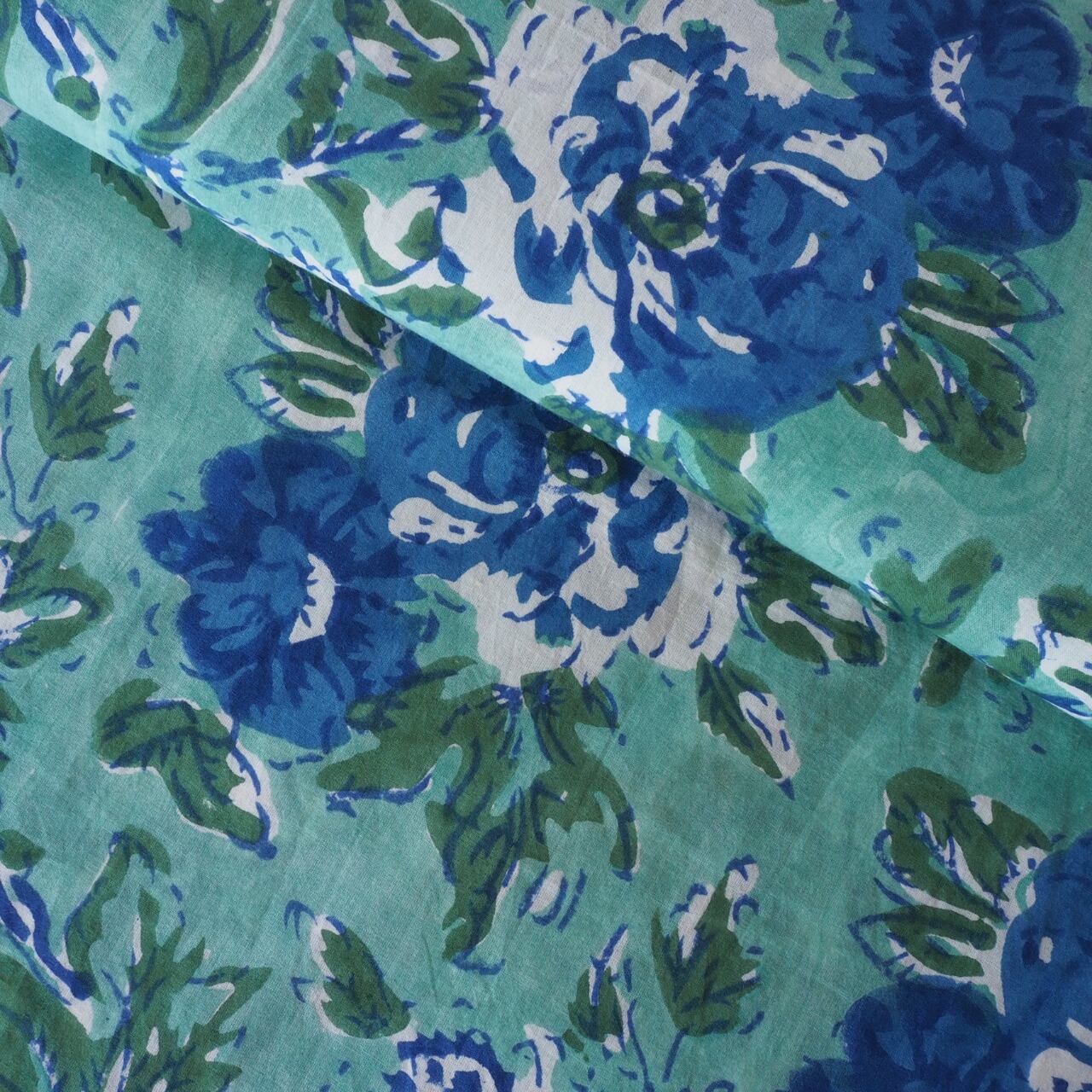 ブロックプリント生地【50cm単位】インド綿 花柄 緑×青 #17629-GR2