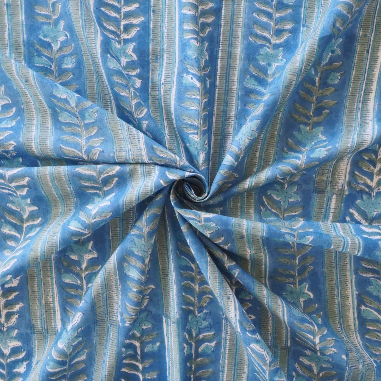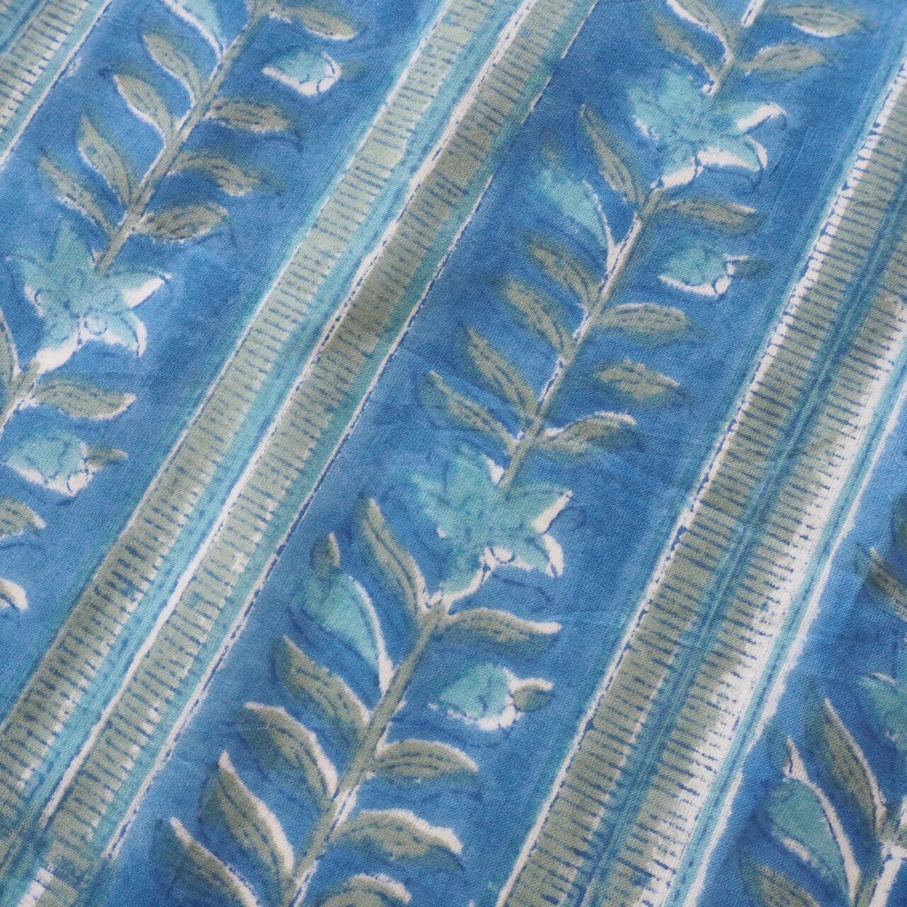 ブロックプリント生地【50cm単位】インド綿 ストライプ柄 青×くすみグリーン×水色 #20039-BL2