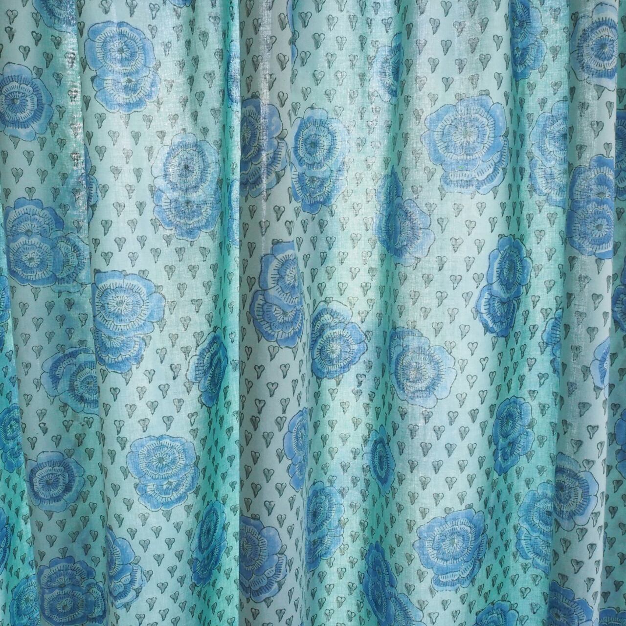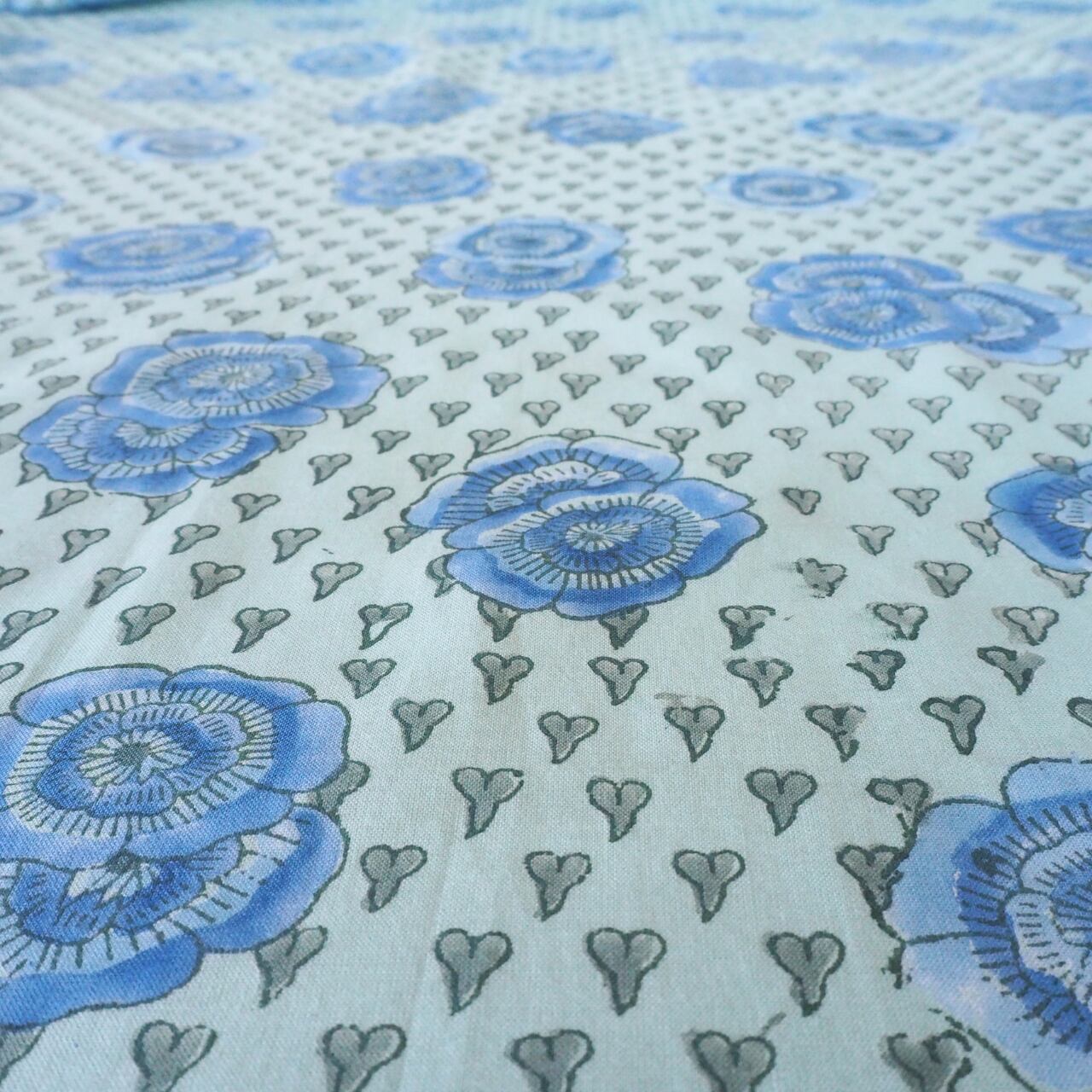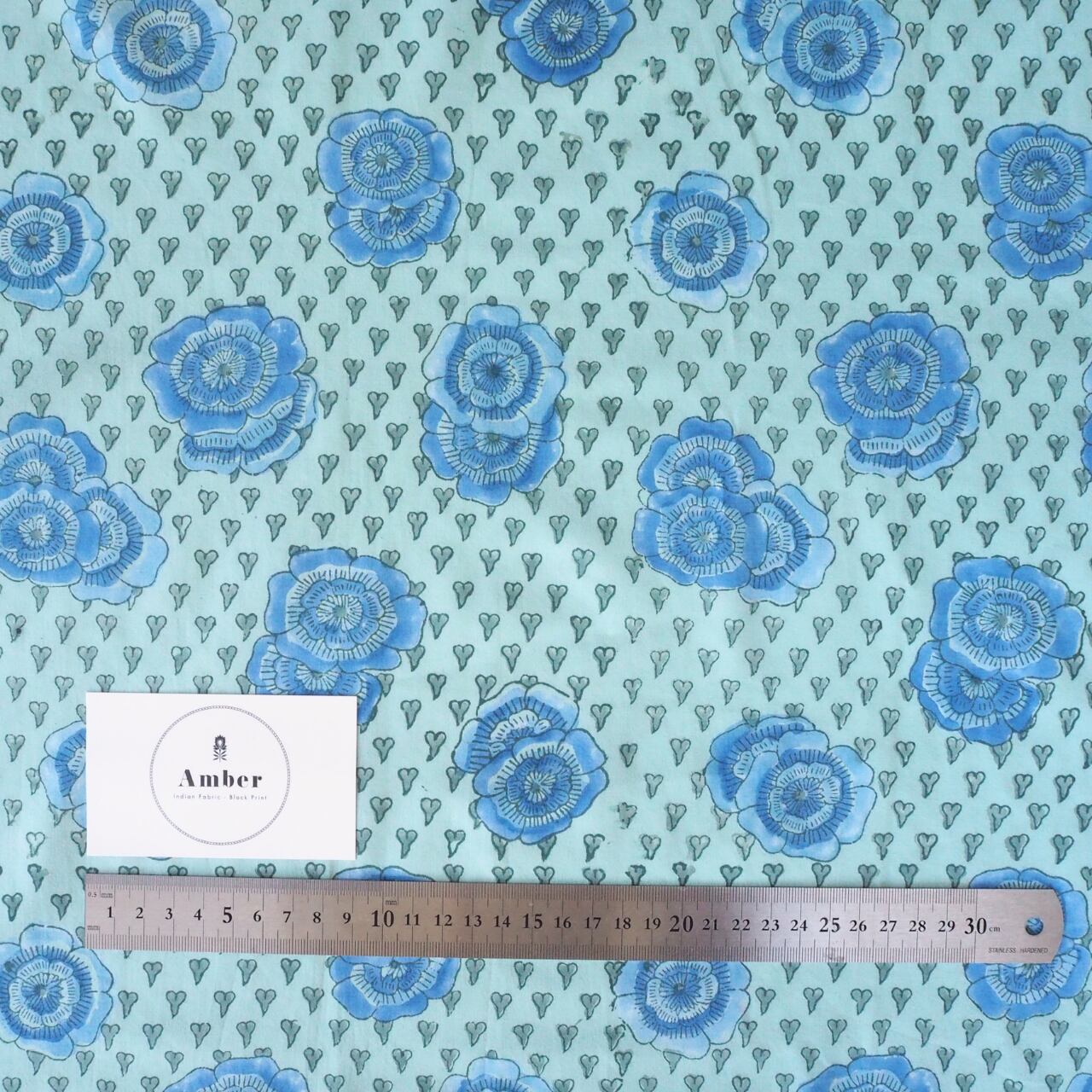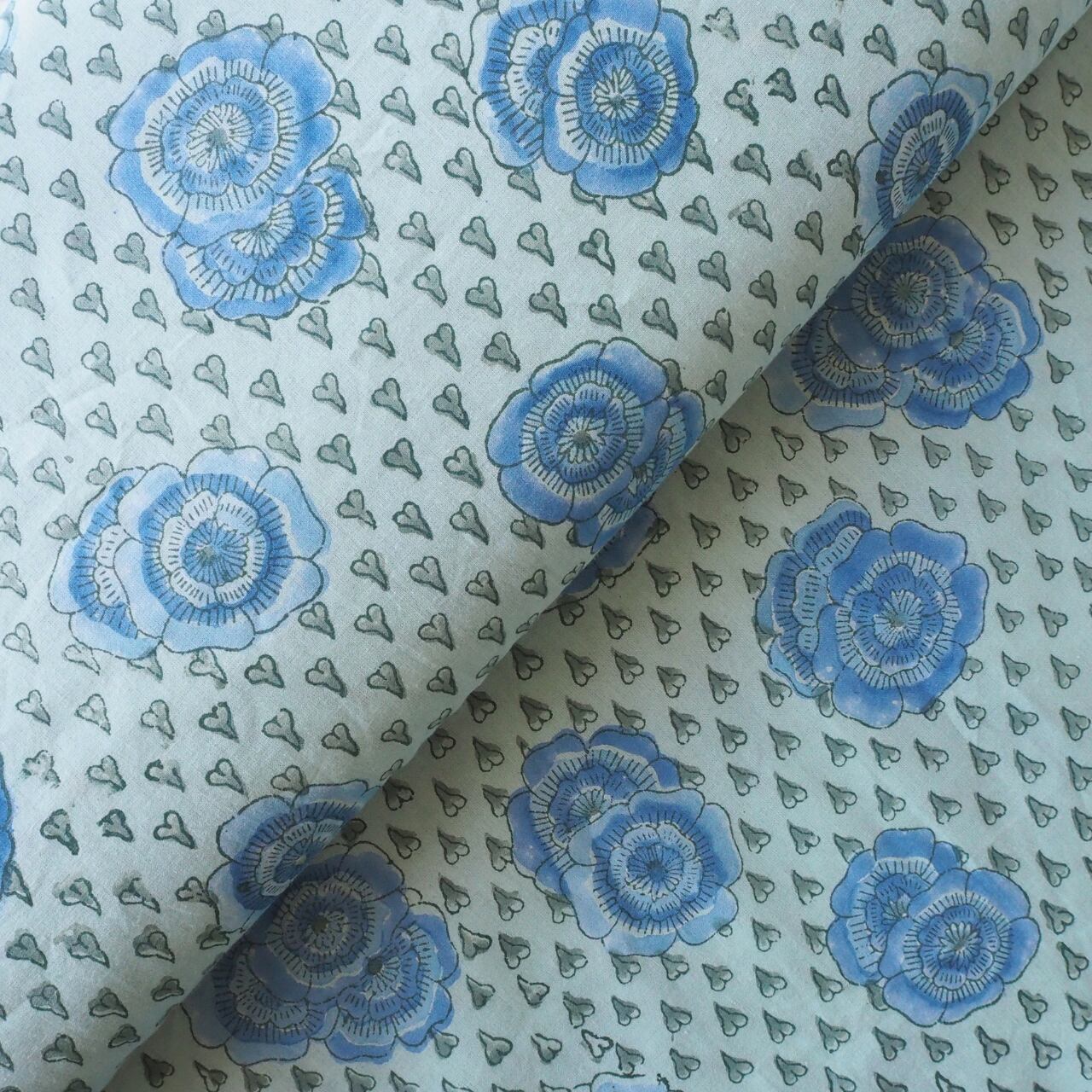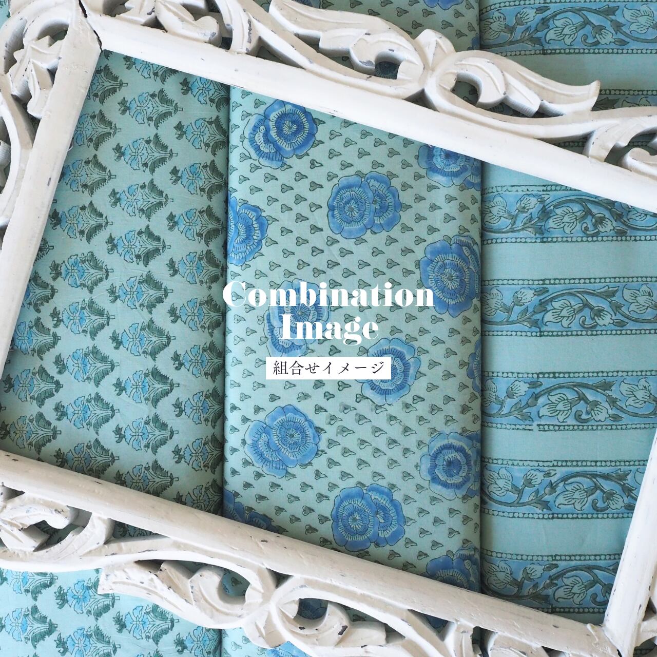 ブロックプリント生地【50cm単位】インド綿 花柄 くすみグリーン×ブルー #22347-GR1【再入荷】