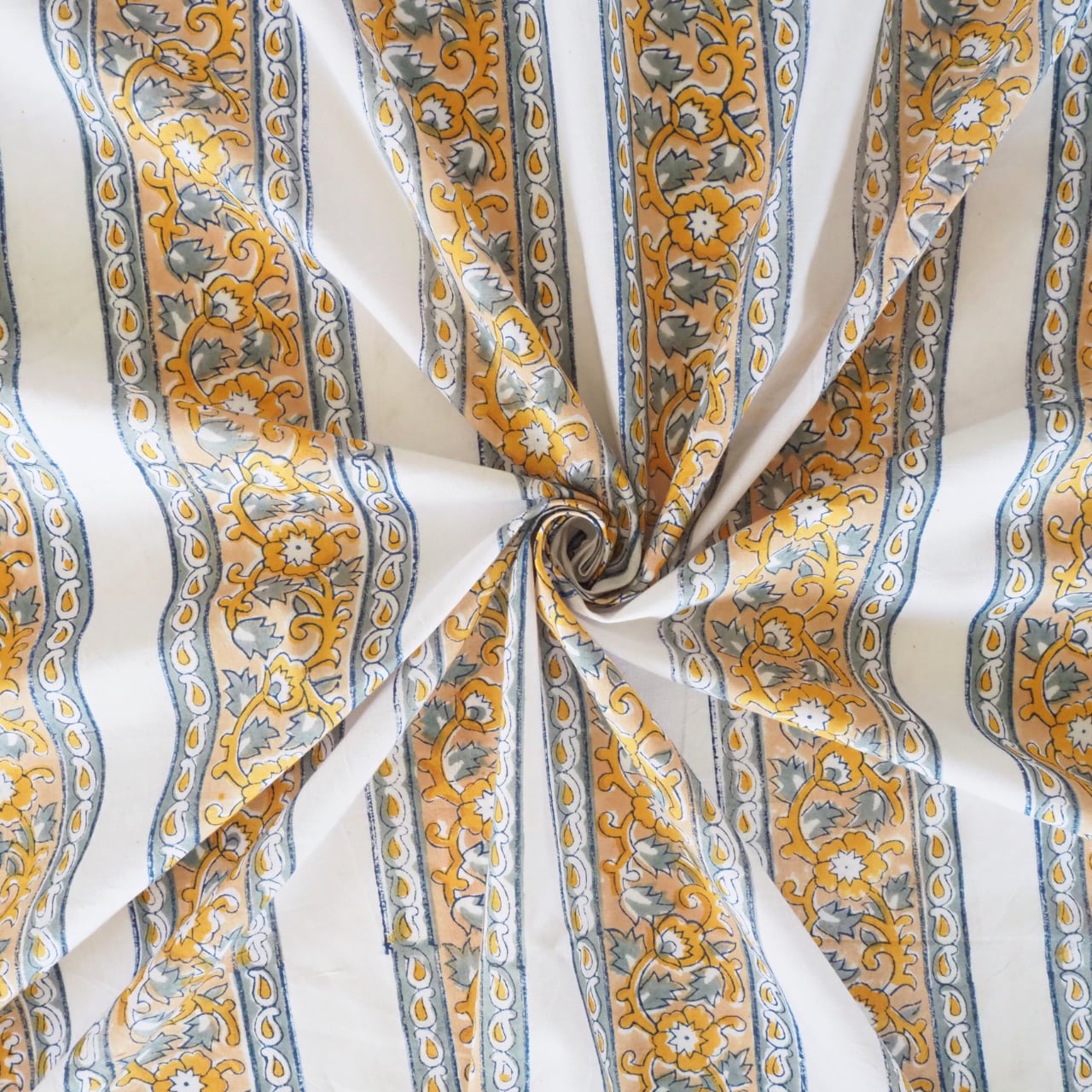 ブロックプリント生地【50cm単位】インド綿 ストライプ柄 白×カーキ×黄色 #22949-GR2