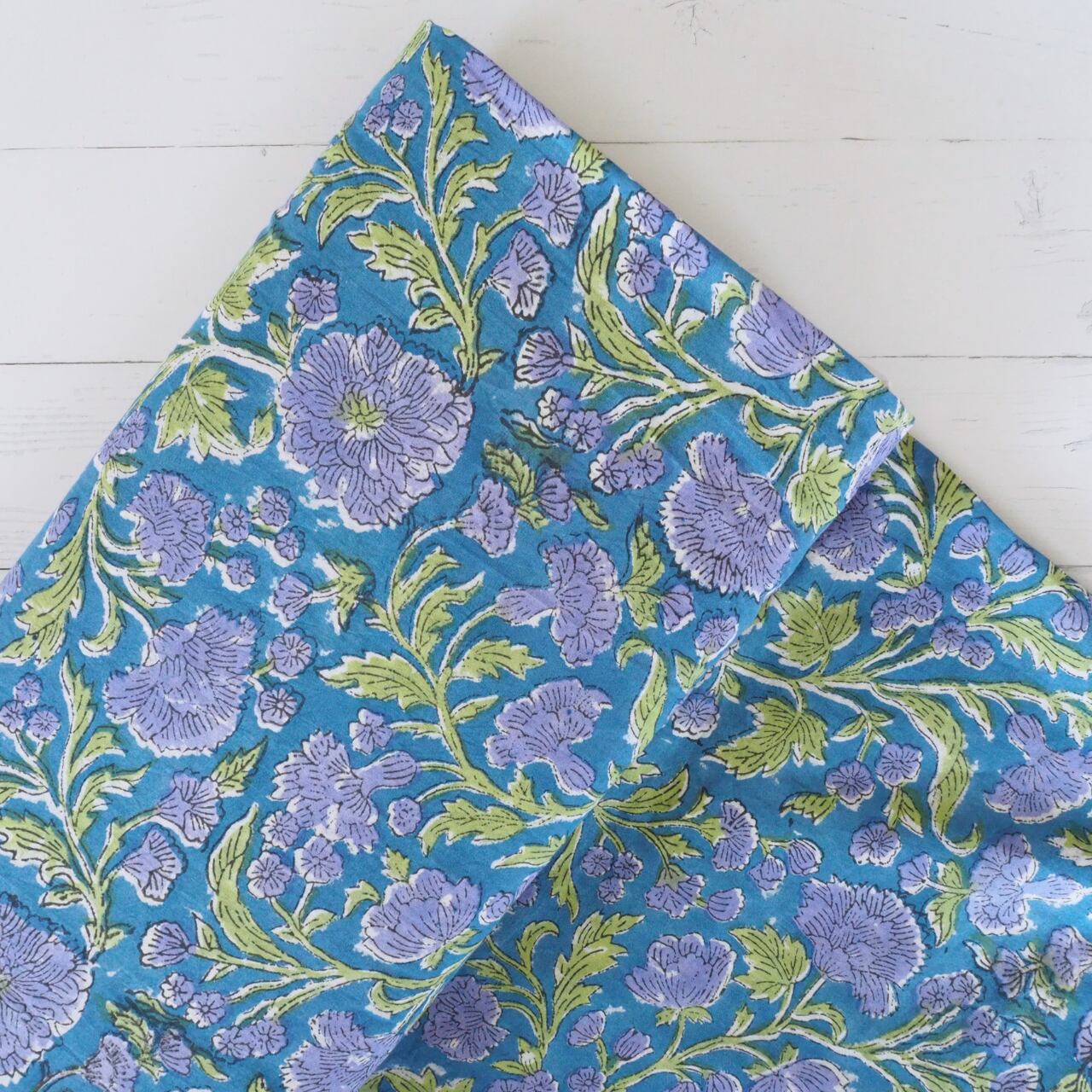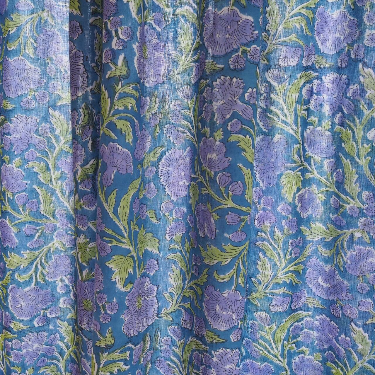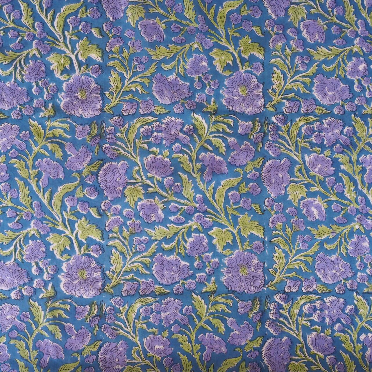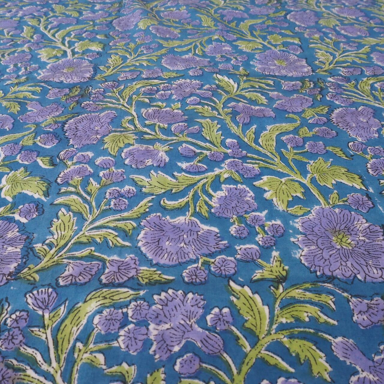 ブロックプリント生地【50cm単位】インド綿 花柄 青×バイオレット #23150-BL1
