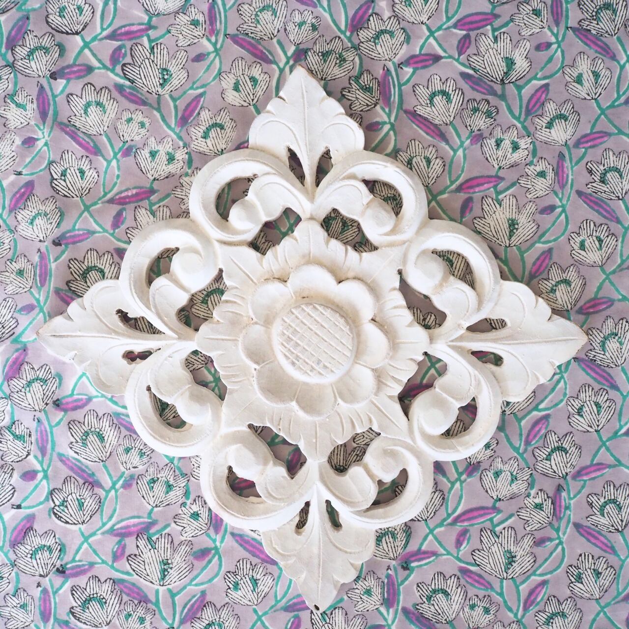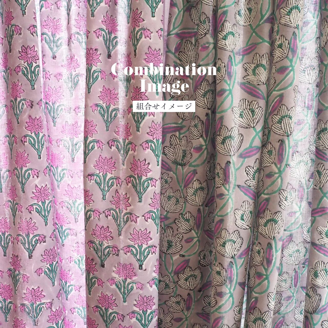 ハンドブロックプリントと呼ばれるインドのジャイプール地方に古くから伝わる伝統的な技法で、木彫りのスタンプで色を何度も重ね、全ての工程がインドの職人さんの手作業によって仕上がるAll Handmadeの生地です。