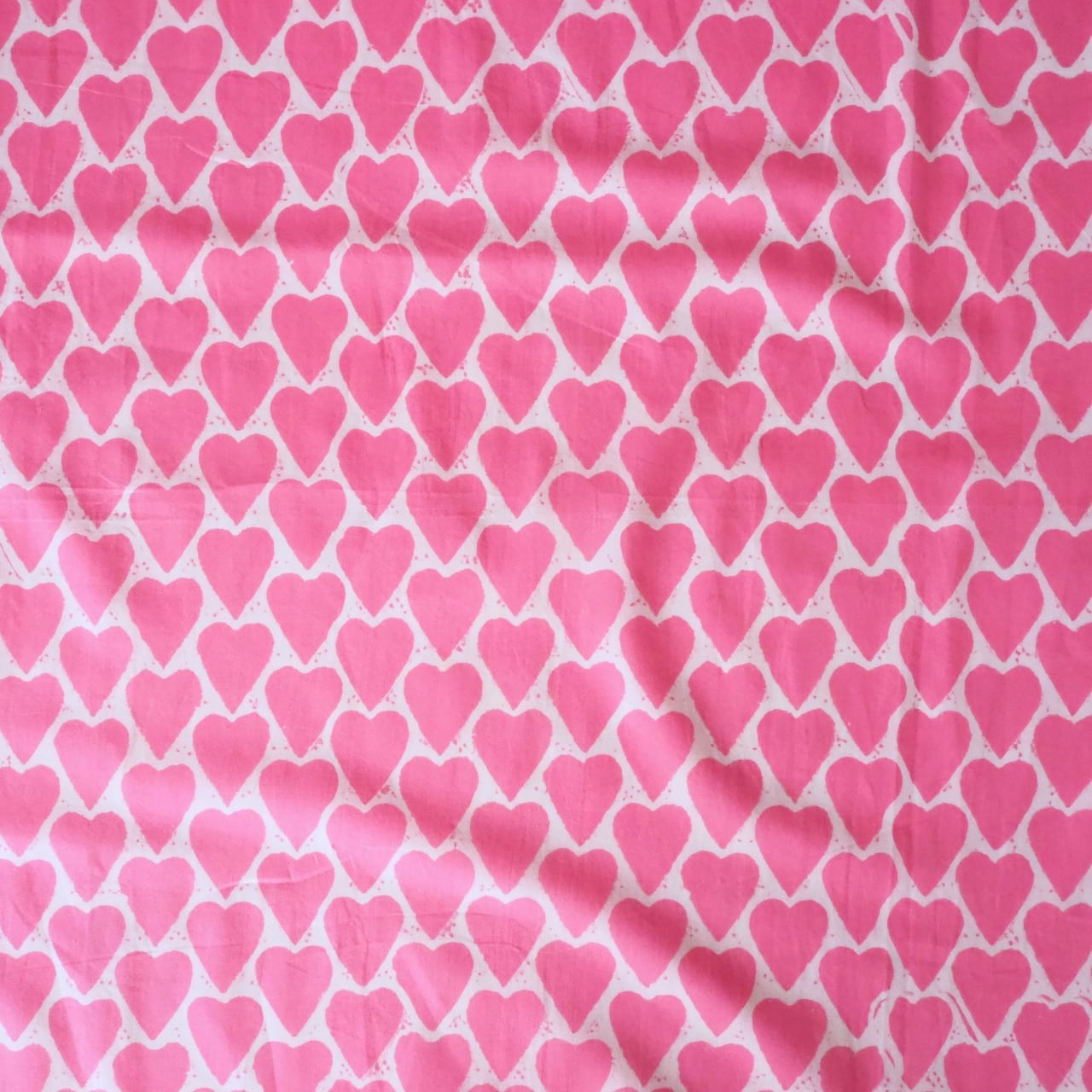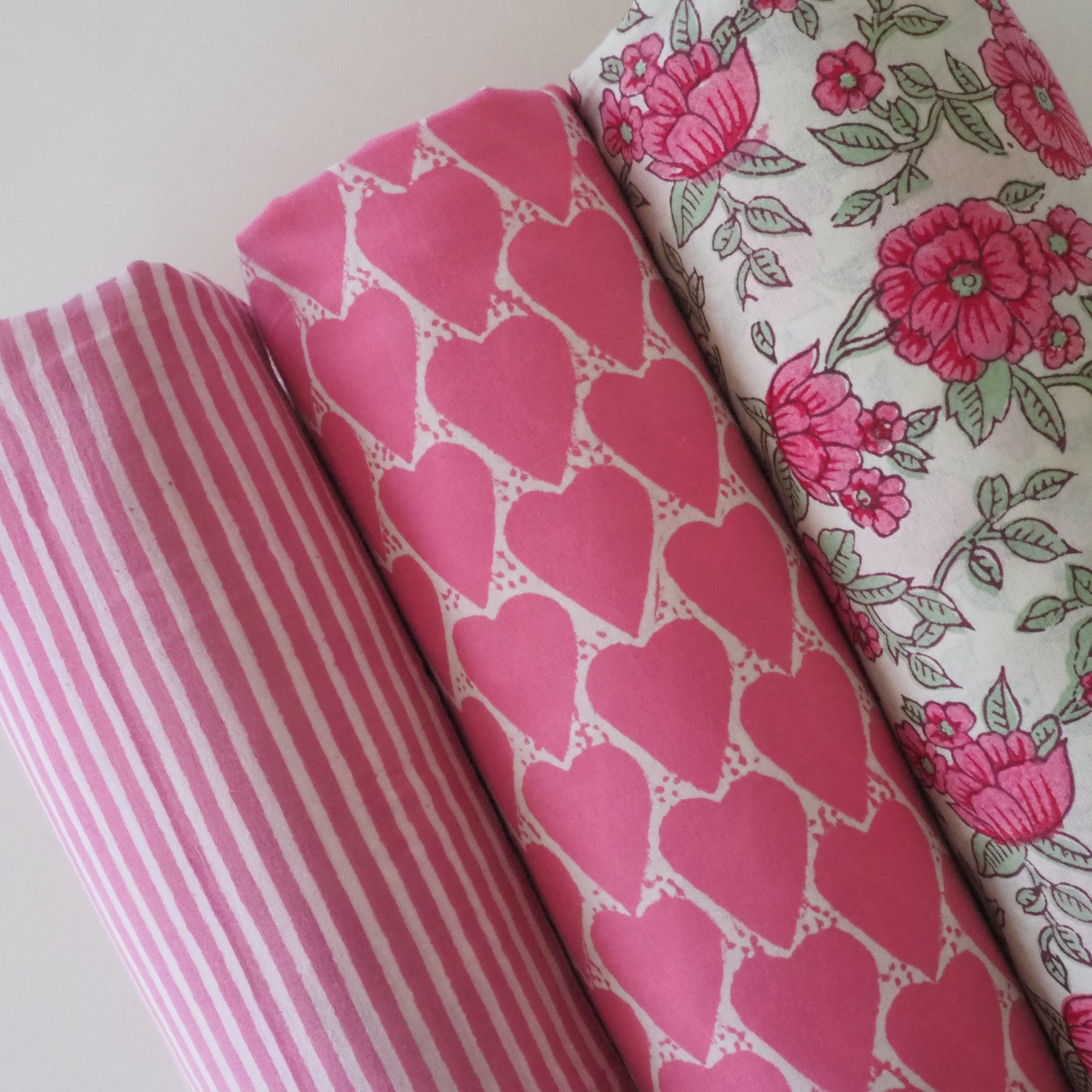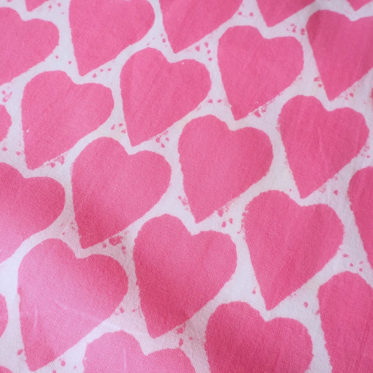 ブロックプリント生地【50cm単位】インド綿 ハート柄 ピンク #25810-PK1【再入荷】