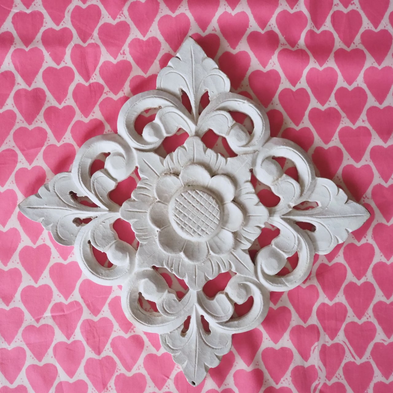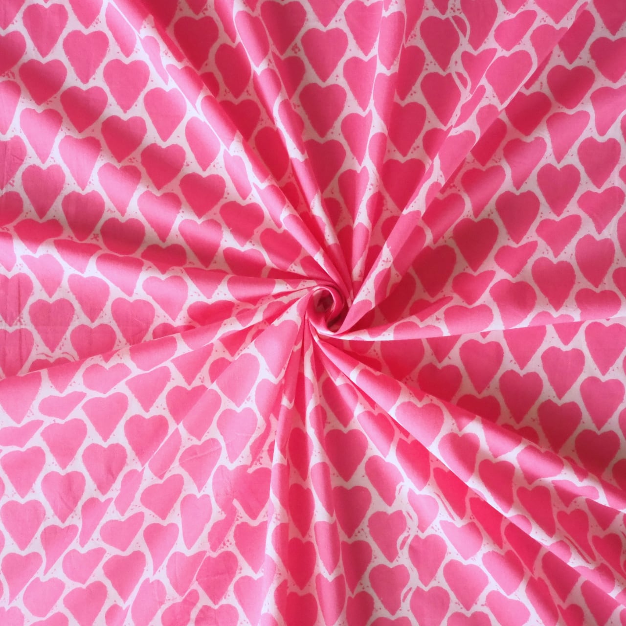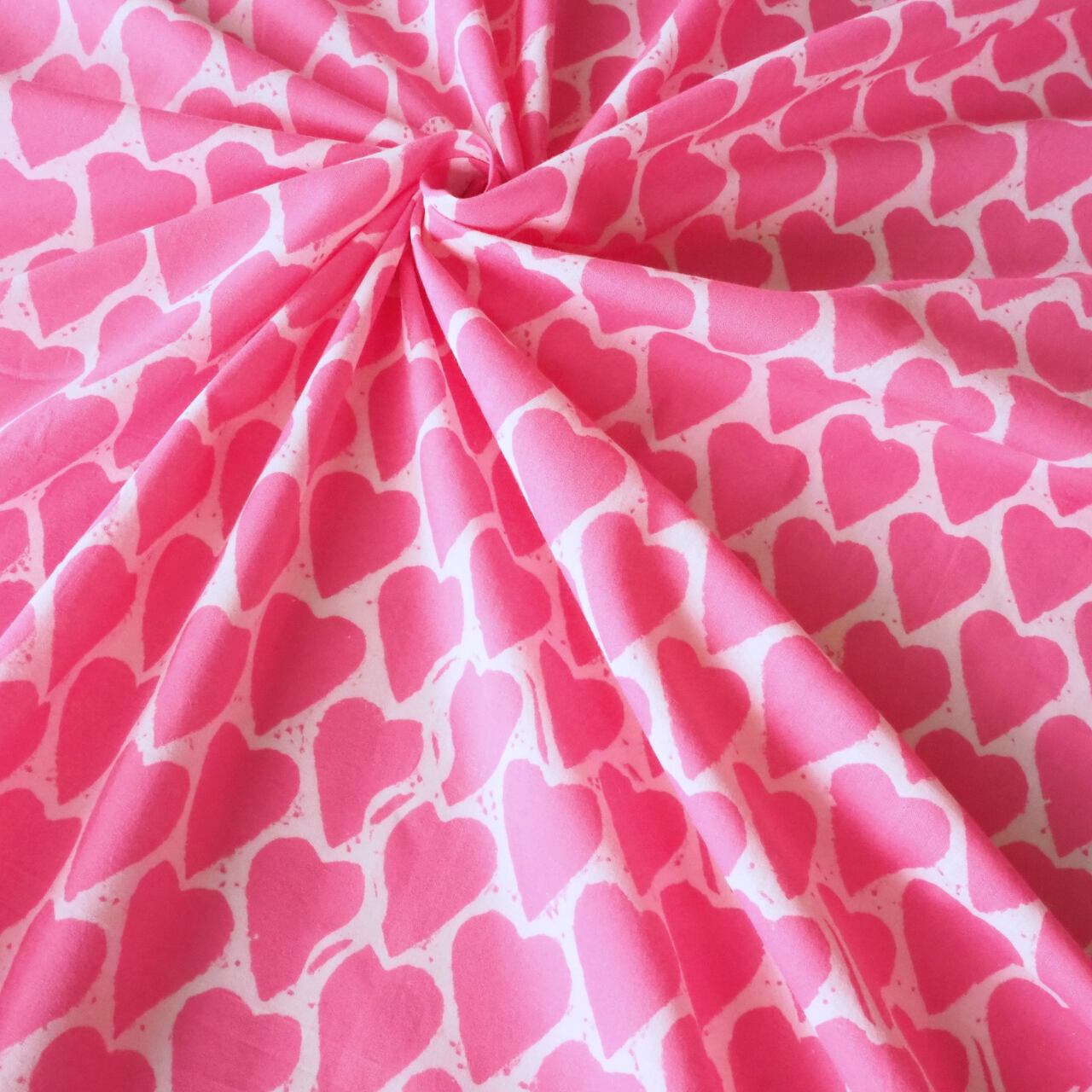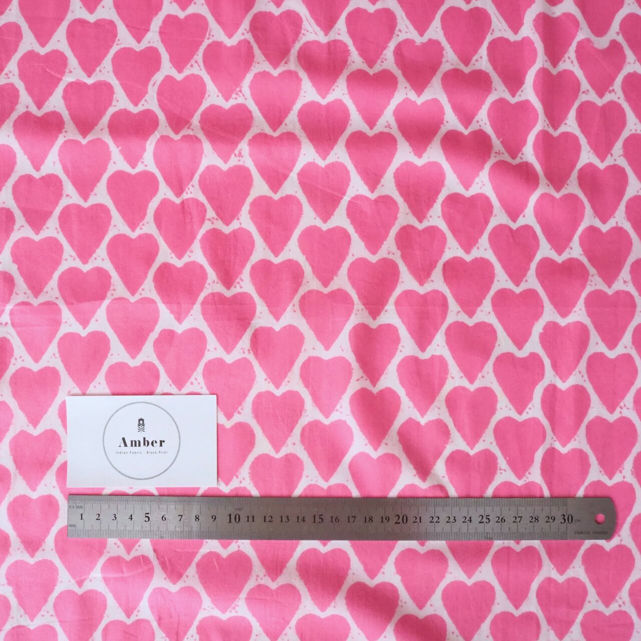 ブロックプリント生地【50cm単位】インド綿 ハート柄 ピンク #25810-PK1【再入荷】