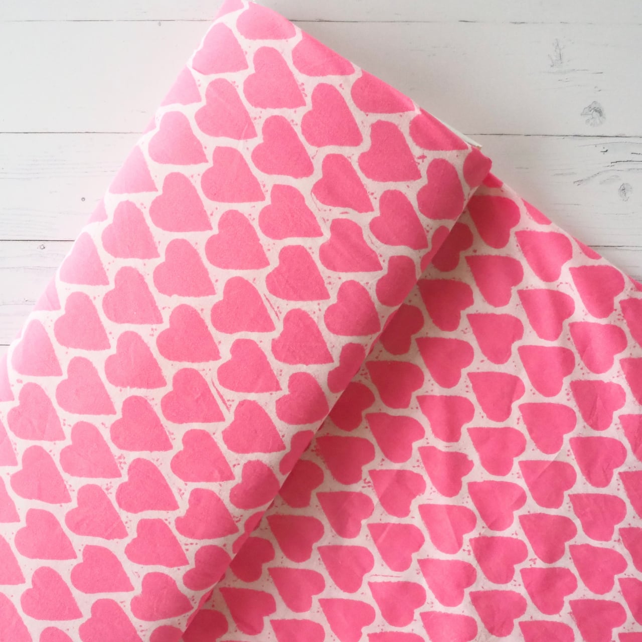 ブロックプリント生地【50cm単位】インド綿 ハート柄 ピンク #25810-PK1