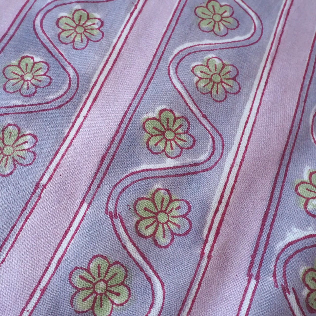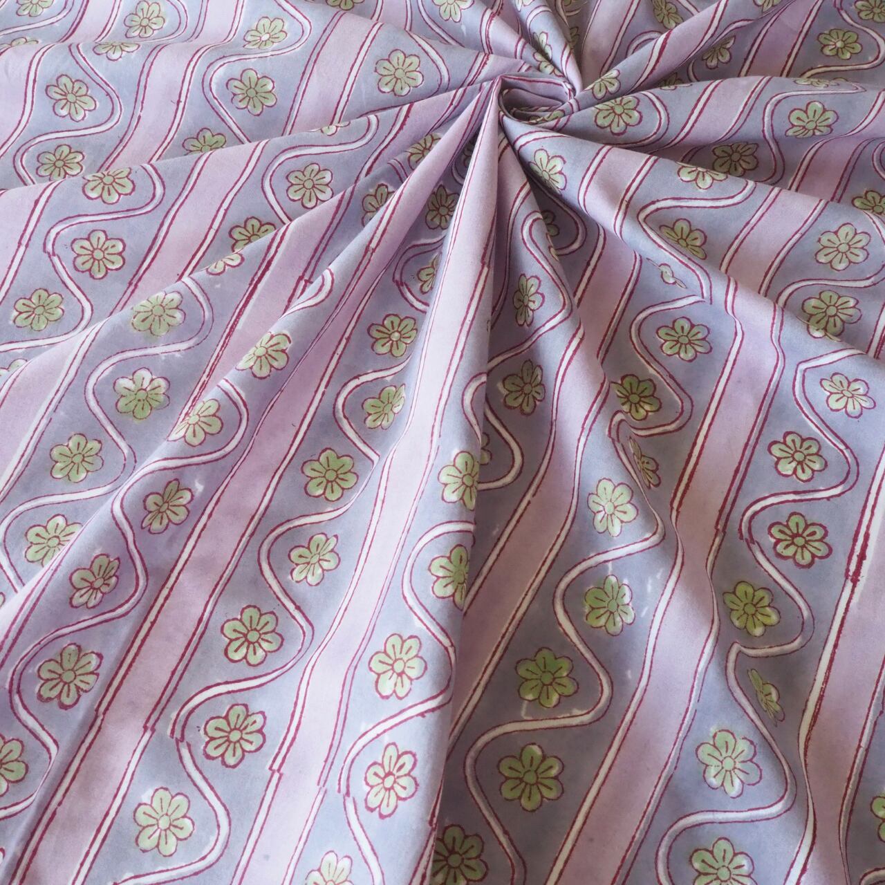 ブロックプリント生地【50cm単位】インド綿 ストライプ柄 くすみパープルグレー×ピンク #26259-PR3