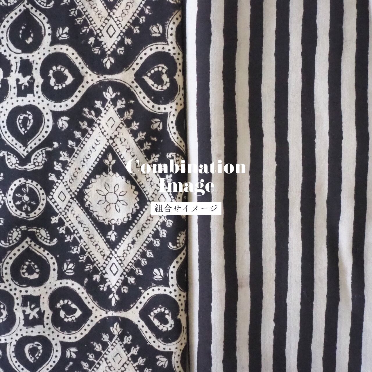 ブロックプリント生地【50cm単位】インド綿 ストライプ柄 生成り×黒 #29510-BK1【再入荷】