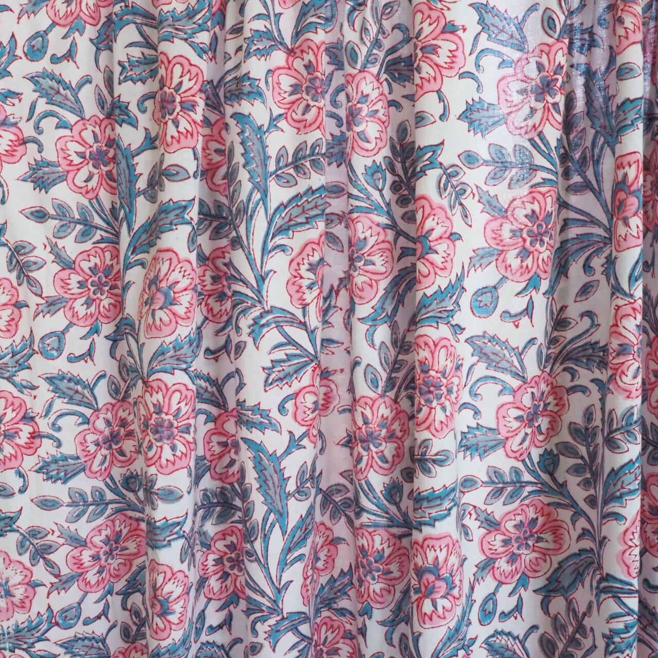 ハンドブロックプリントと呼ばれるインドのジャイプール地方に古くから伝わる伝統的な技法で、木彫りのスタンプで色を何度も重ね、全ての工程がインドの職人さんの手作業によって仕上がるAll Handmadeの生地です。