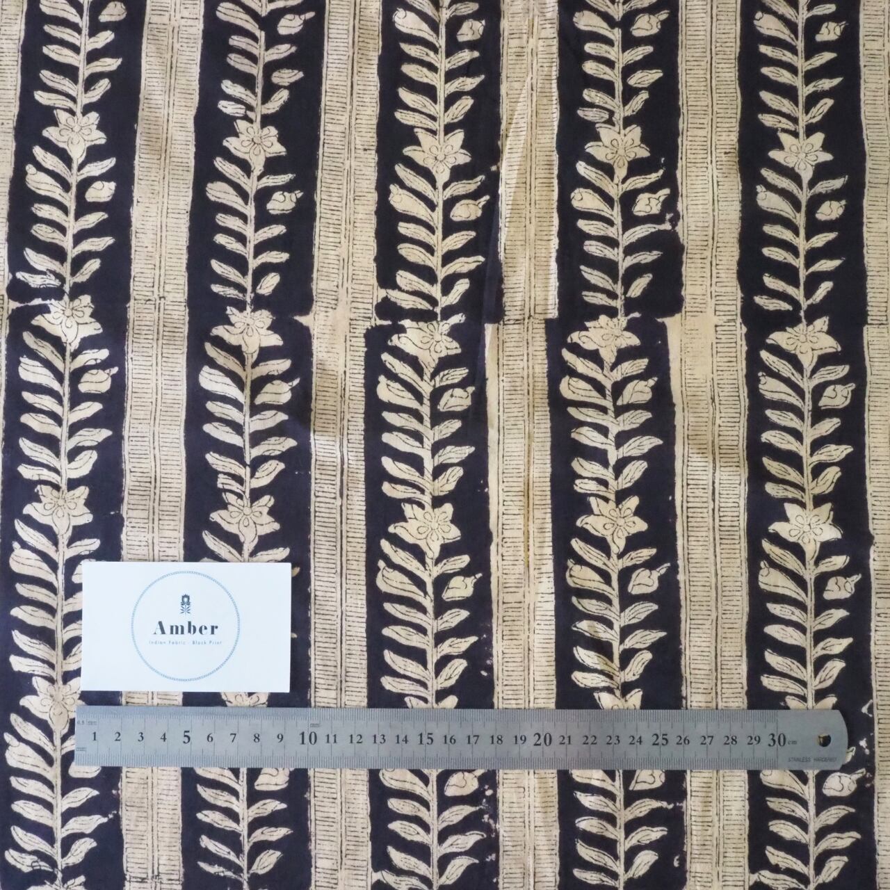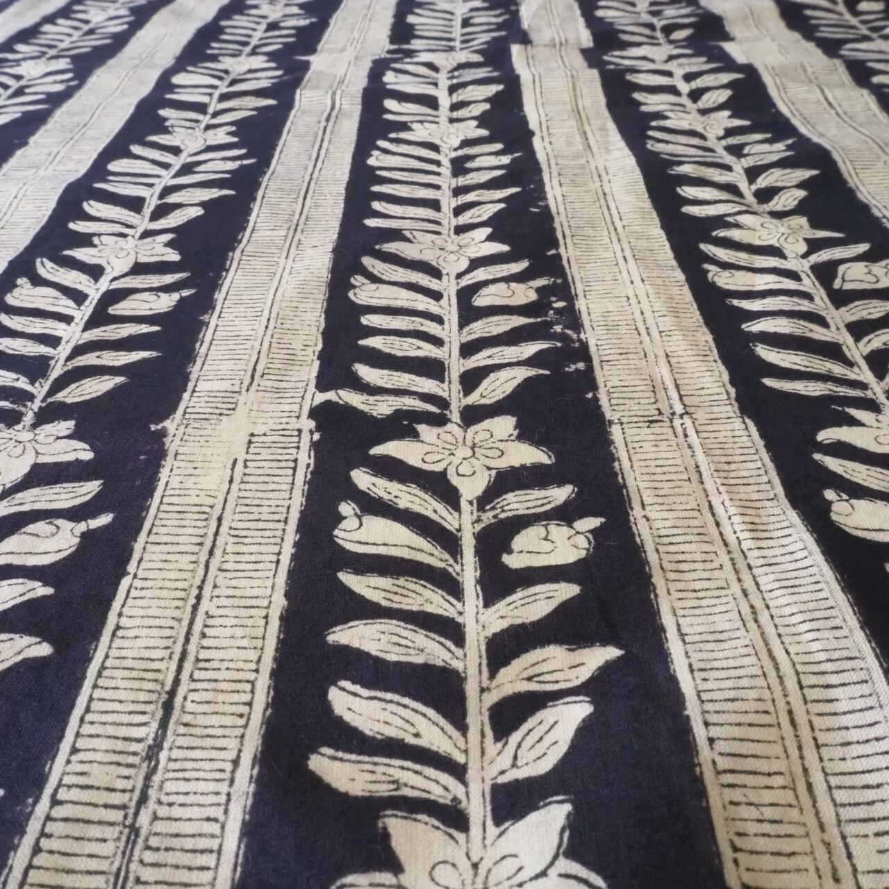 ブロックプリント生地【50cm単位】インド綿 ストライプ柄 黒×生成り #34969-BK2【再入荷】