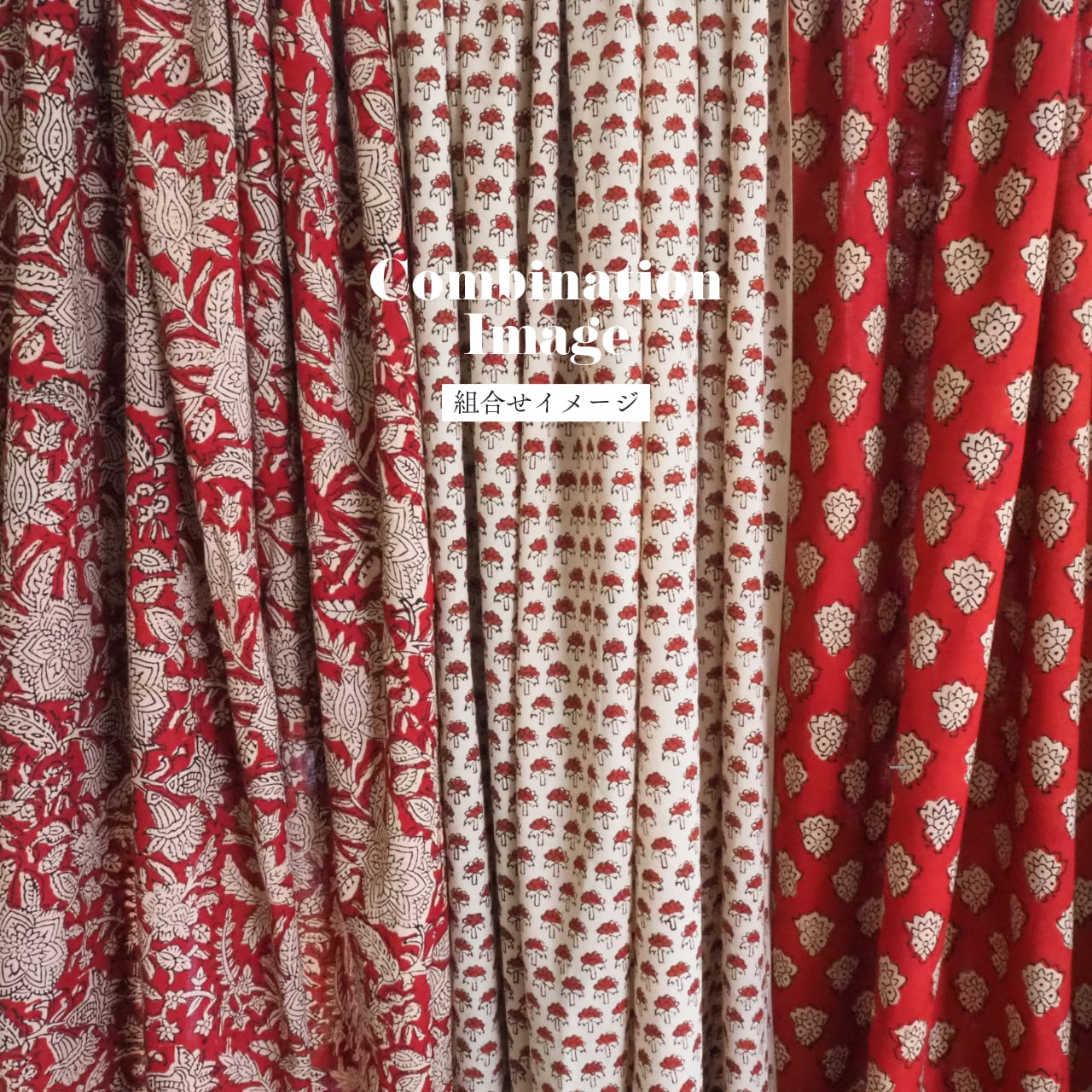 ハンドブロックプリントと呼ばれるインドのジャイプール地方に古くから伝わる伝統的な技法で、木彫りのスタンプで色を何度も重ね、全ての工程がインドの職人さんの手作業によって仕上がるAll Handmadeの生地です。