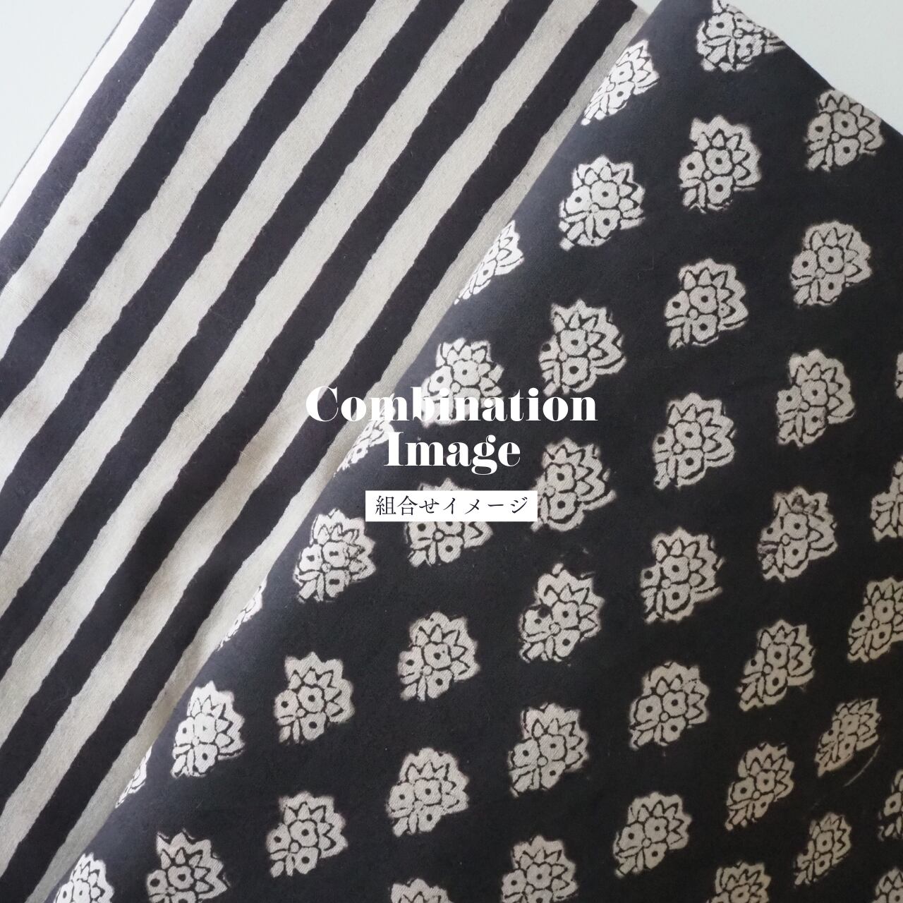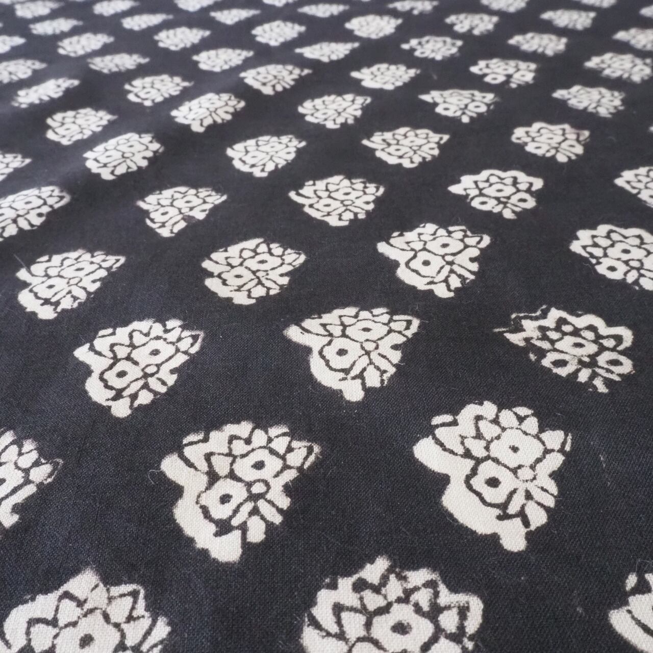 ブロックプリント生地【50cm単位】インド綿 小花柄 黒×生成り #37910-BK1