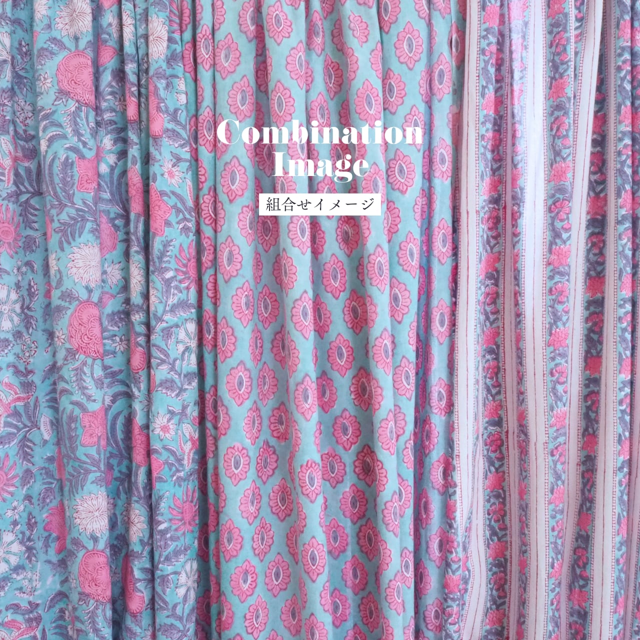 ハンドブロックプリントと呼ばれるインドのジャイプール地方に古くから伝わる伝統的な技法で、木彫りのスタンプで色を何度も重ね、全ての工程がインドの職人さんの手作業によって仕上がるAll Handmadeの生地です。