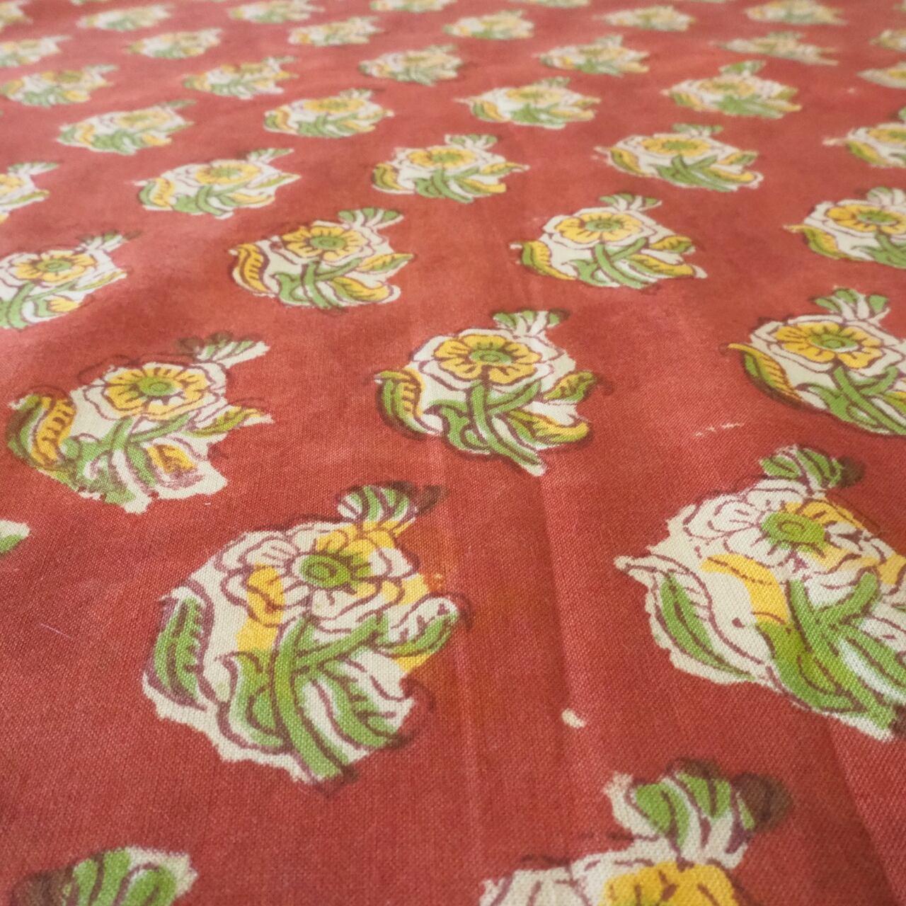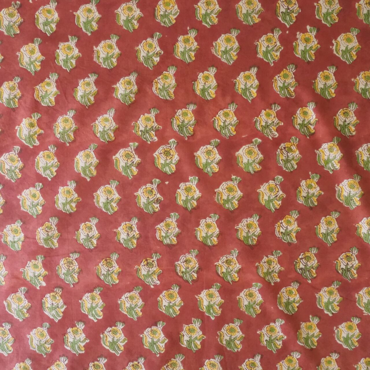 ブロックプリント生地【50cm単位】インド綿 小花柄 赤茶×黄色×黄緑×クリーム色 #40281-BR4