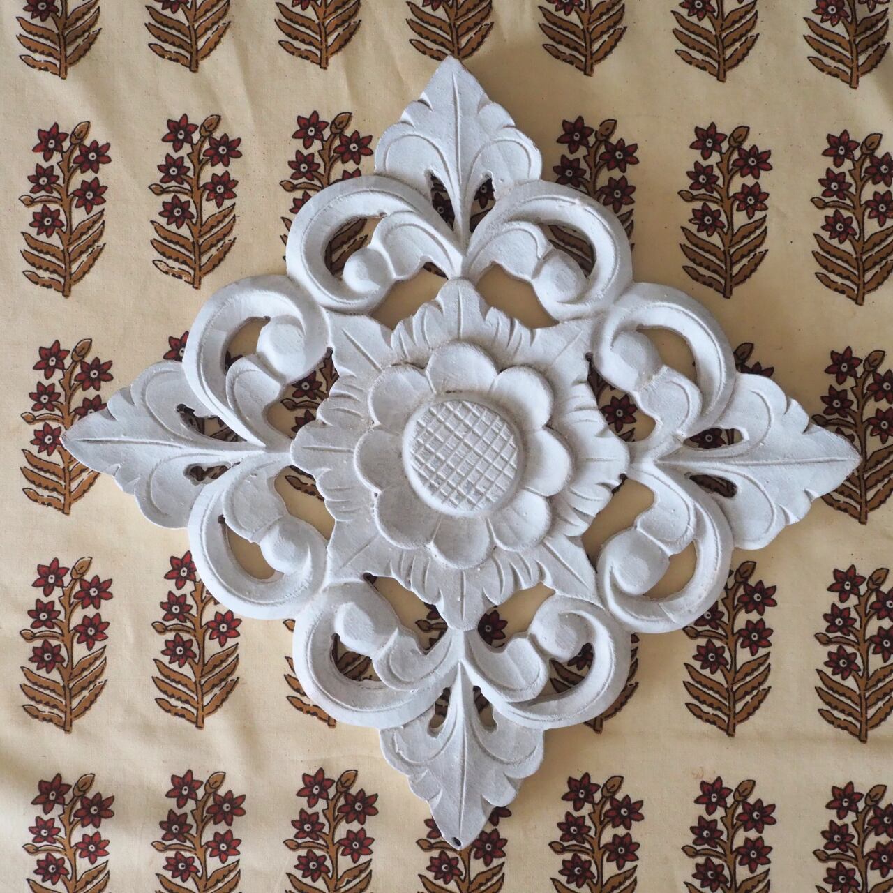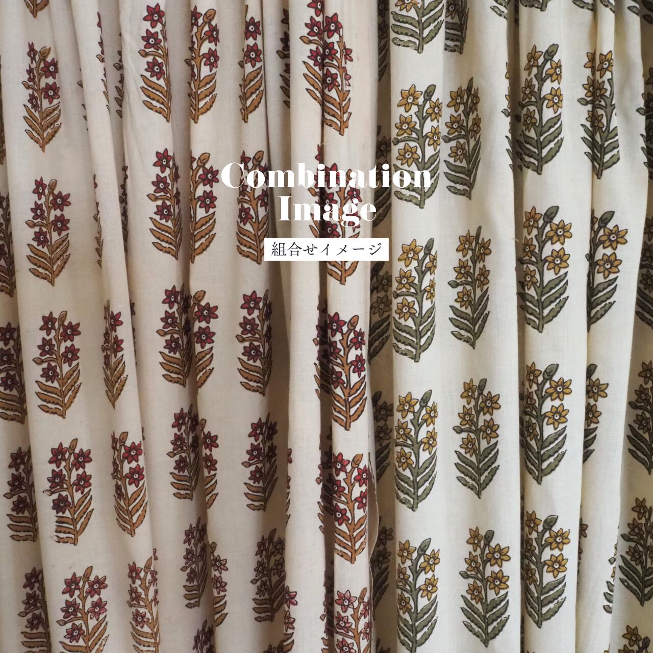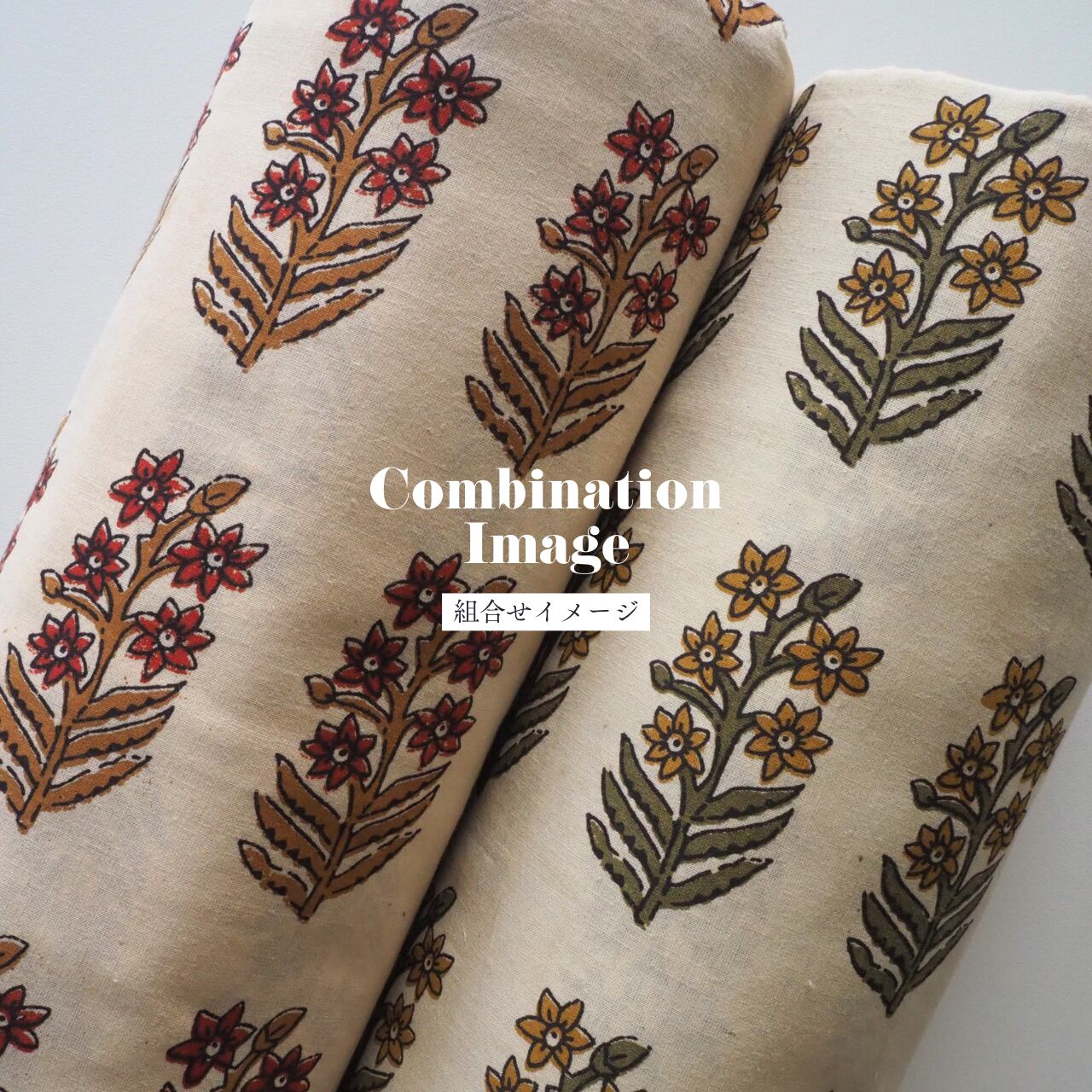 ハンドブロックプリントと呼ばれるインドのジャイプール地方に古くから伝わる伝統的な技法で、木彫りのスタンプで色を何度も重ね、全ての工程がインドの職人さんの手作業によって仕上がるAll Handmadeの生地です。
