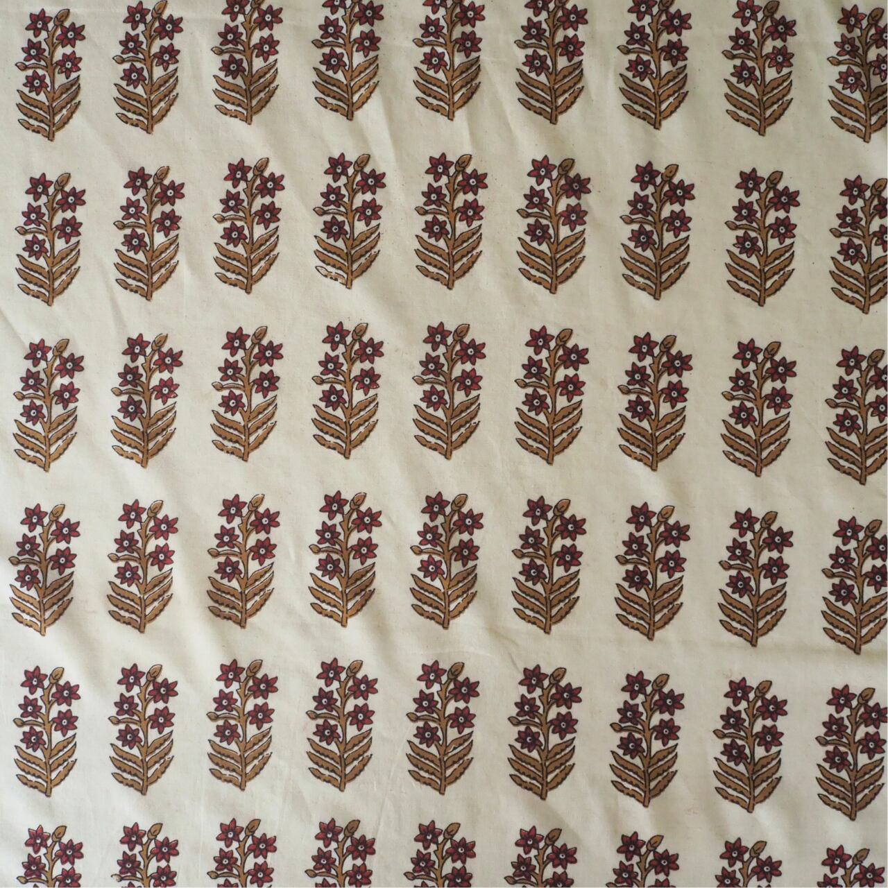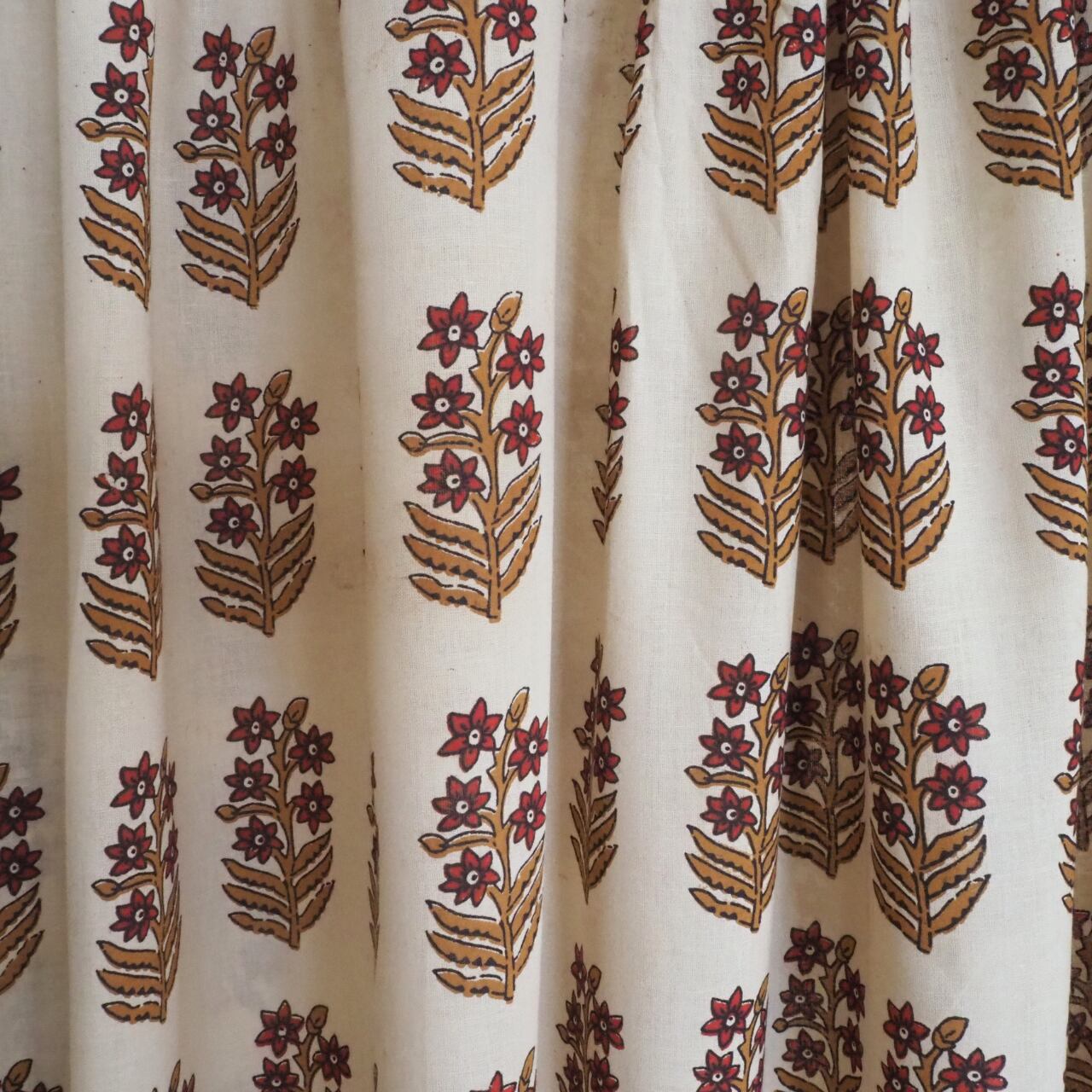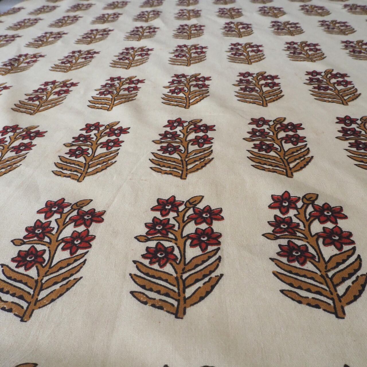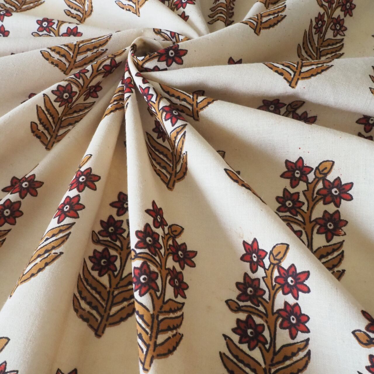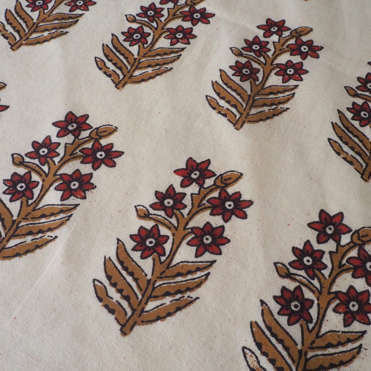 ブロックプリント生地【50cm単位】インド綿 花柄 生成り×赤 #40810-RD1
