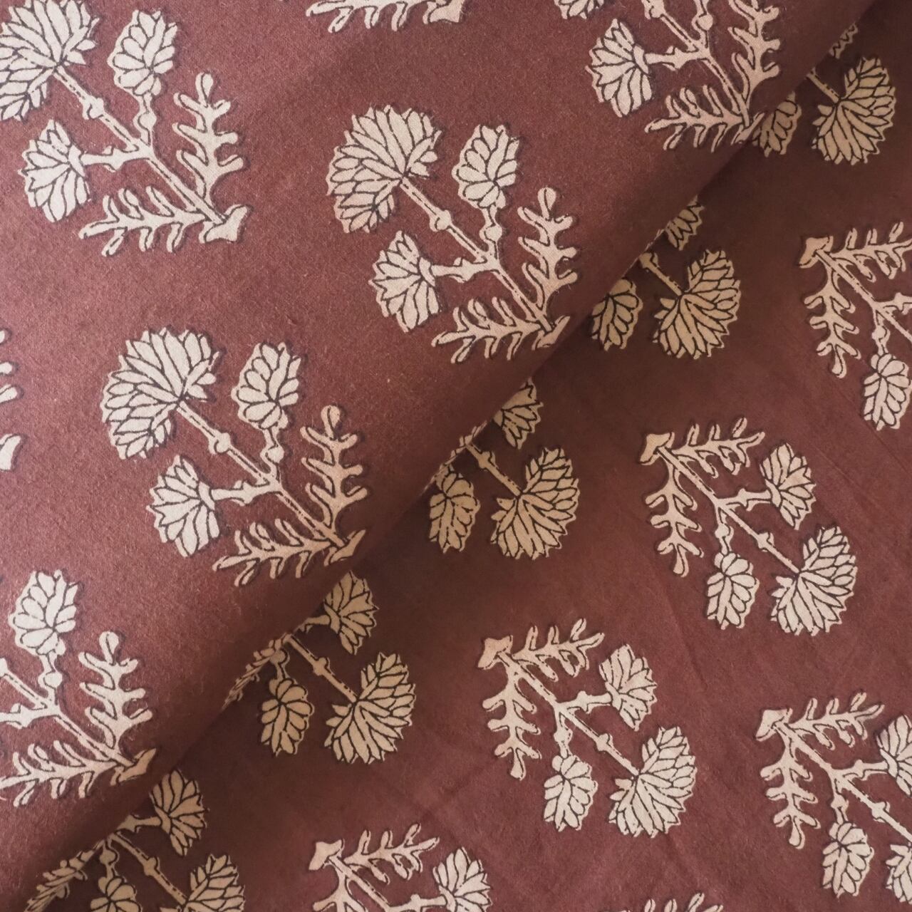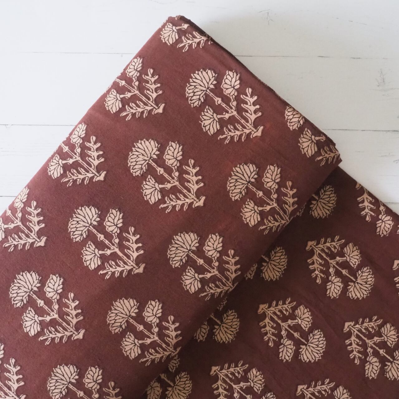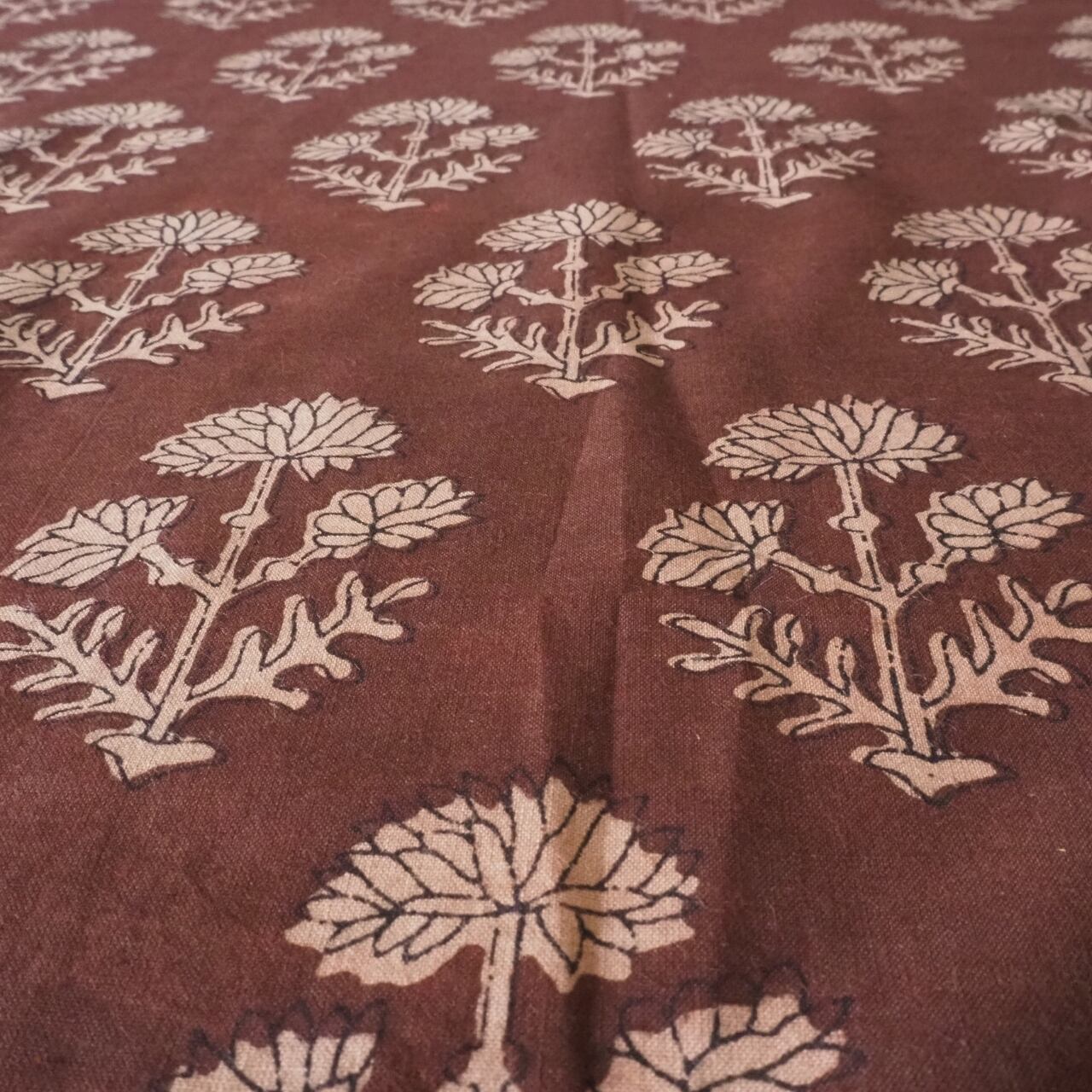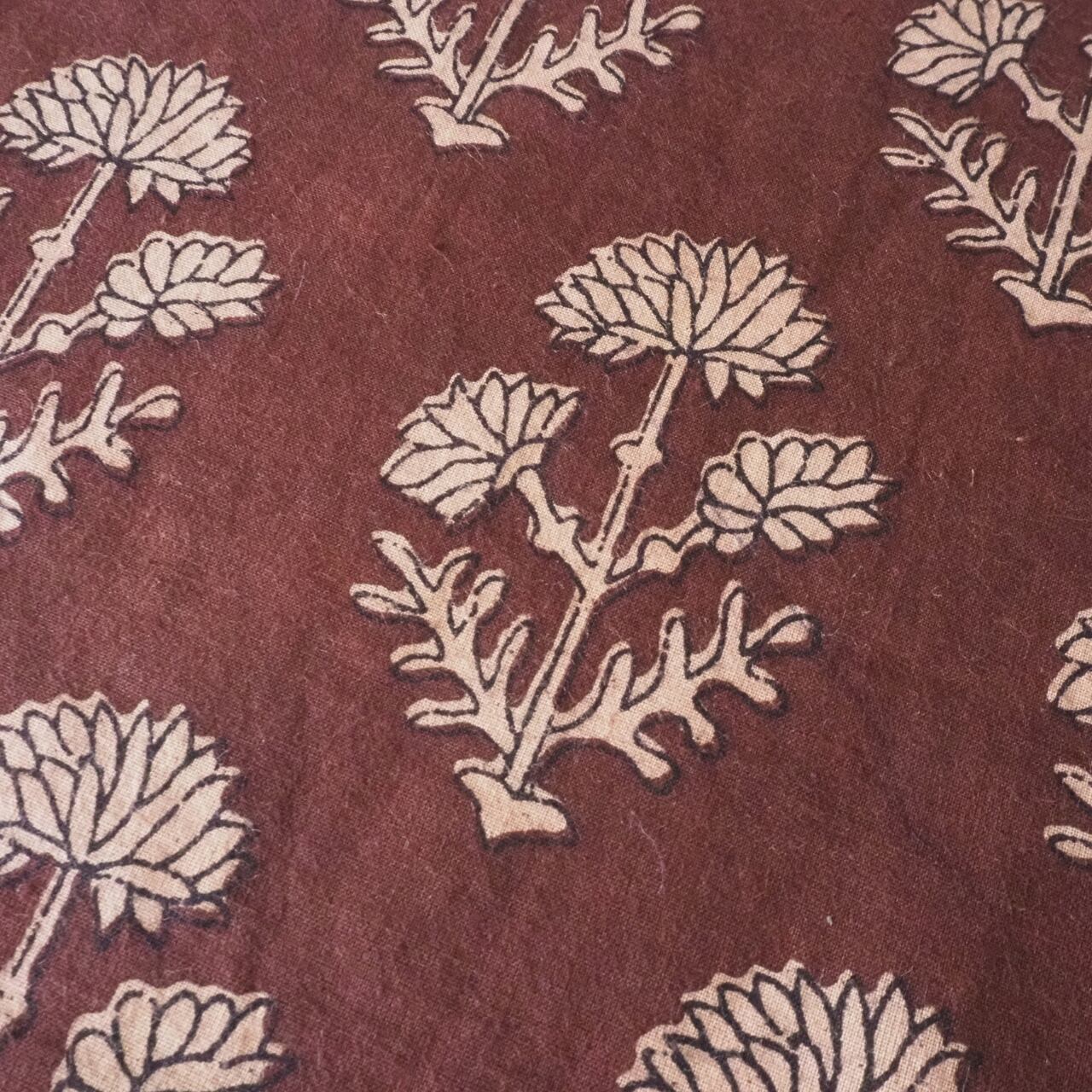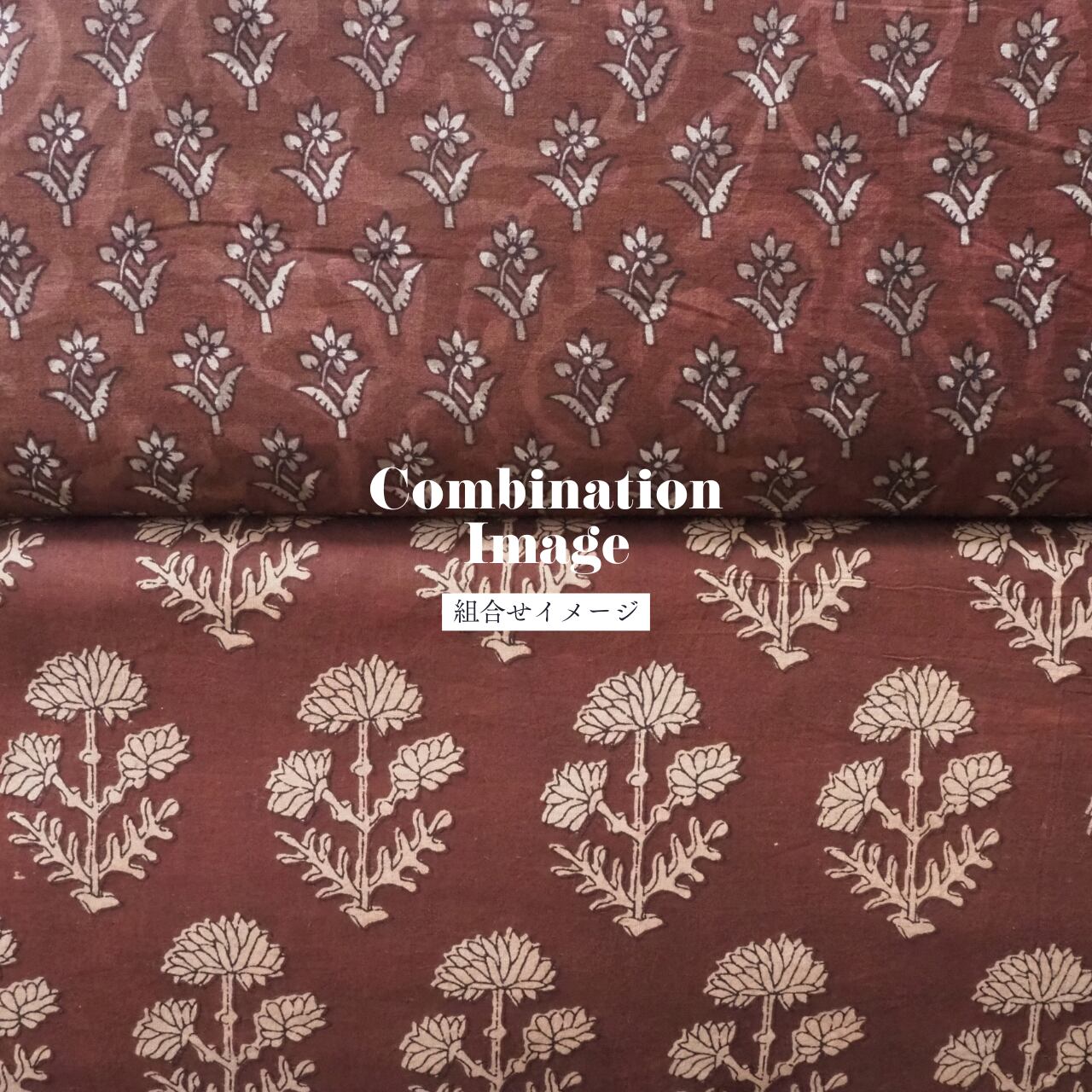 ブロックプリント生地【50cm単位】インド綿 花柄 ブラウン #40310-BR1【再入荷】