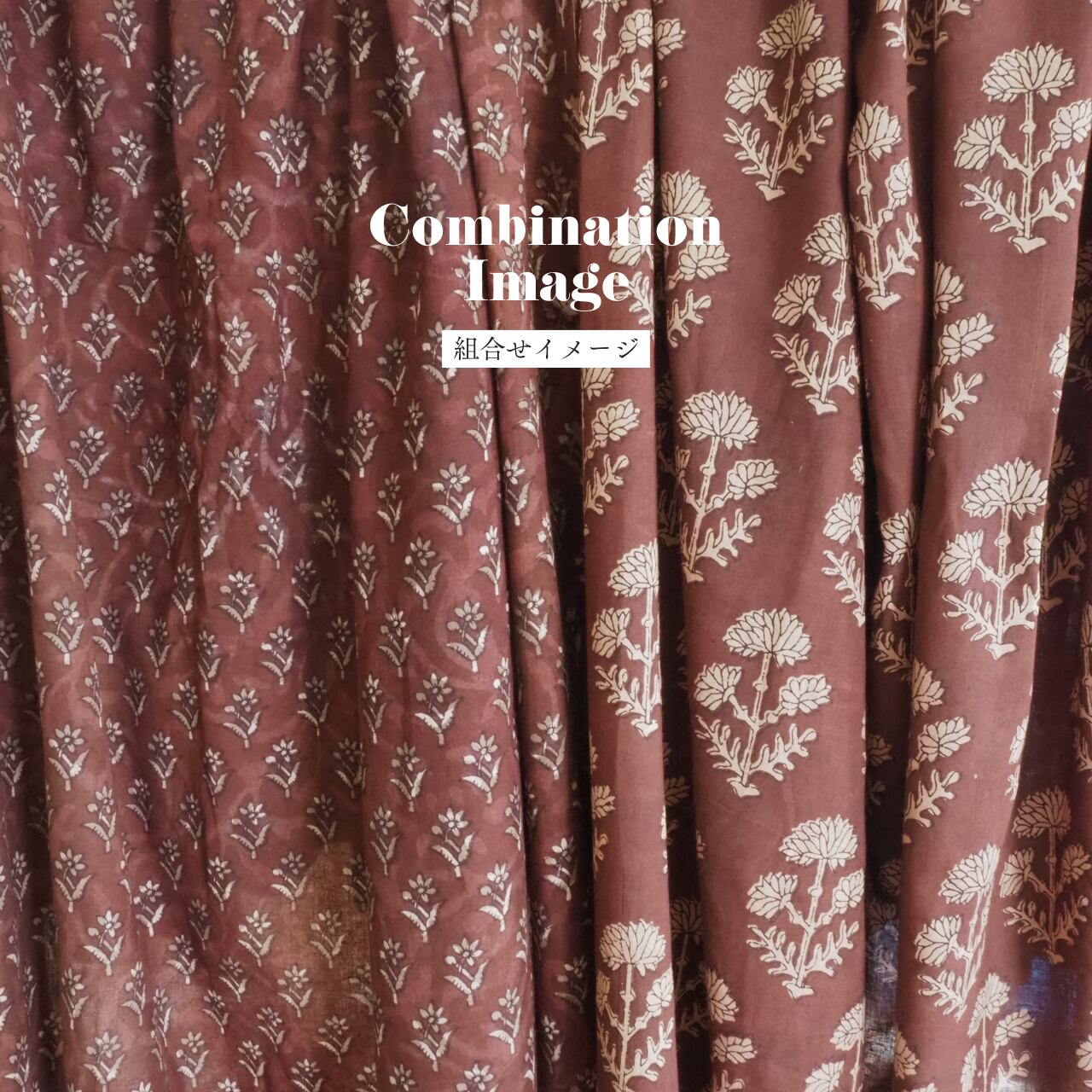 ハンドブロックプリントと呼ばれるインドのジャイプール地方に古くから伝わる伝統的な技法で、木彫りのスタンプで色を何度も重ね、全ての工程がインドの職人さんの手作業によって仕上がるAll Handmadeの生地です。