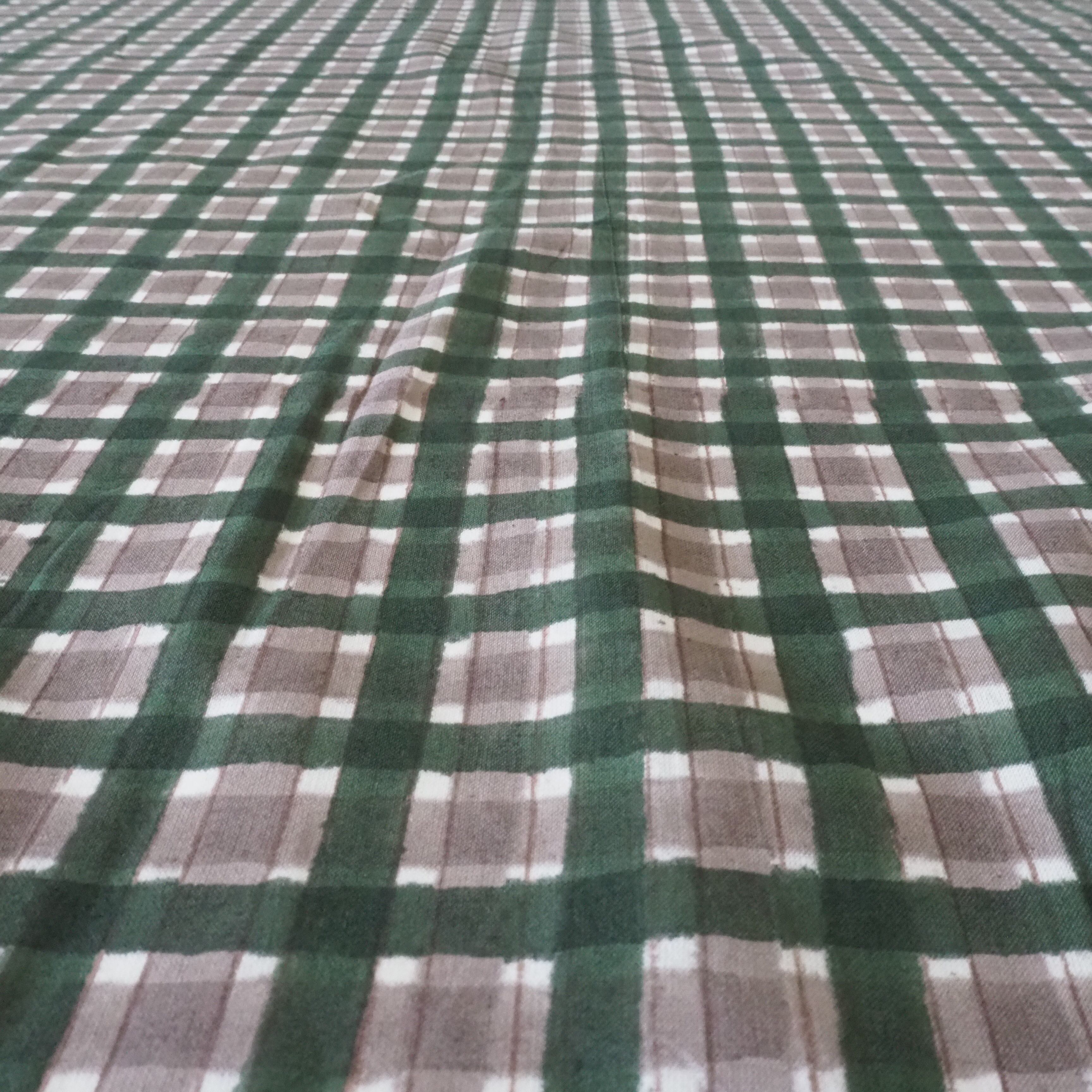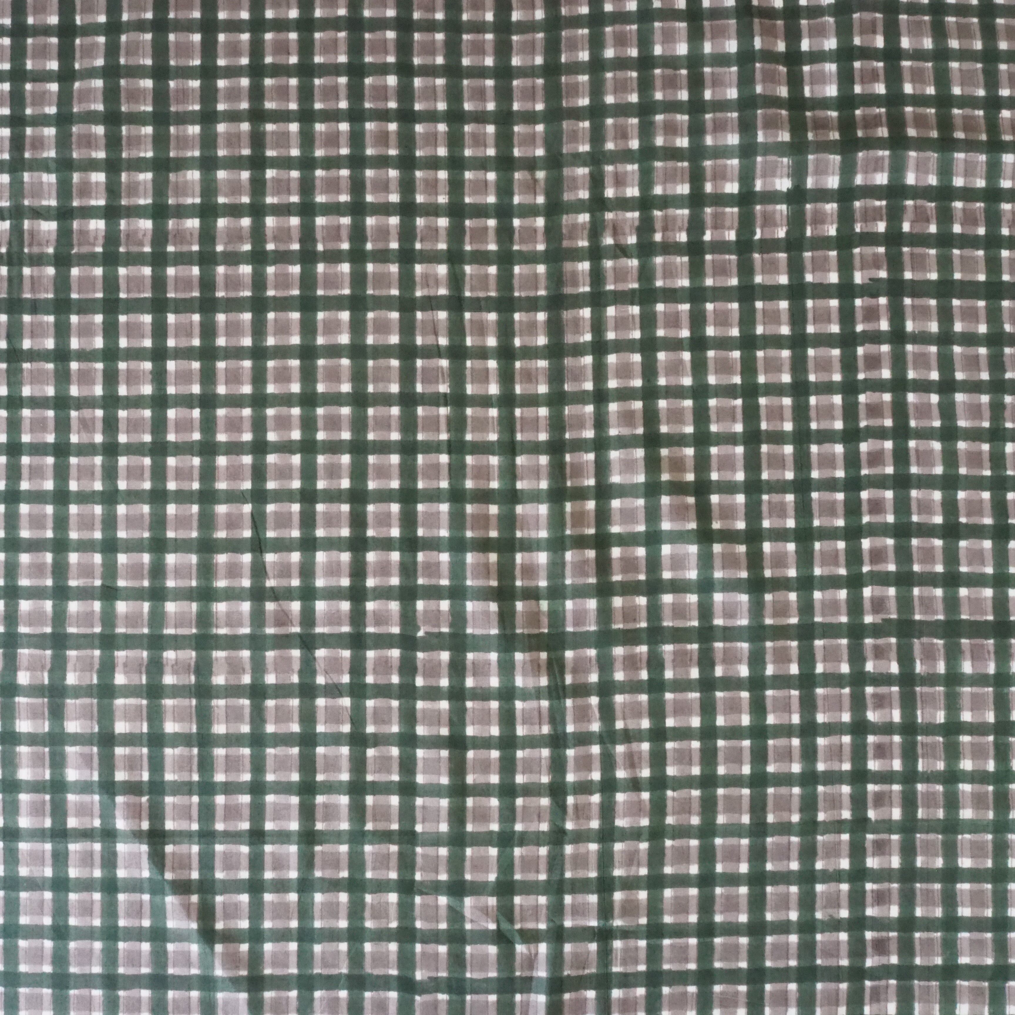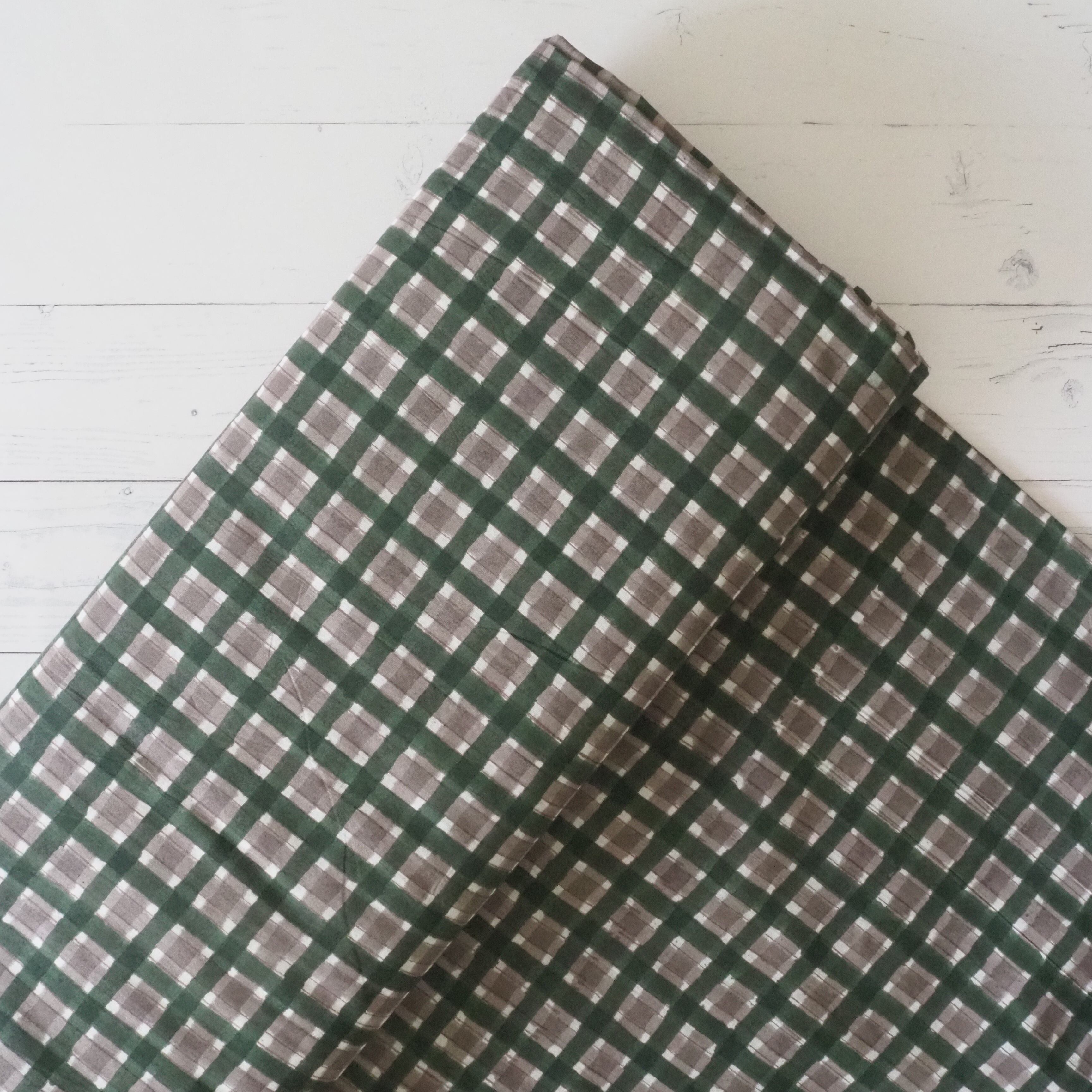 ブロックプリント生地【50cm単位】インド綿 チェック柄 グリーン×グレージュ #40610-GR1