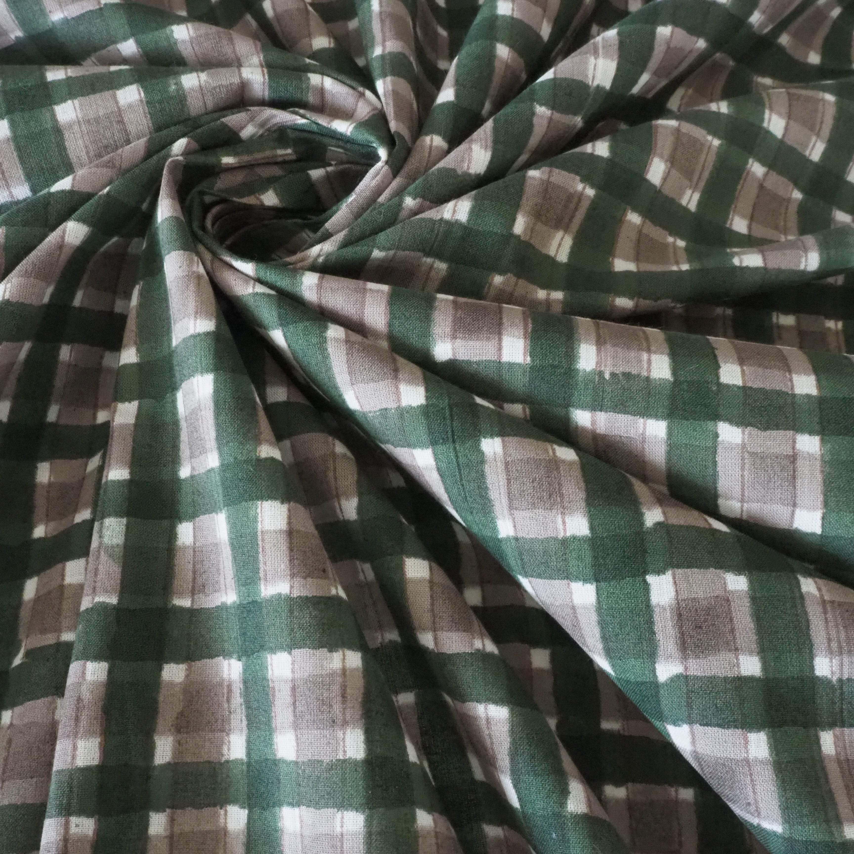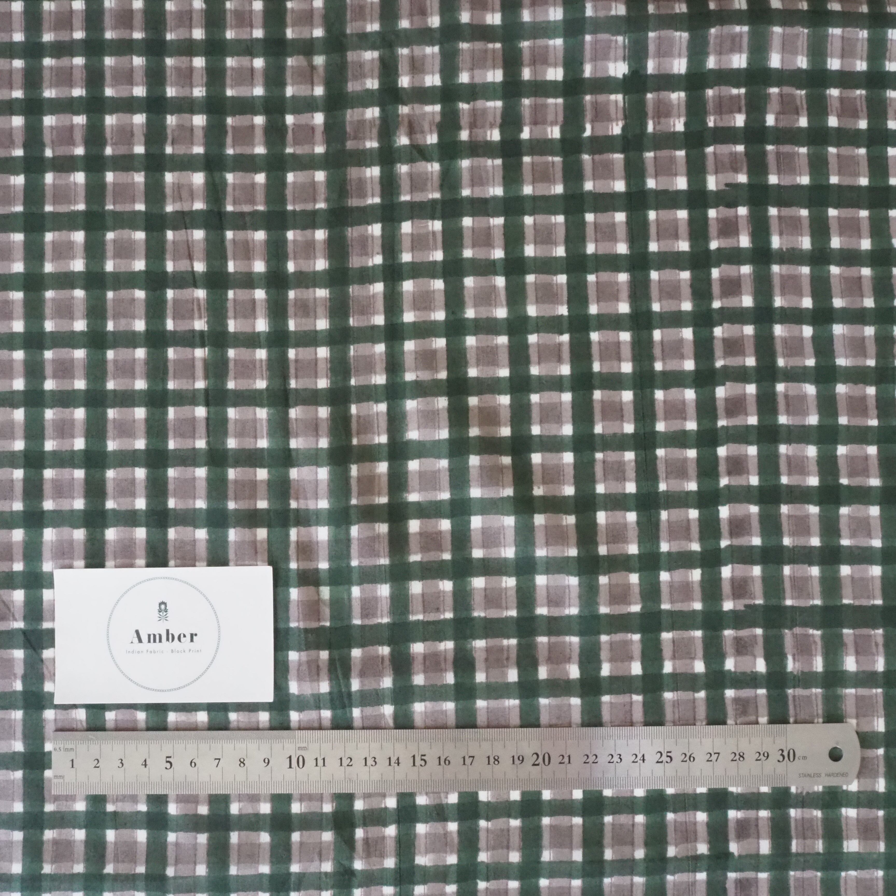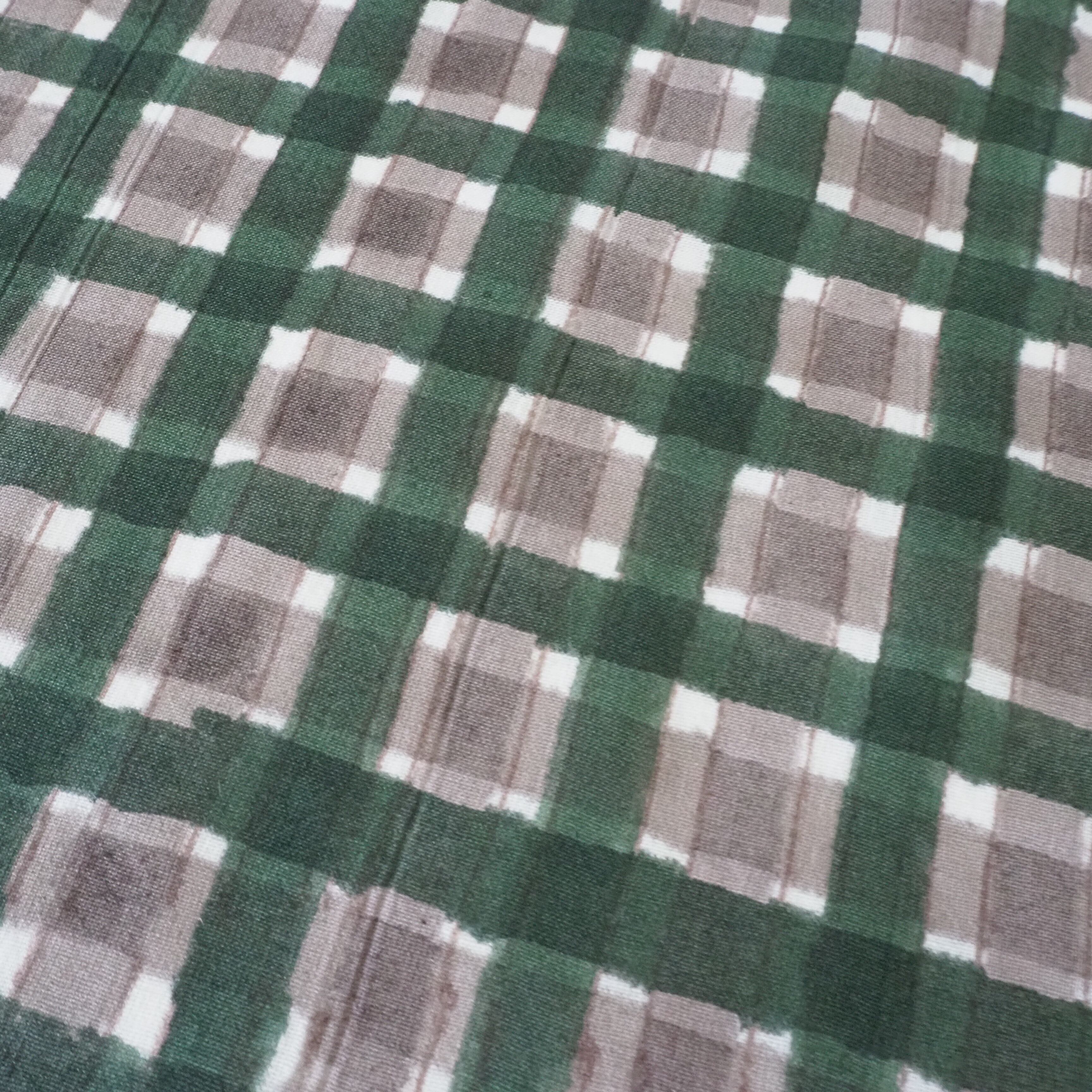 ブロックプリント生地【50cm単位】インド綿 チェック柄 グリーン×グレージュ #40610-GR1