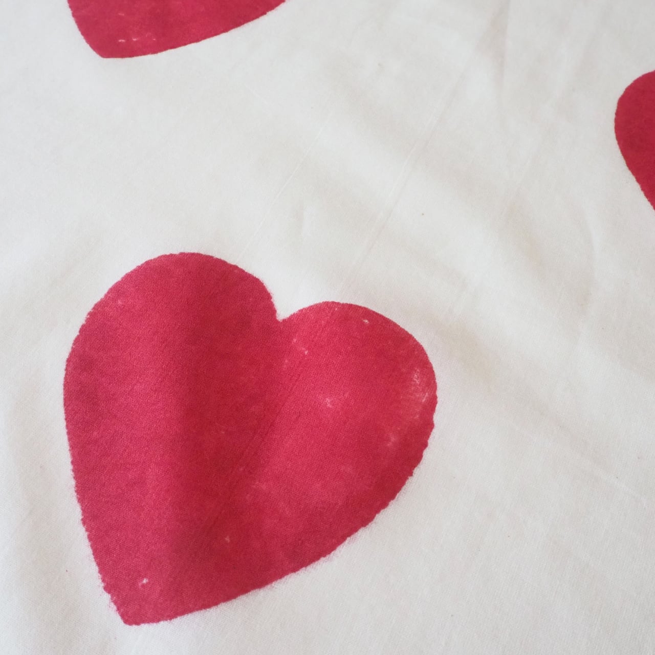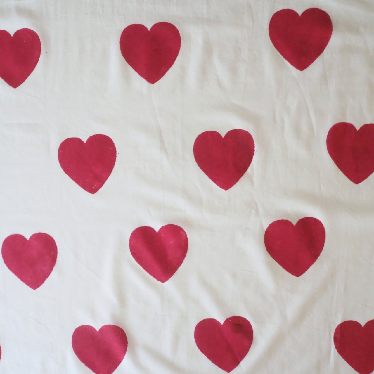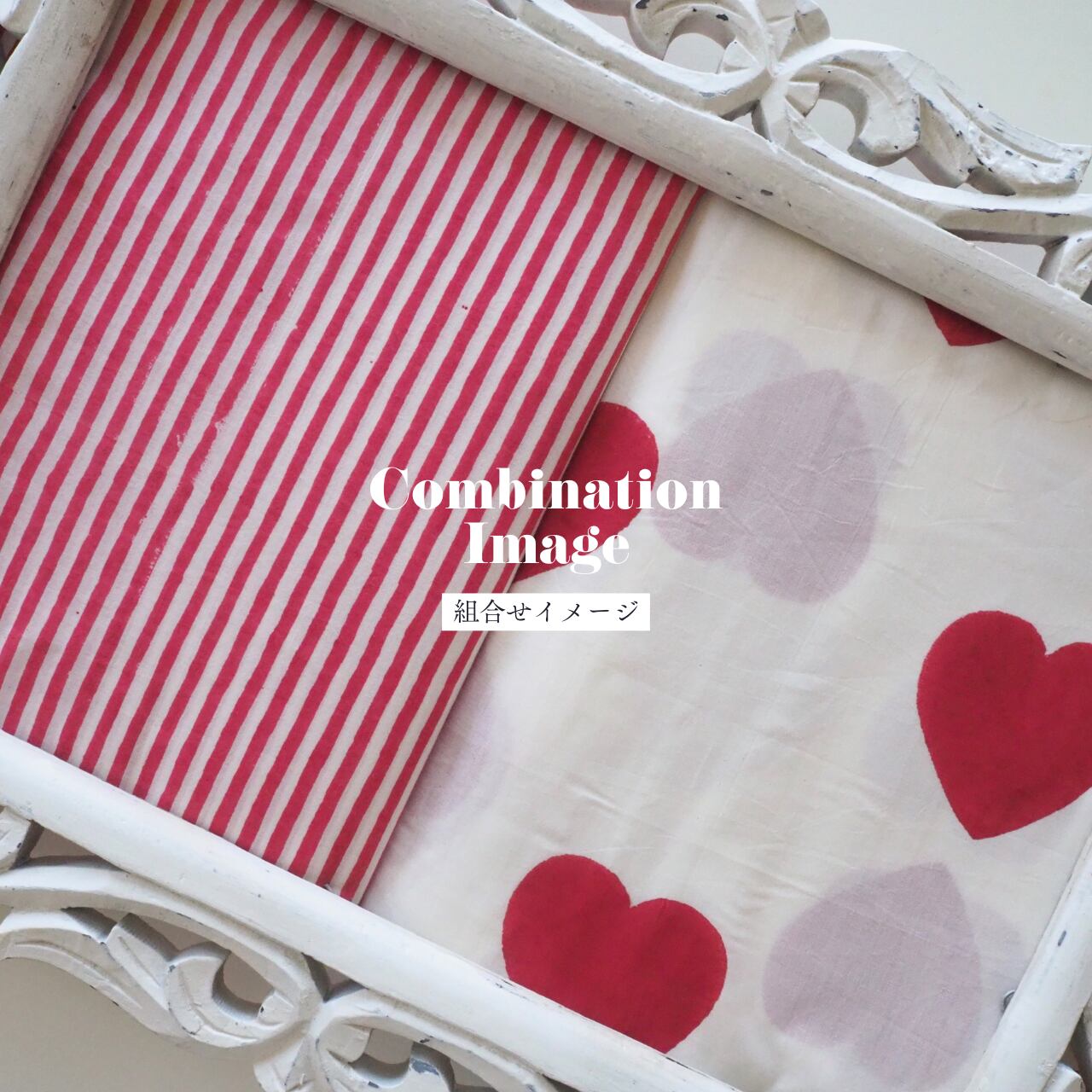 ブロックプリント生地【50cm単位】インド綿 ハート柄 白×赤 #40910-WT1