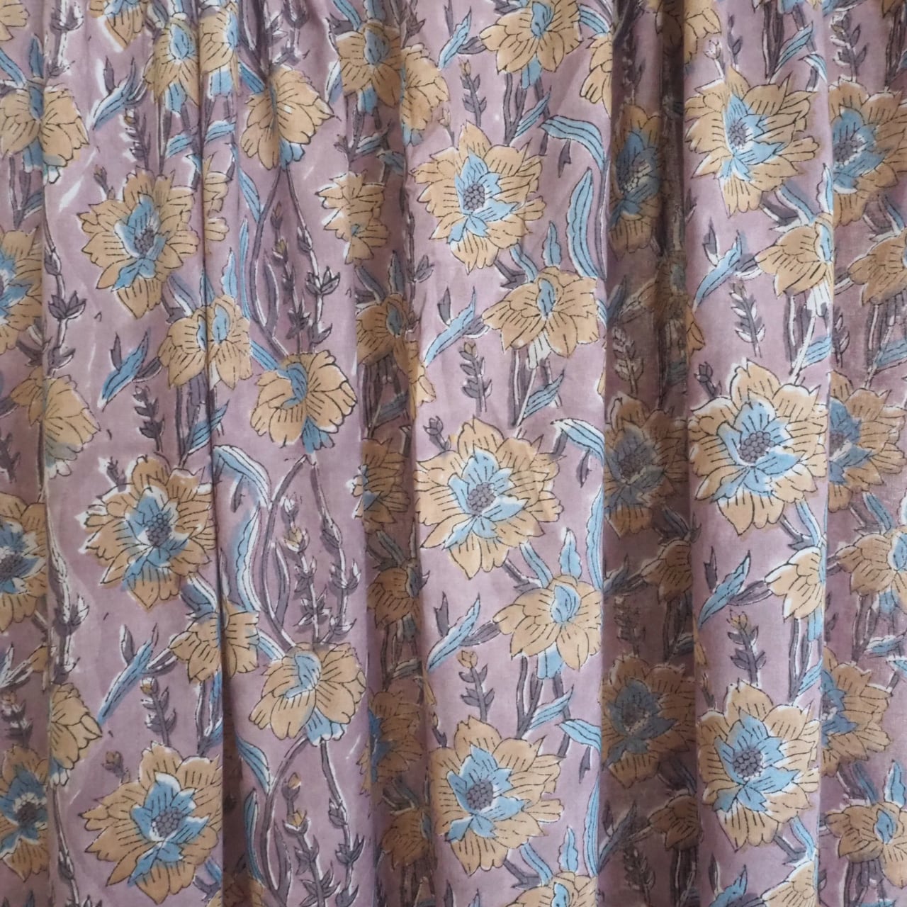 ブロックプリント生地【50cm単位】インド綿 花柄 くすみパープル #41282-PR1