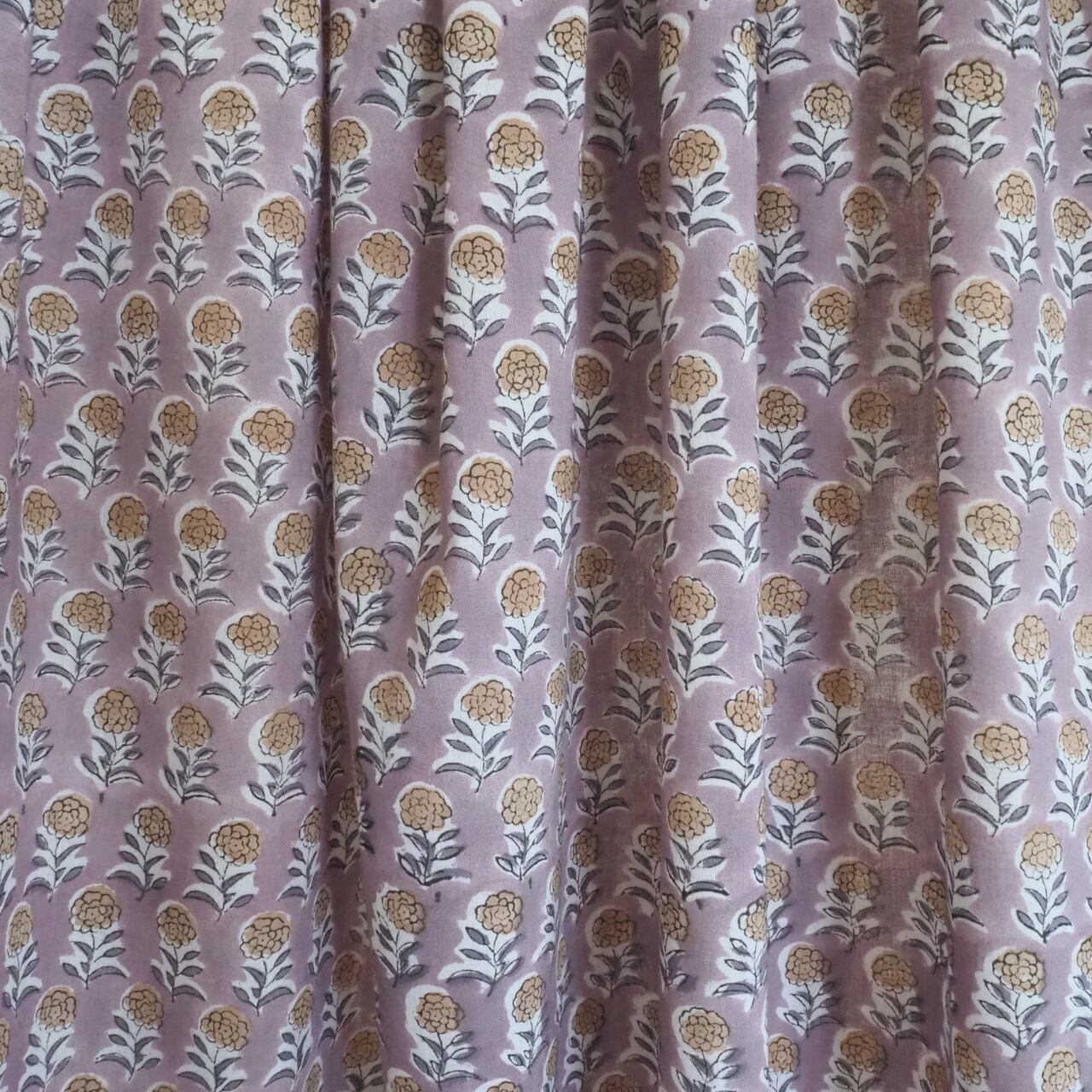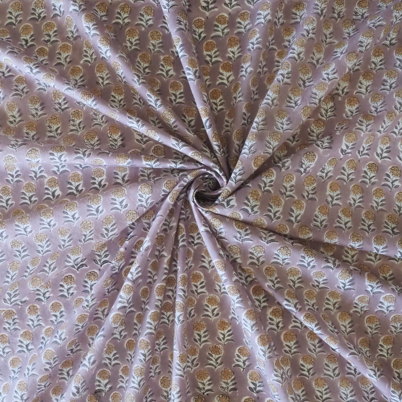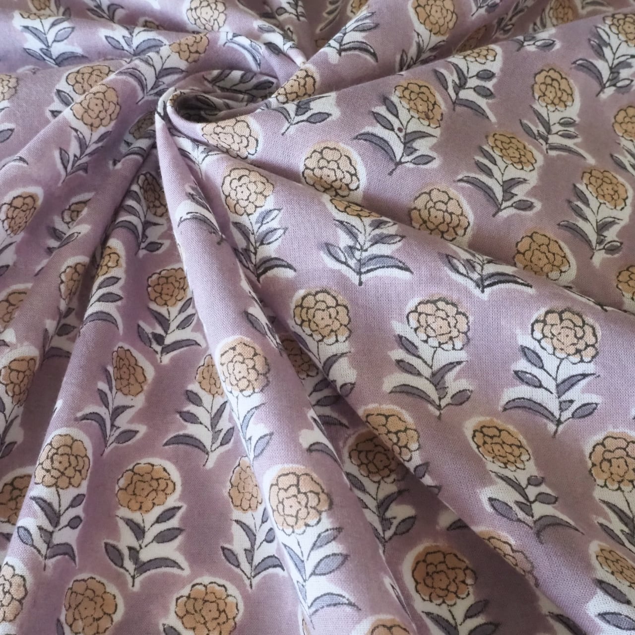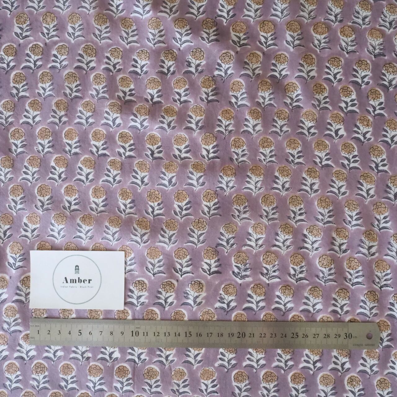 ブロックプリント生地【50cm単位】インド綿 小花柄 くすみパープル #41382-PR2