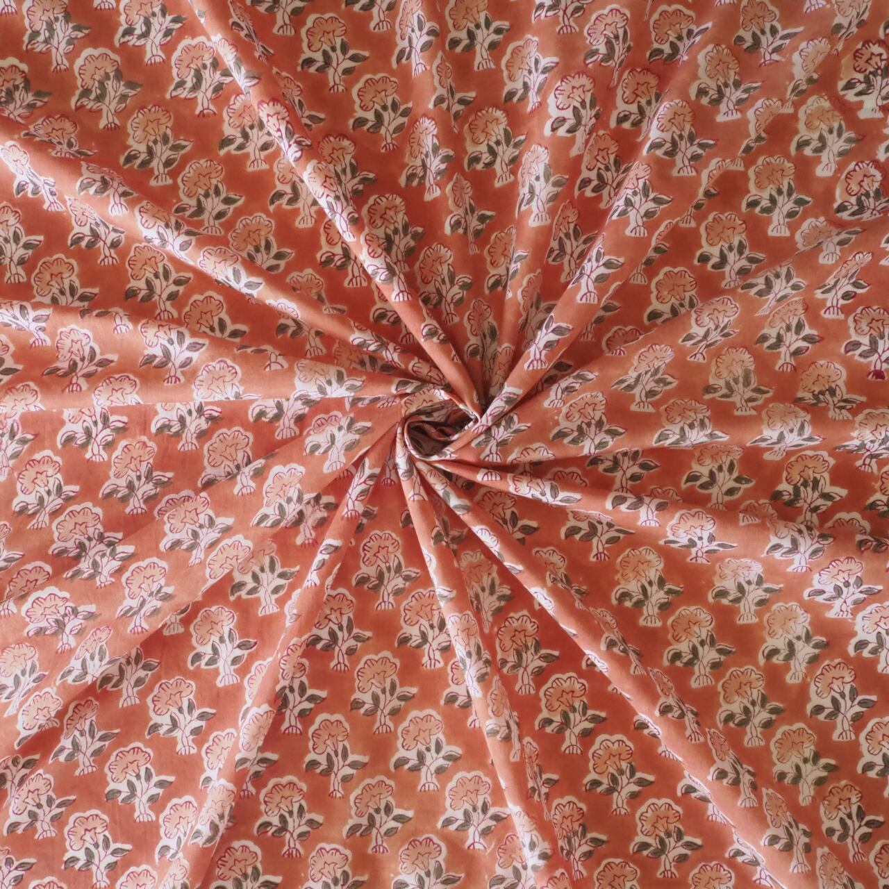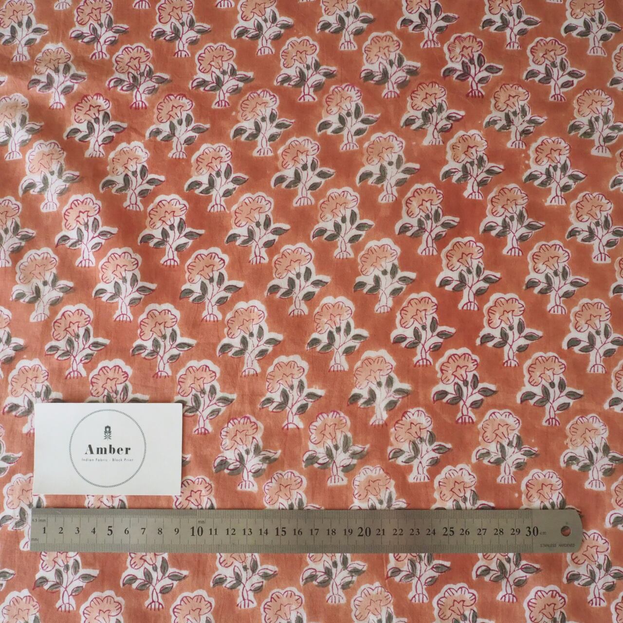 ブロックプリント生地【50cm単位】インド綿 小花柄 くすみオレンジ×カーキ #41783-OR2