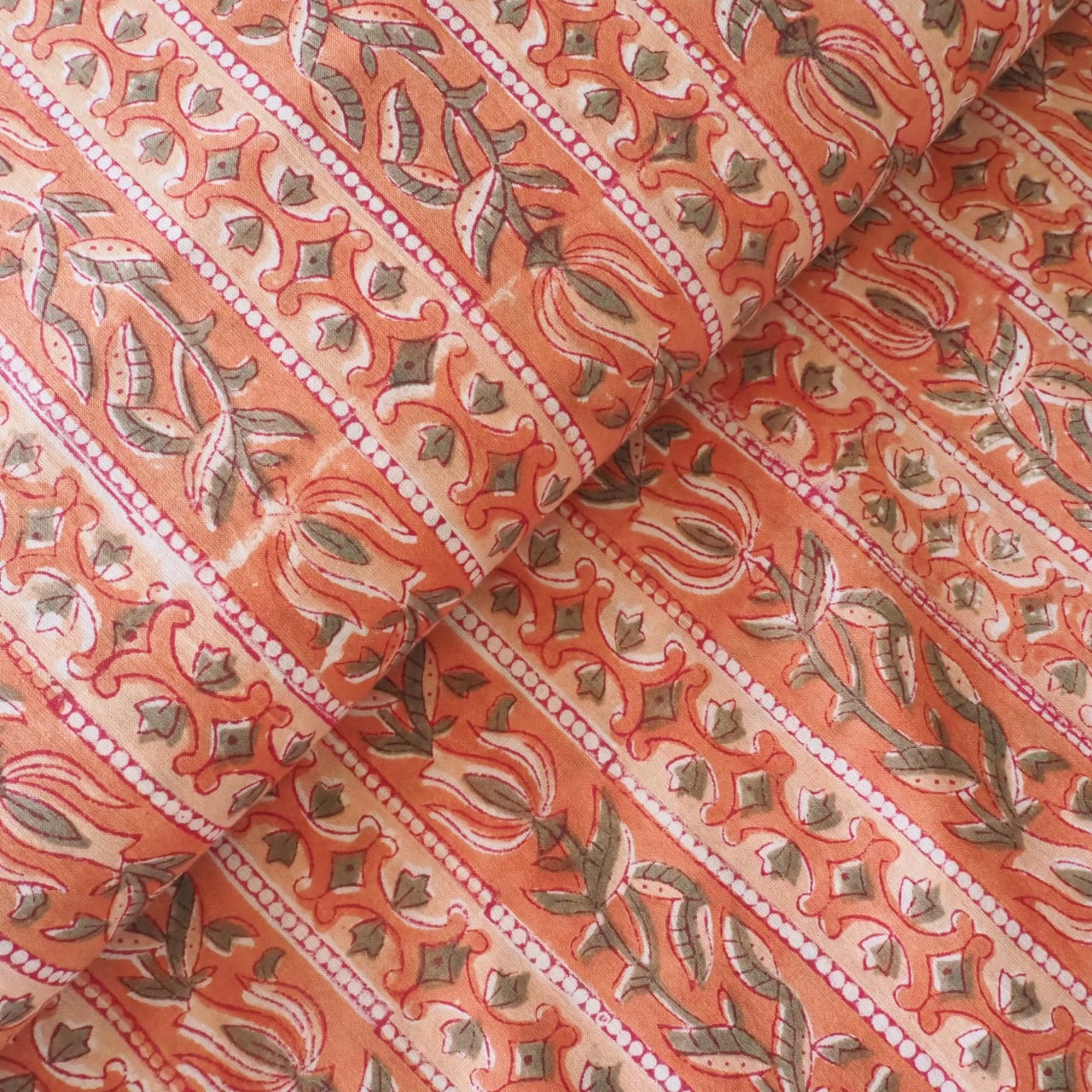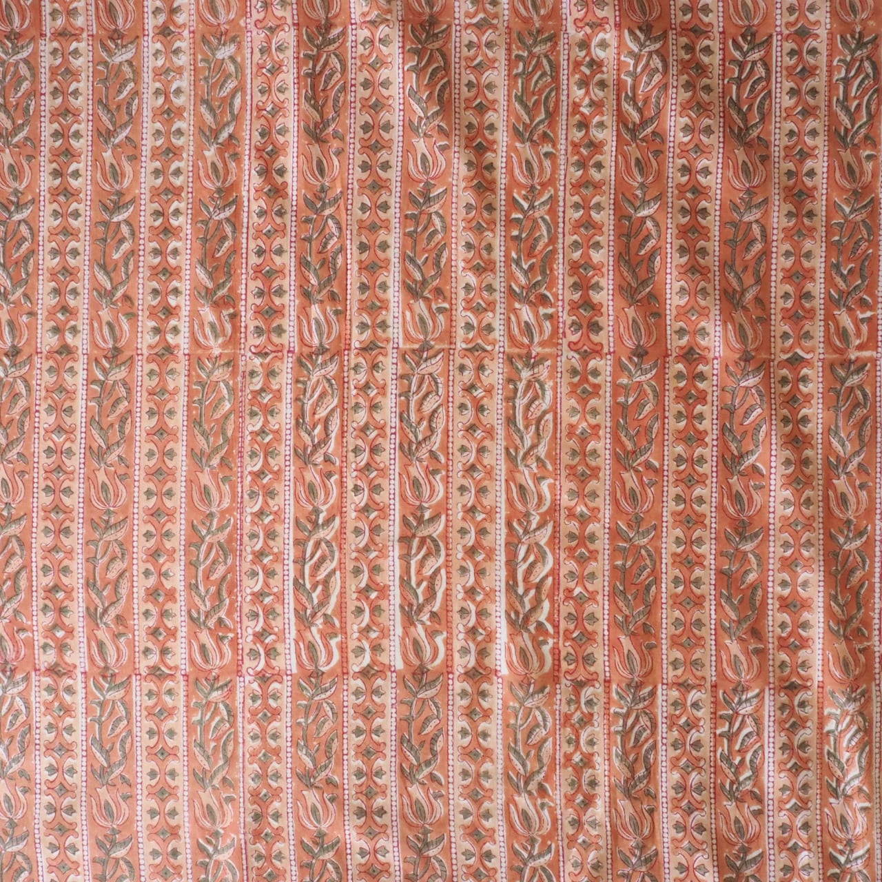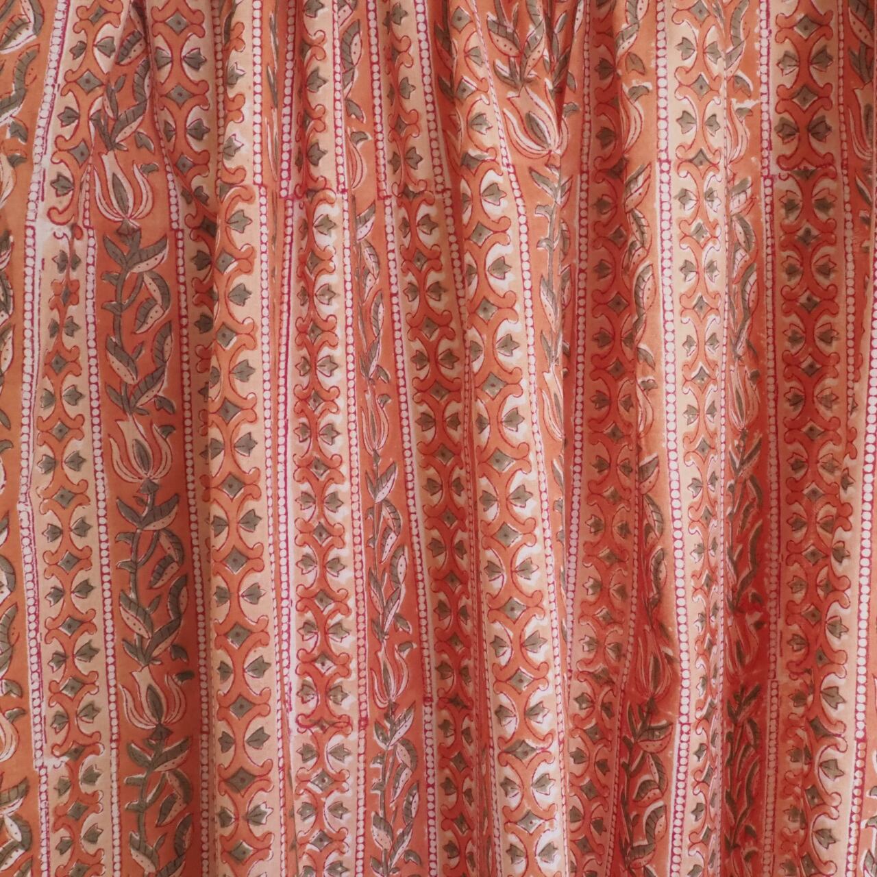 ブロックプリント生地【50cm単位】インド綿 ストライプ柄 くすみオレンジ×カーキ #41883-OR3