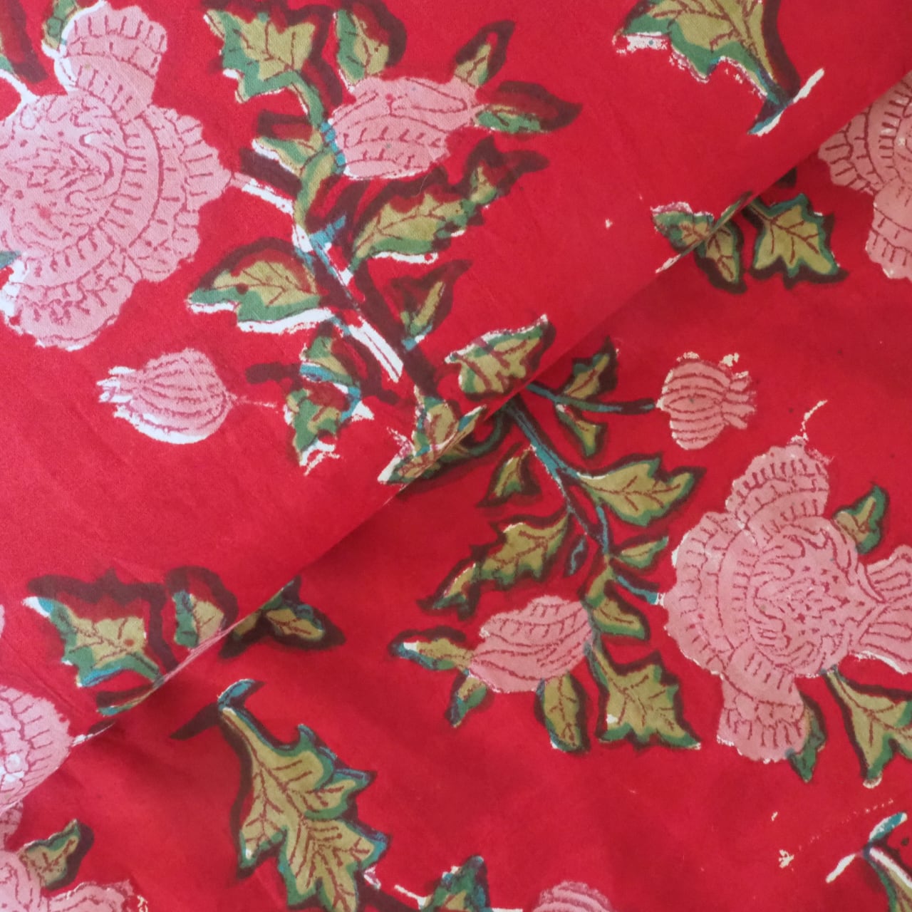 ブロックプリント生地【50cm単位】インド綿 花柄 赤×ピンク #42887-RD1