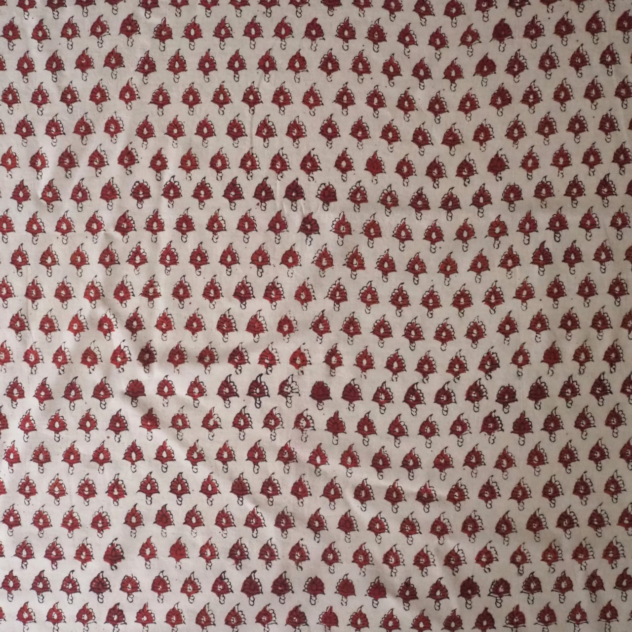 ブロックプリント生地【50cm単位】インド綿 小花柄 生成り×赤 #43610-WT1