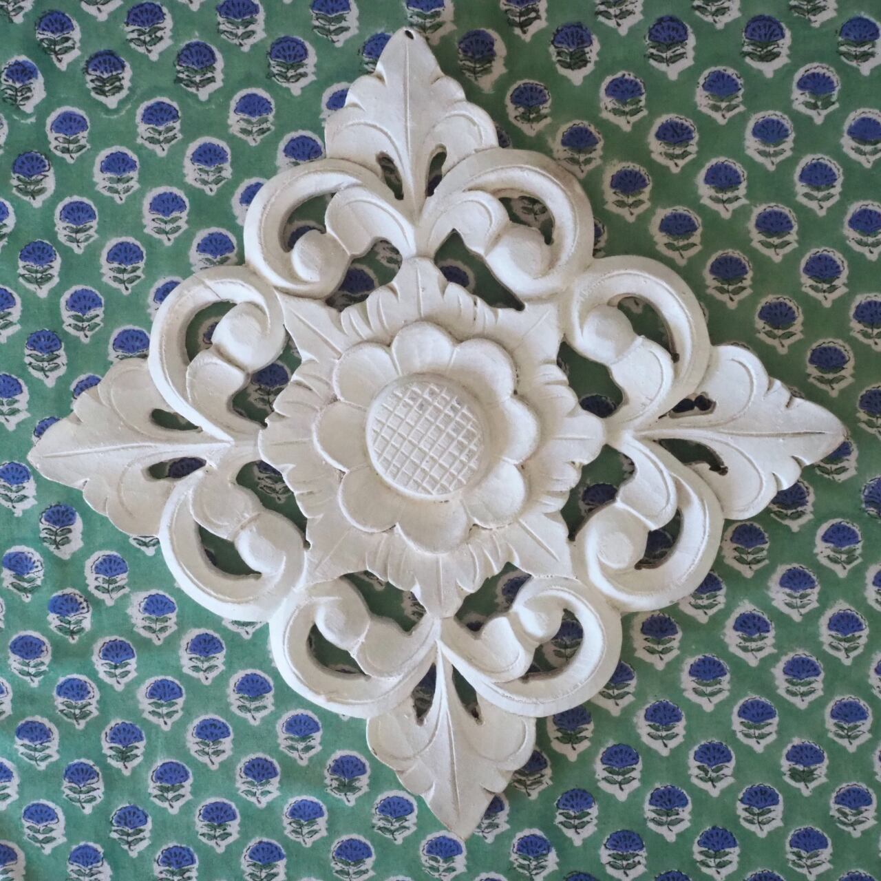 ハンドブロックプリントと呼ばれるインドのジャイプール地方に古くから伝わる伝統的な技法で、木彫りのスタンプで色を何度も重ね、全ての工程がインドの職人さんの手作業によって仕上がるAll Handmadeの生地です。