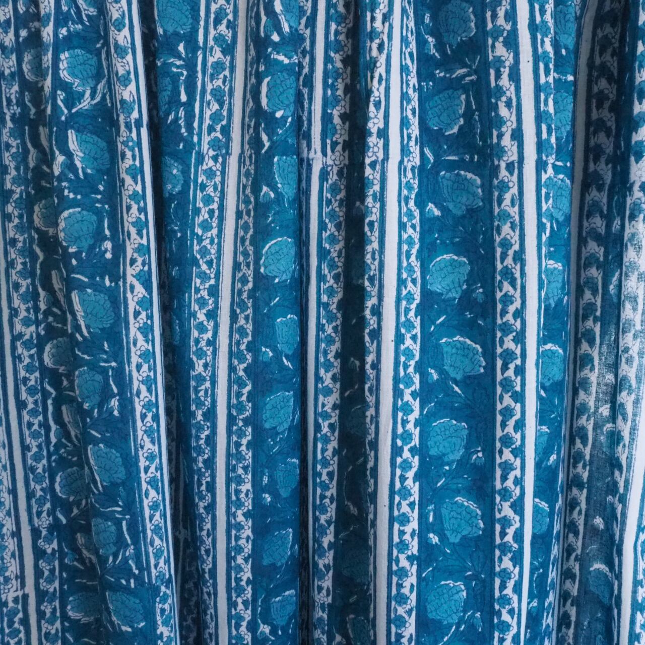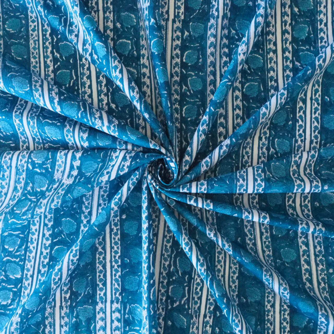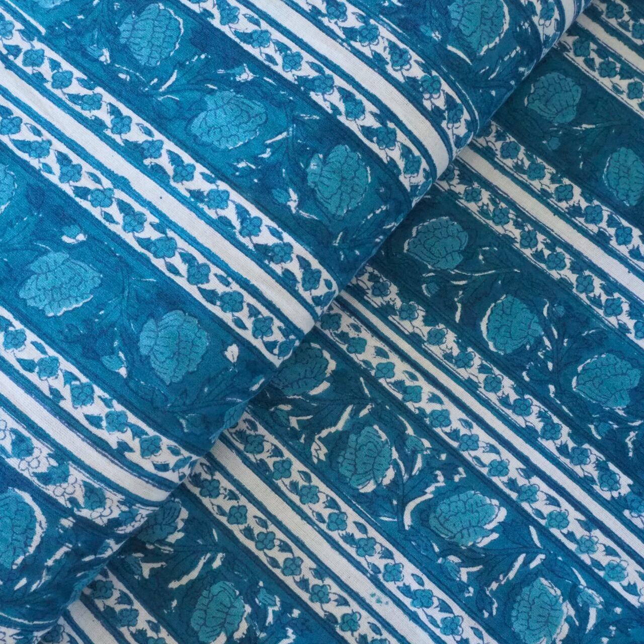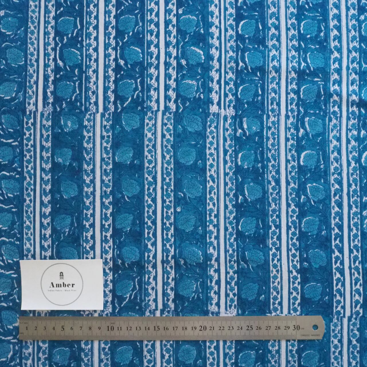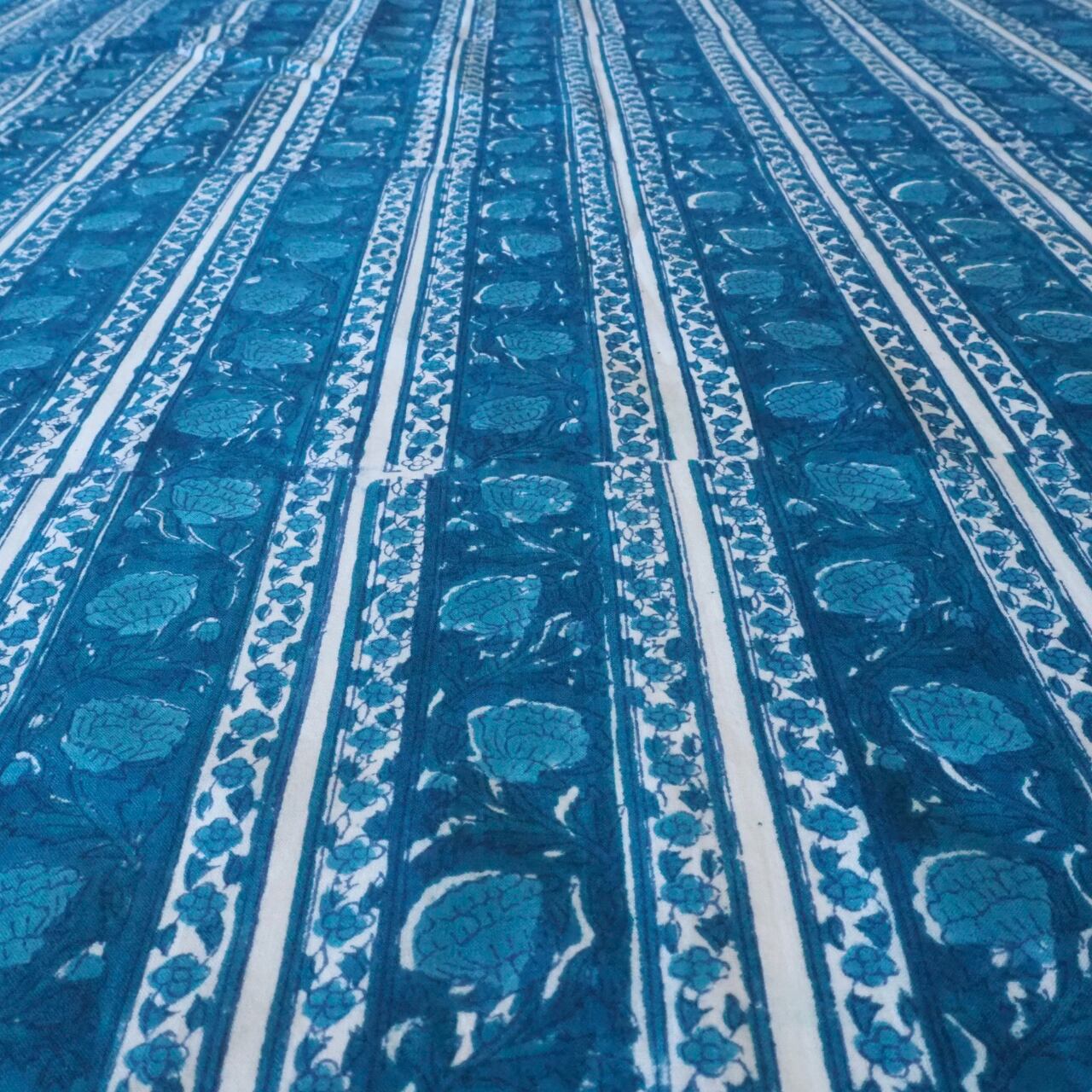 ブロックプリント生地【50cm単位】インド綿 ストライプ柄 マリンブルー×白 #45392-BL2