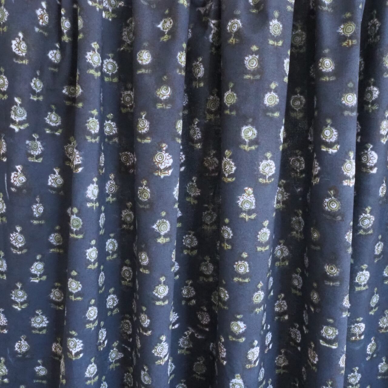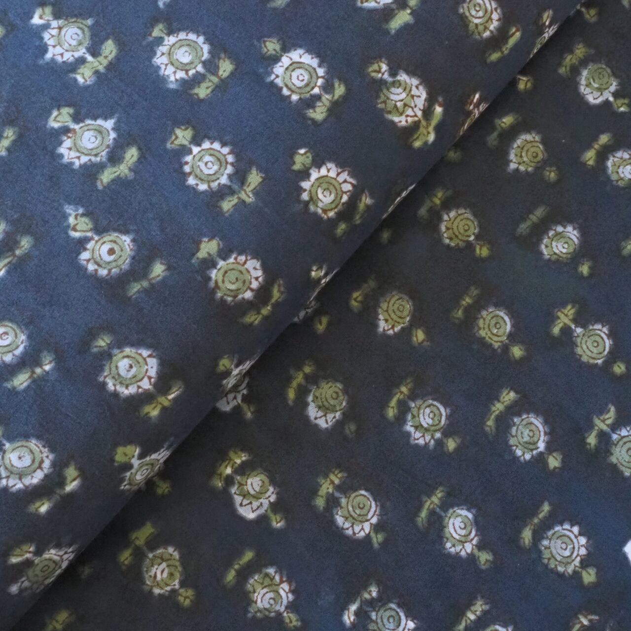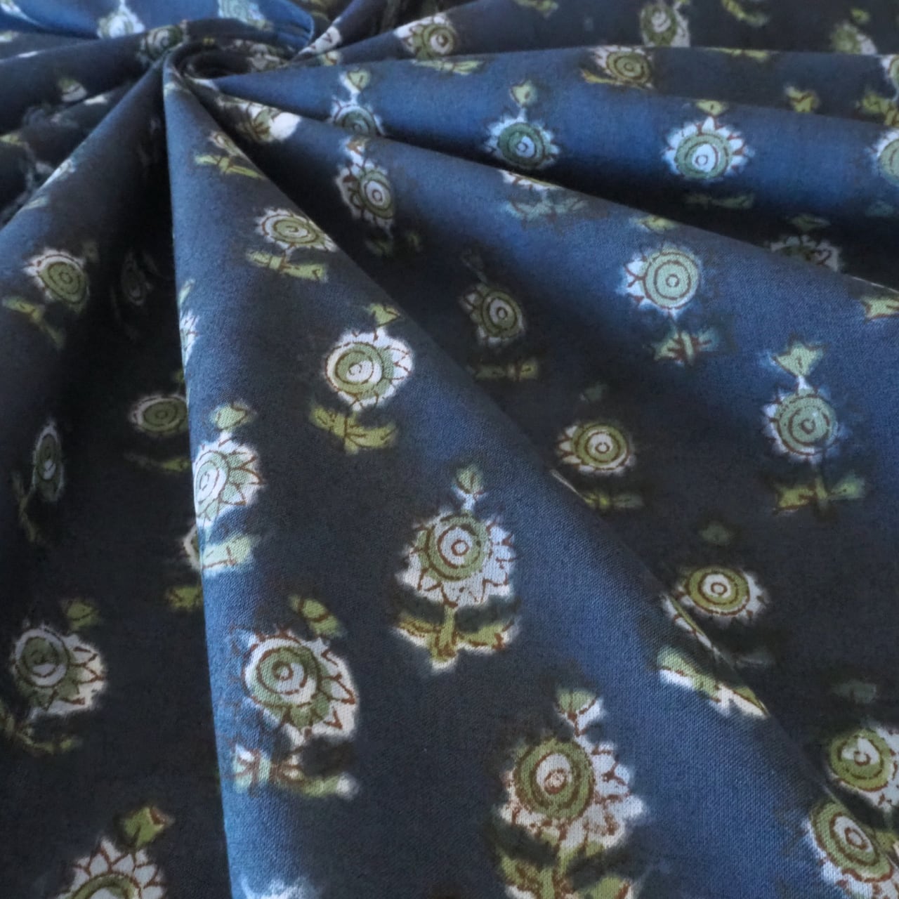 ブロックプリント生地【50cm単位】インド綿 小花柄B ネイビー×水色 #45593-NV2