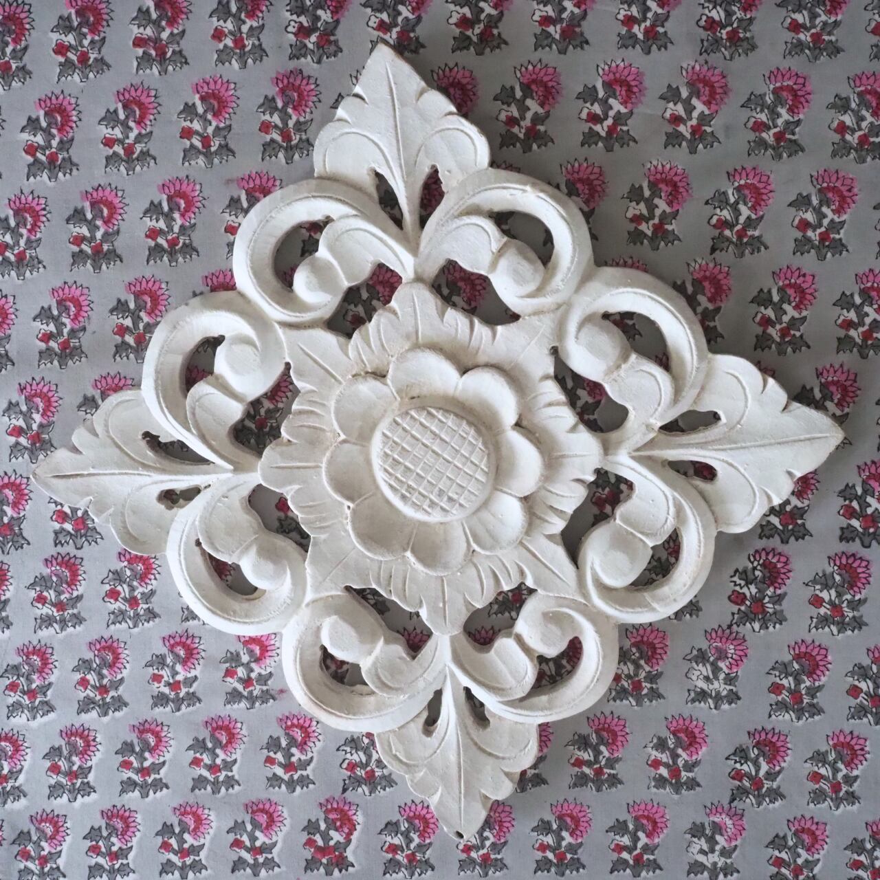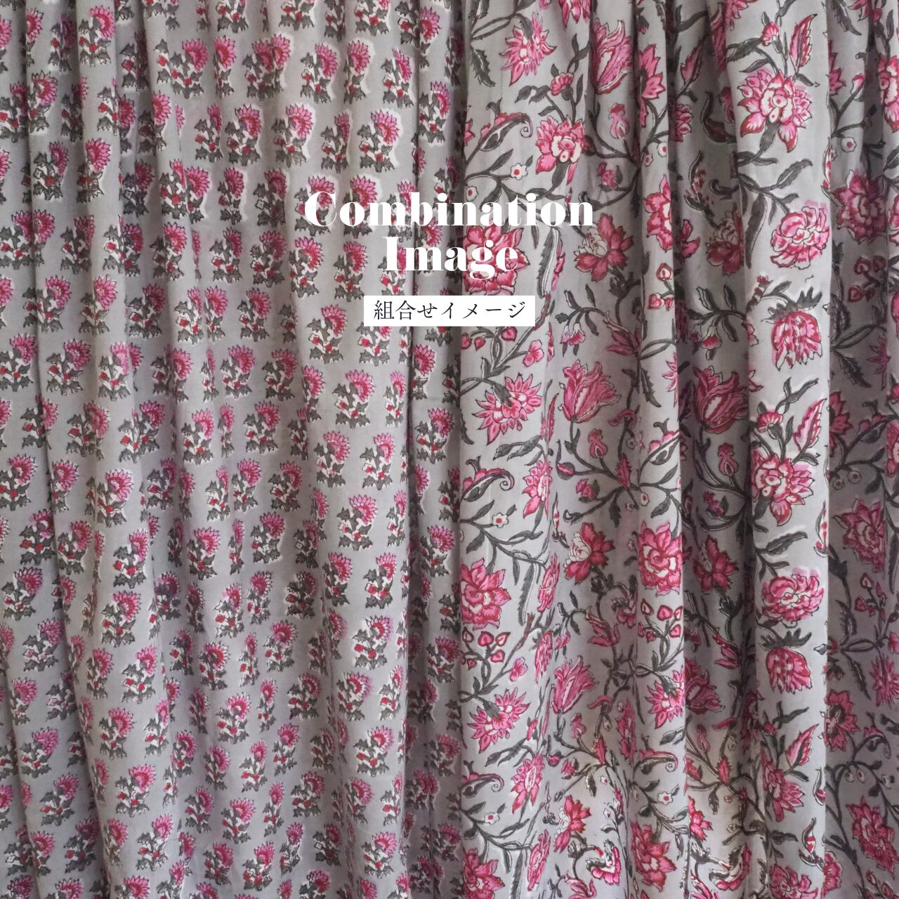 ハンドブロックプリントと呼ばれるインドのジャイプール地方に古くから伝わる伝統的な技法で、木彫りのスタンプで色を何度も重ね、全ての工程がインドの職人さんの手作業によって仕上がるAll Handmadeの生地です。