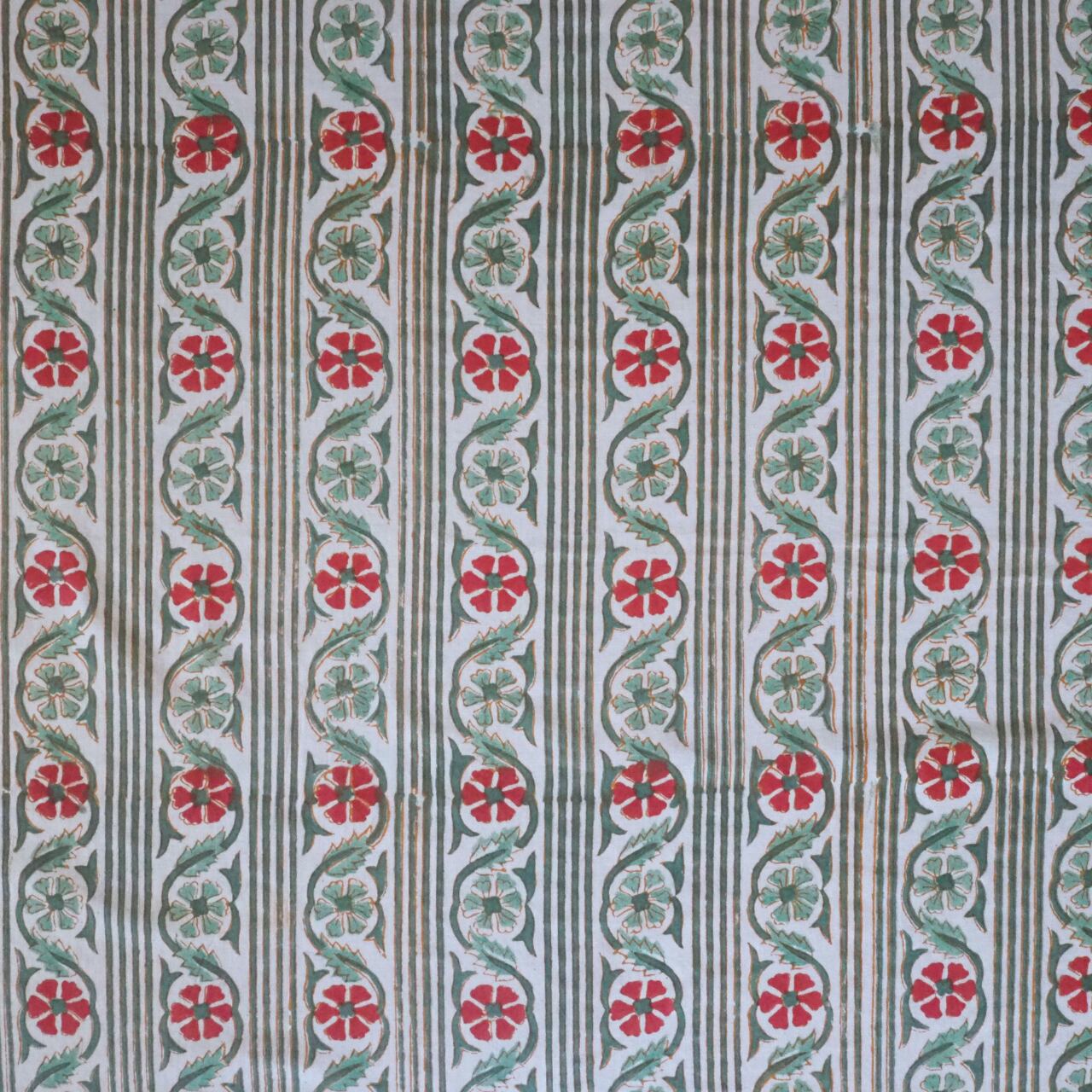 ブロックプリント生地【50cm単位】インド綿 ストライプ柄 白×くすみグリーン×赤 #46396-GR2