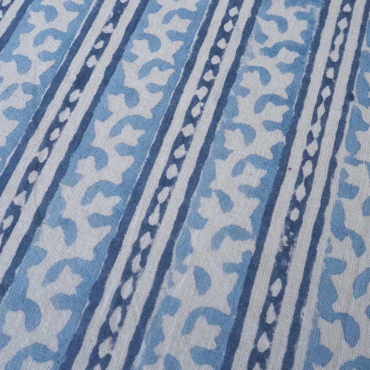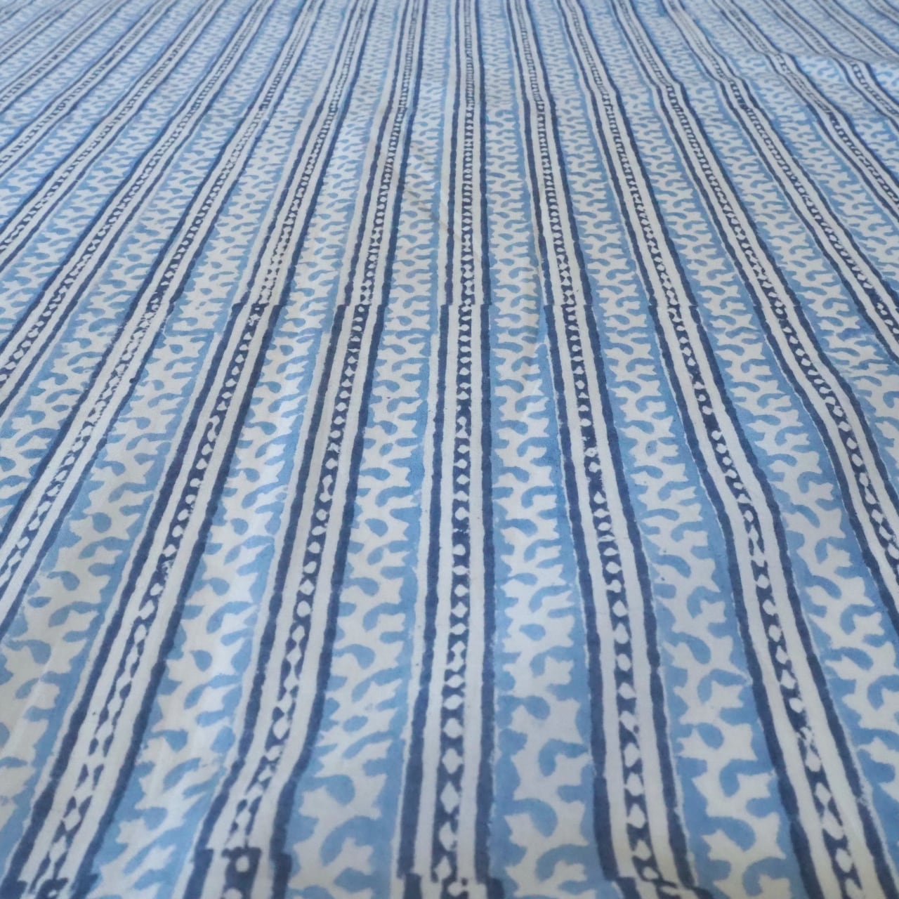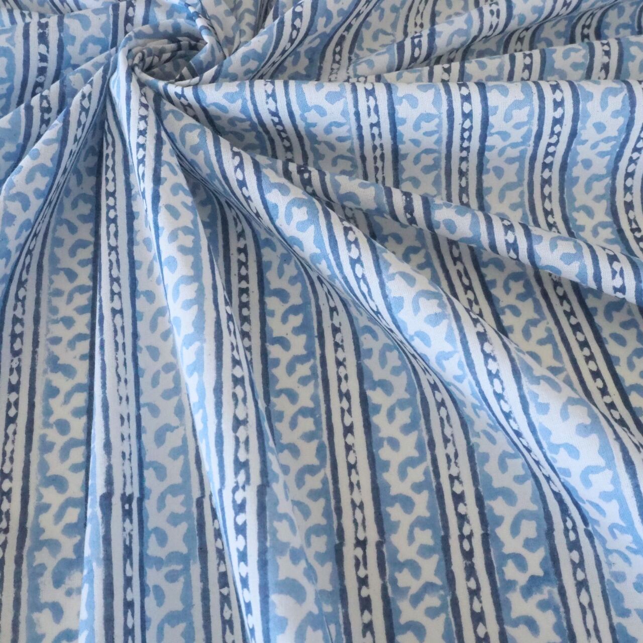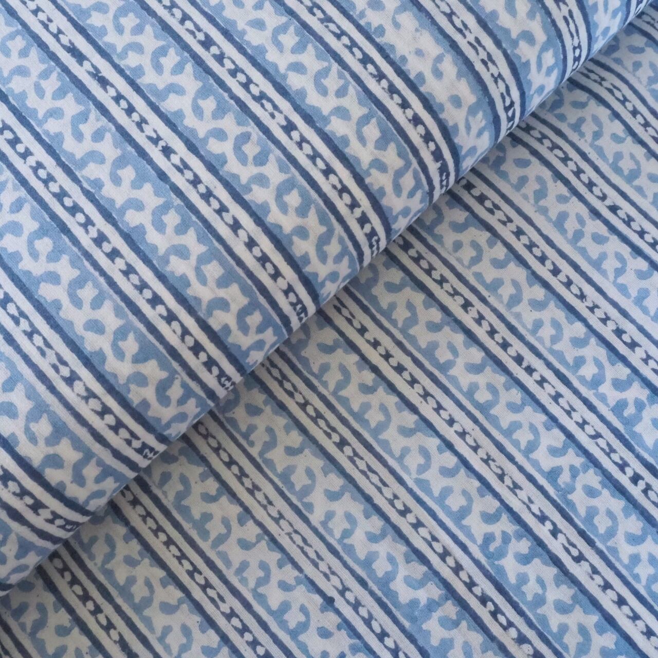 ブロックプリント生地【50cm単位】インド綿 ストライプ柄 ゼニスブルー×白 #46897-BL3
