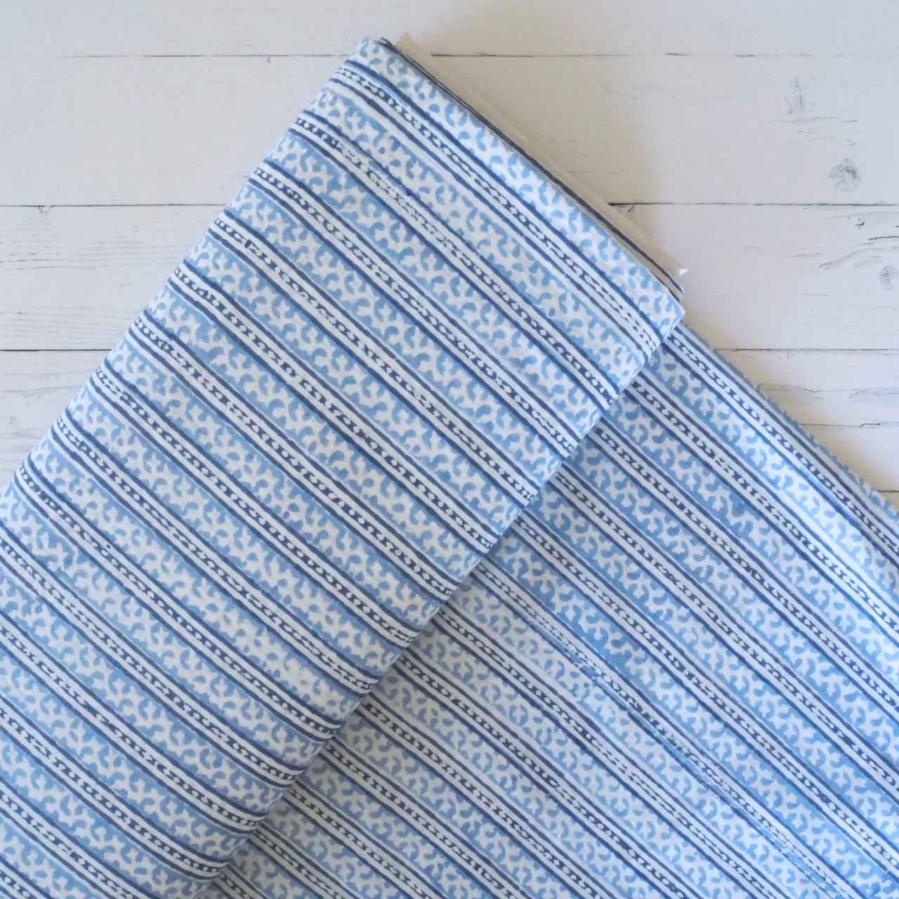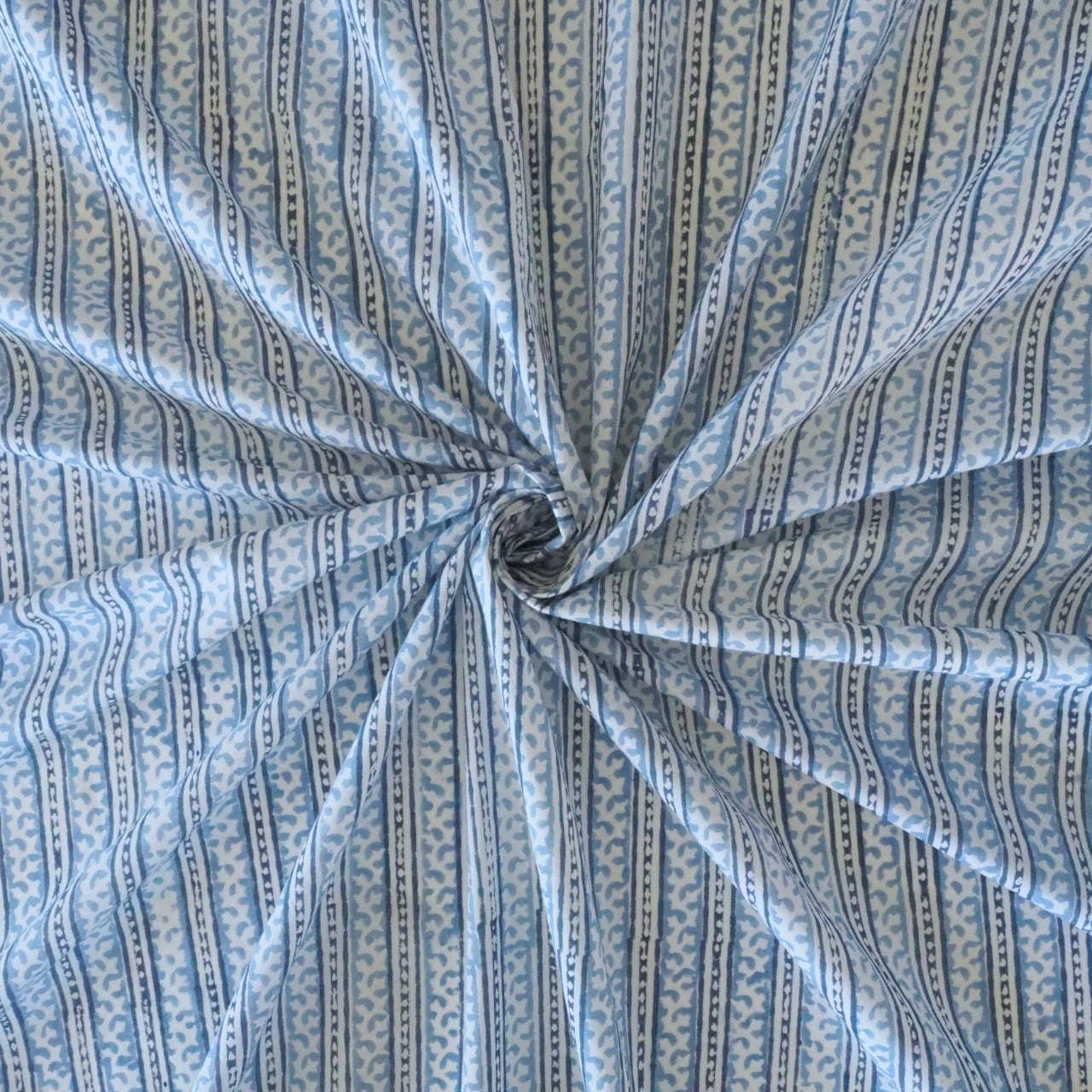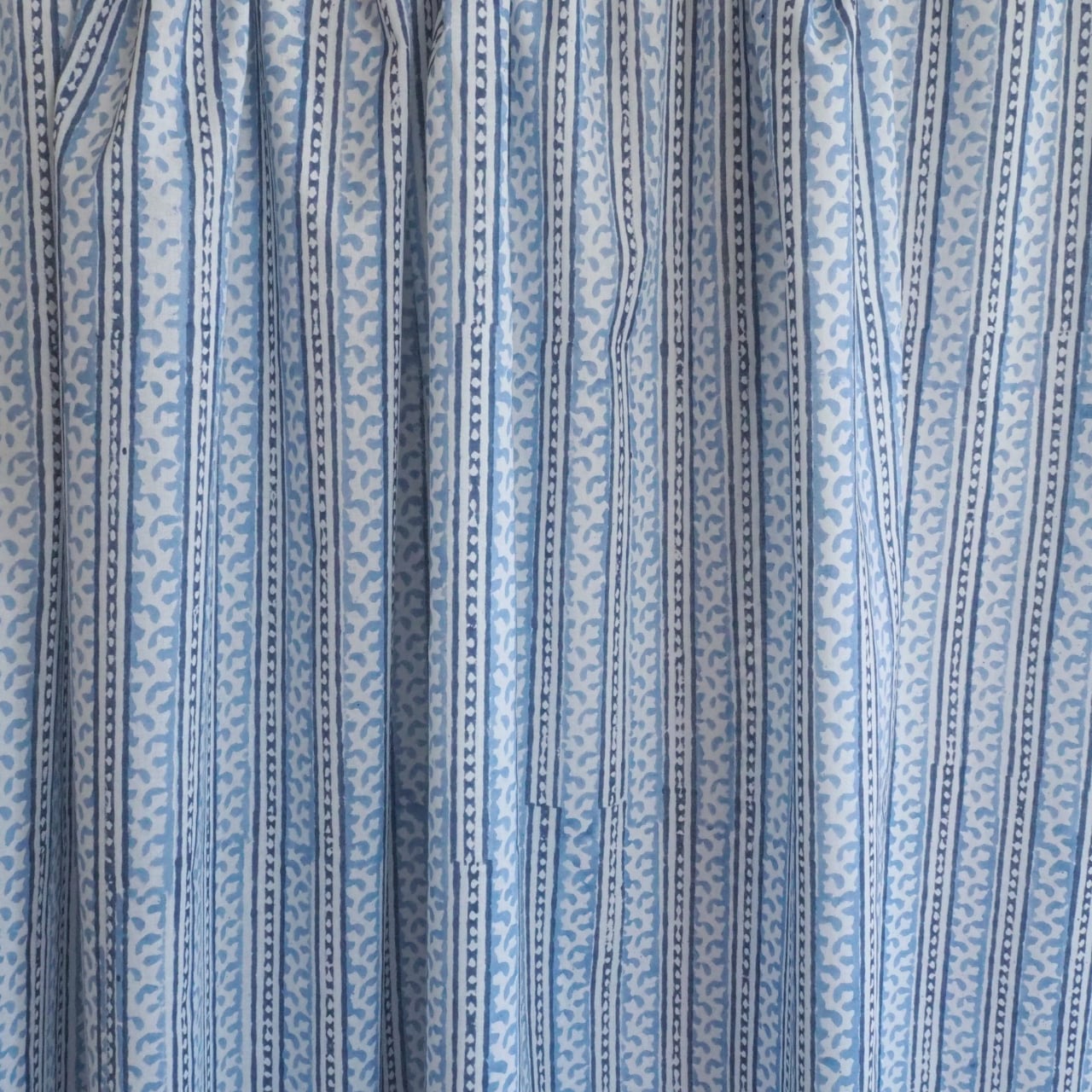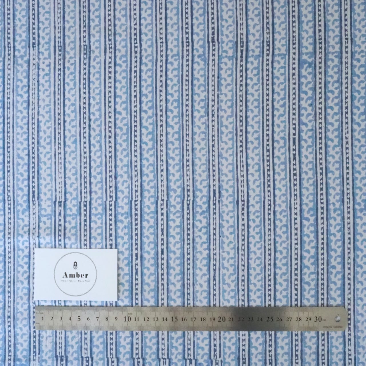 ブロックプリント生地【50cm単位】インド綿 ストライプ柄 ゼニスブルー×白 #46897-BL3
