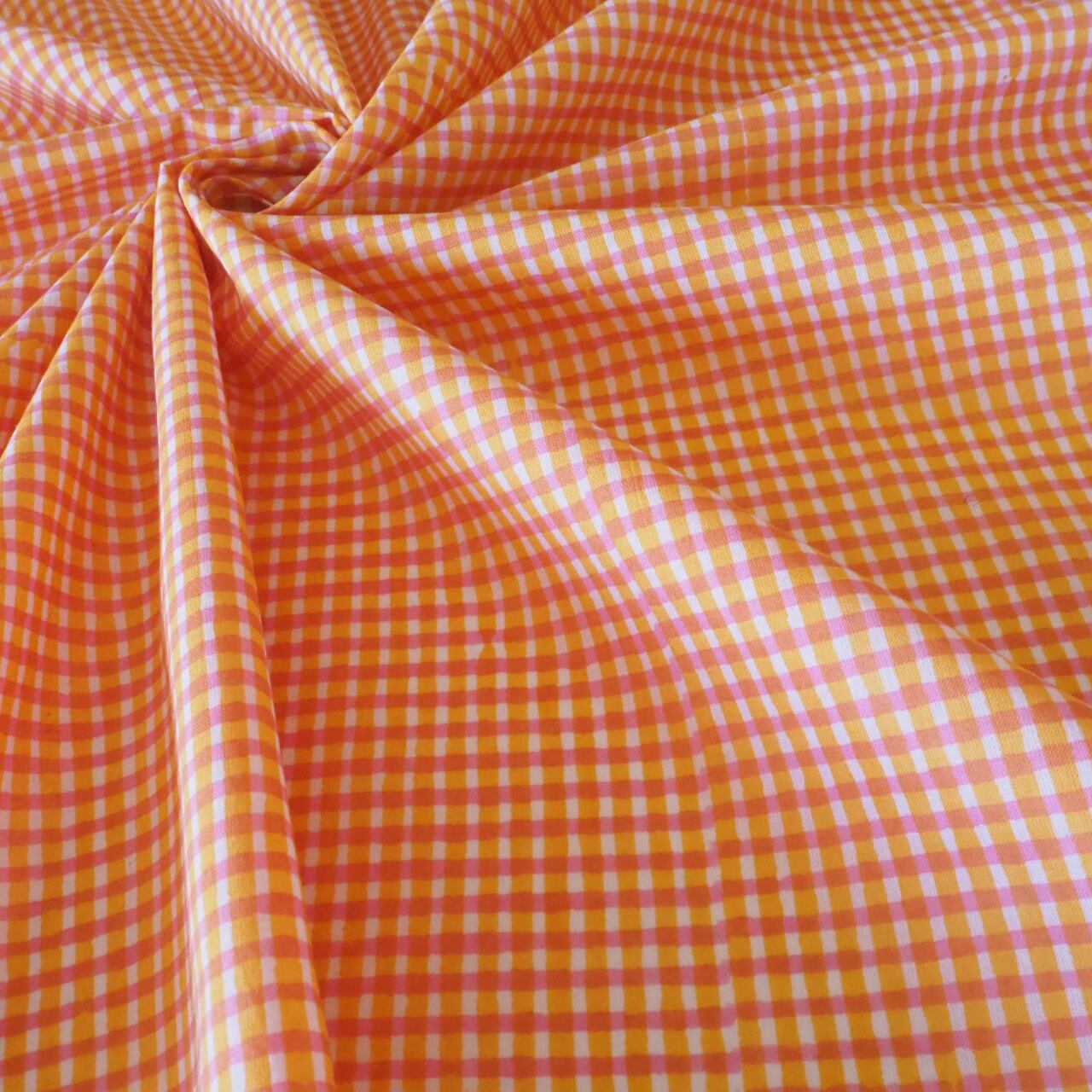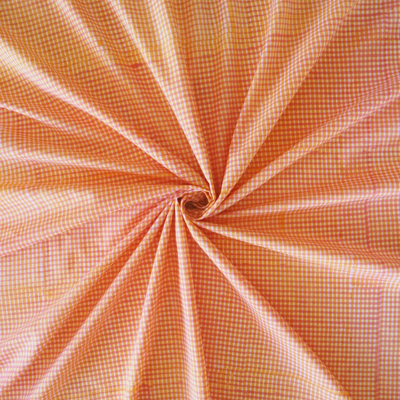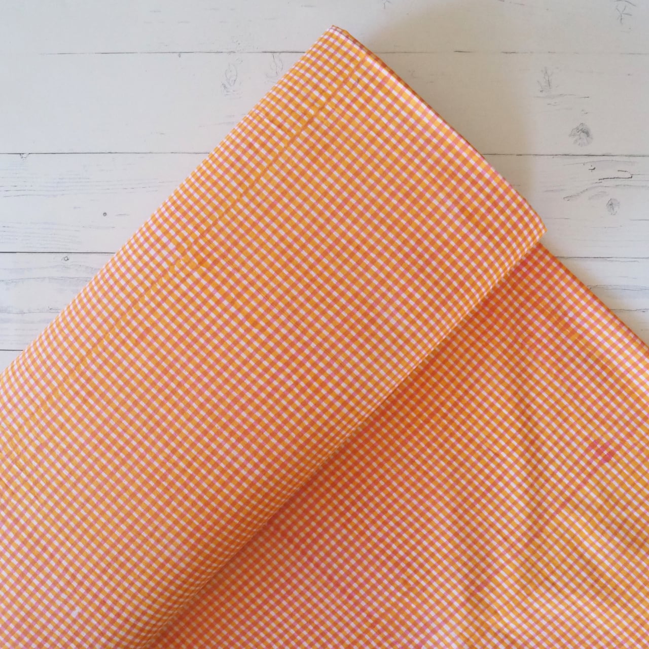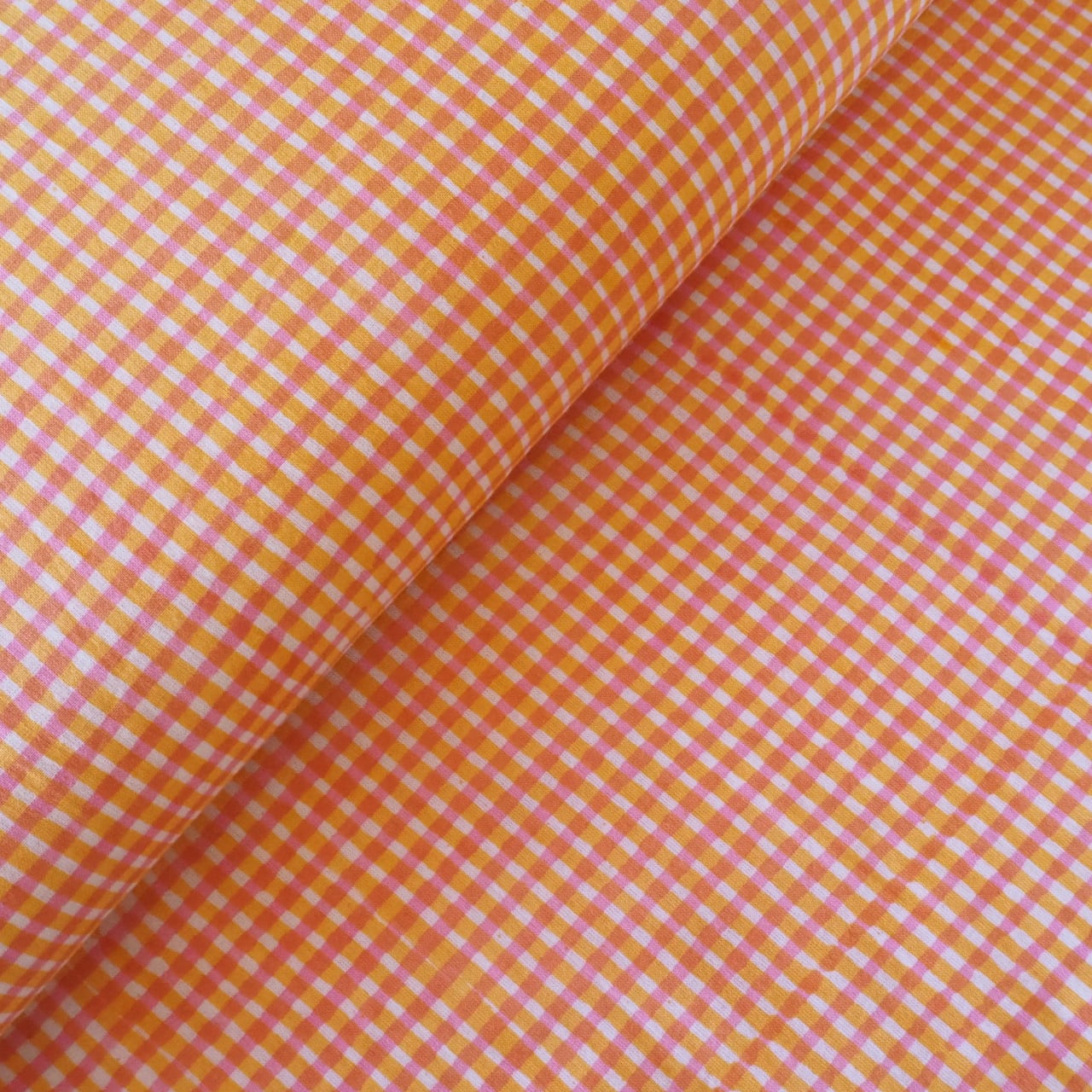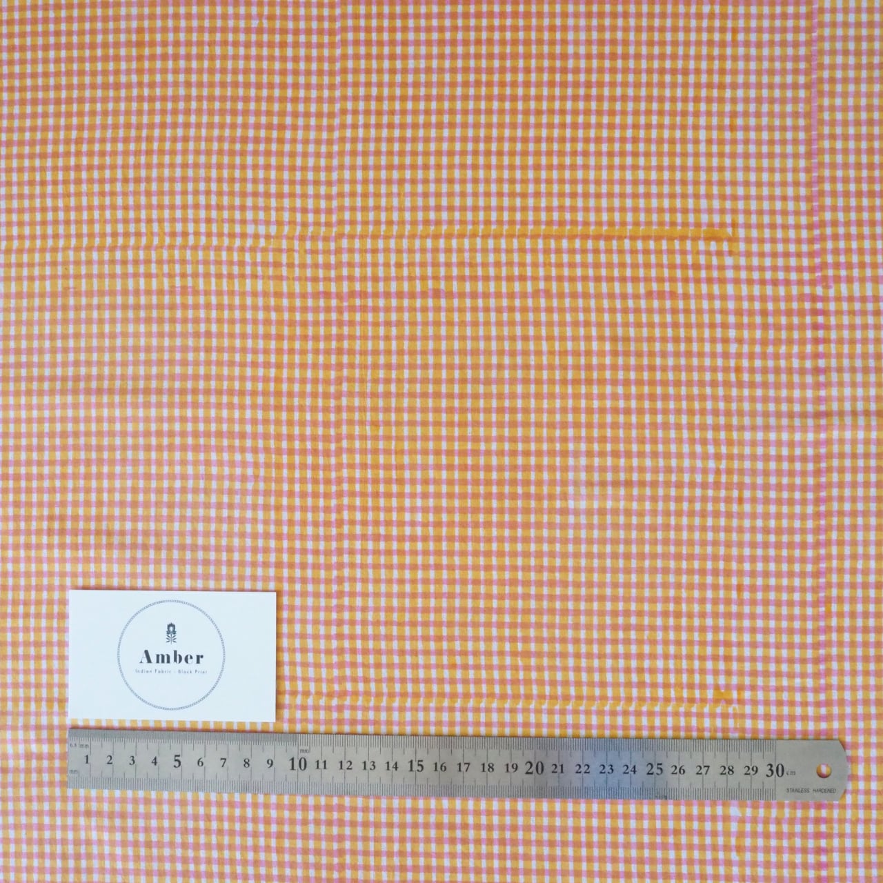 ブロックプリント生地【50cm単位】インド綿 チェック柄 ピンク×イエロー #49510-YL1