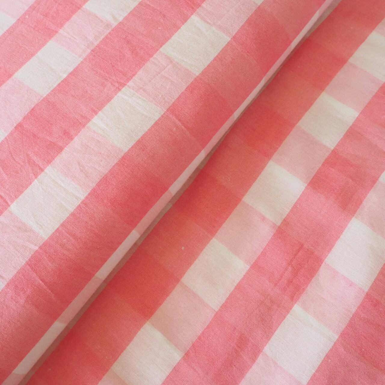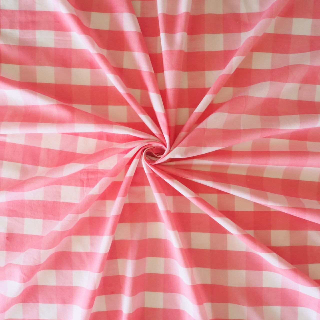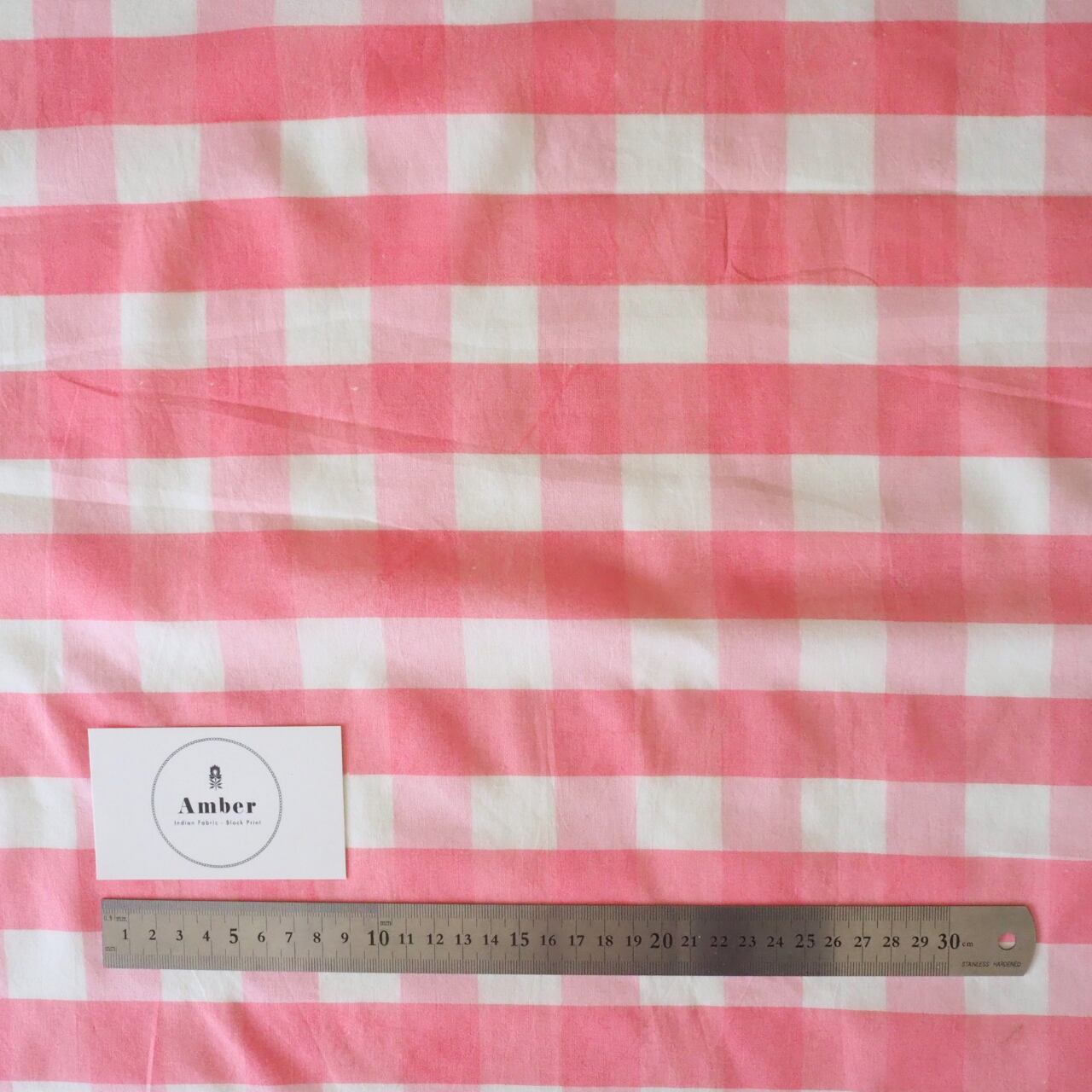 ブロックプリント生地【50cm単位】インド綿 チェック柄(大) 白×ピンク #49912-PK1