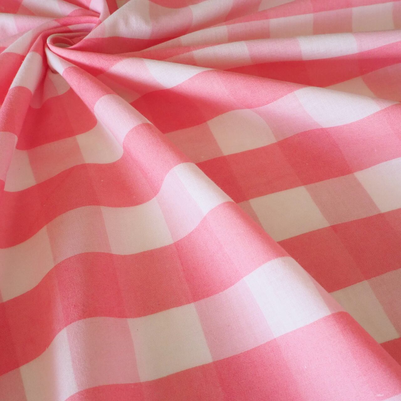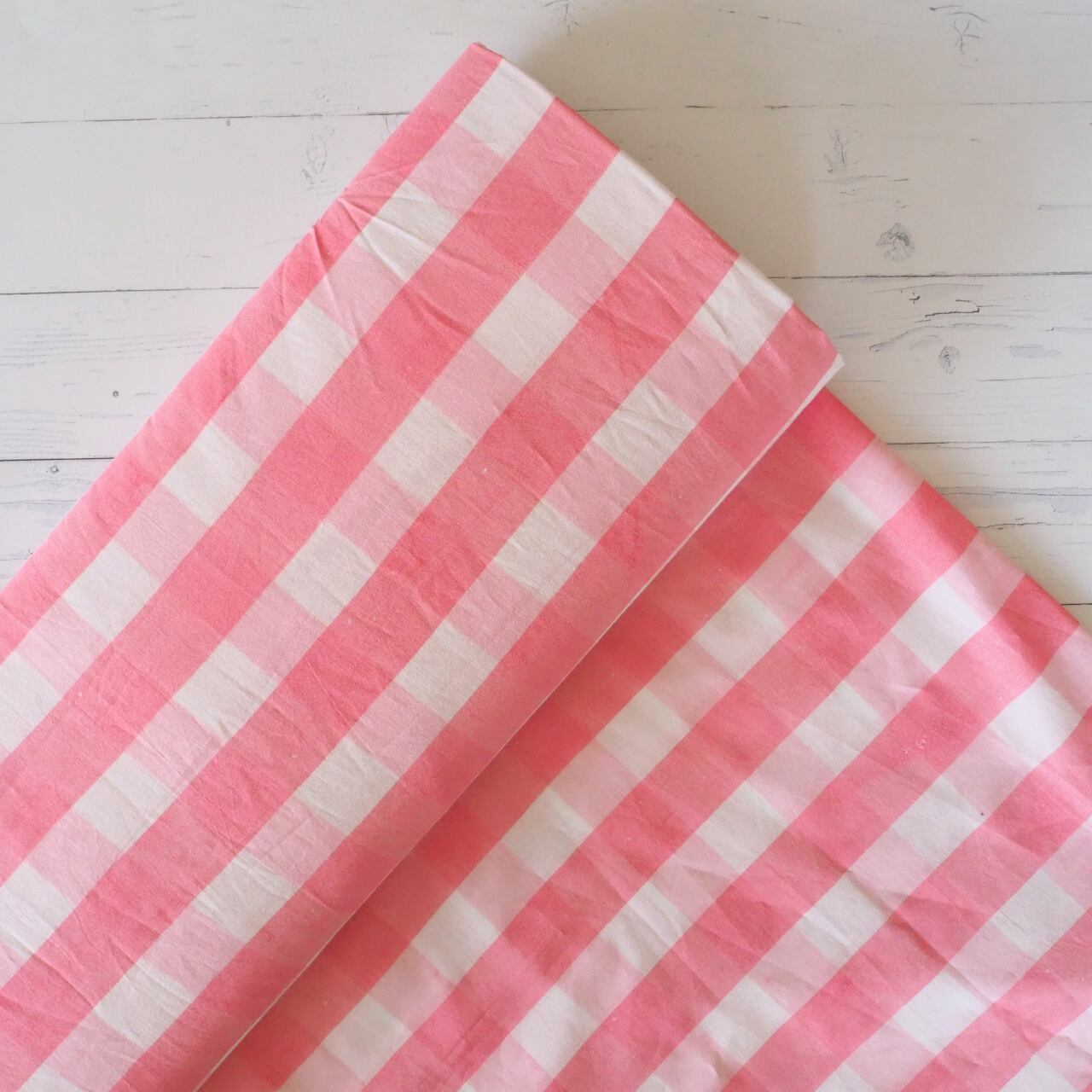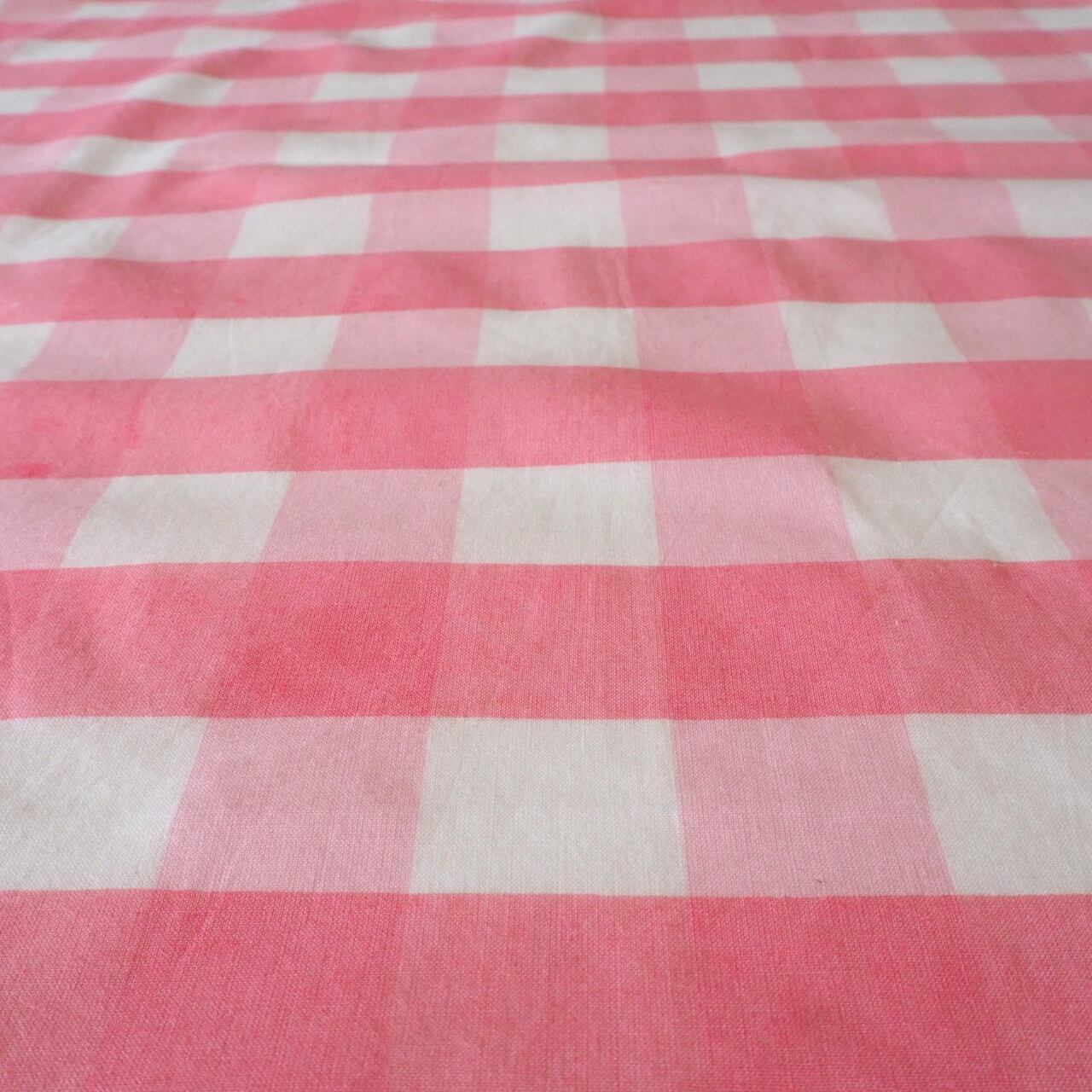 ブロックプリント生地【50cm単位】インド綿 チェック柄(大) 白×ピンク #49912-PK1