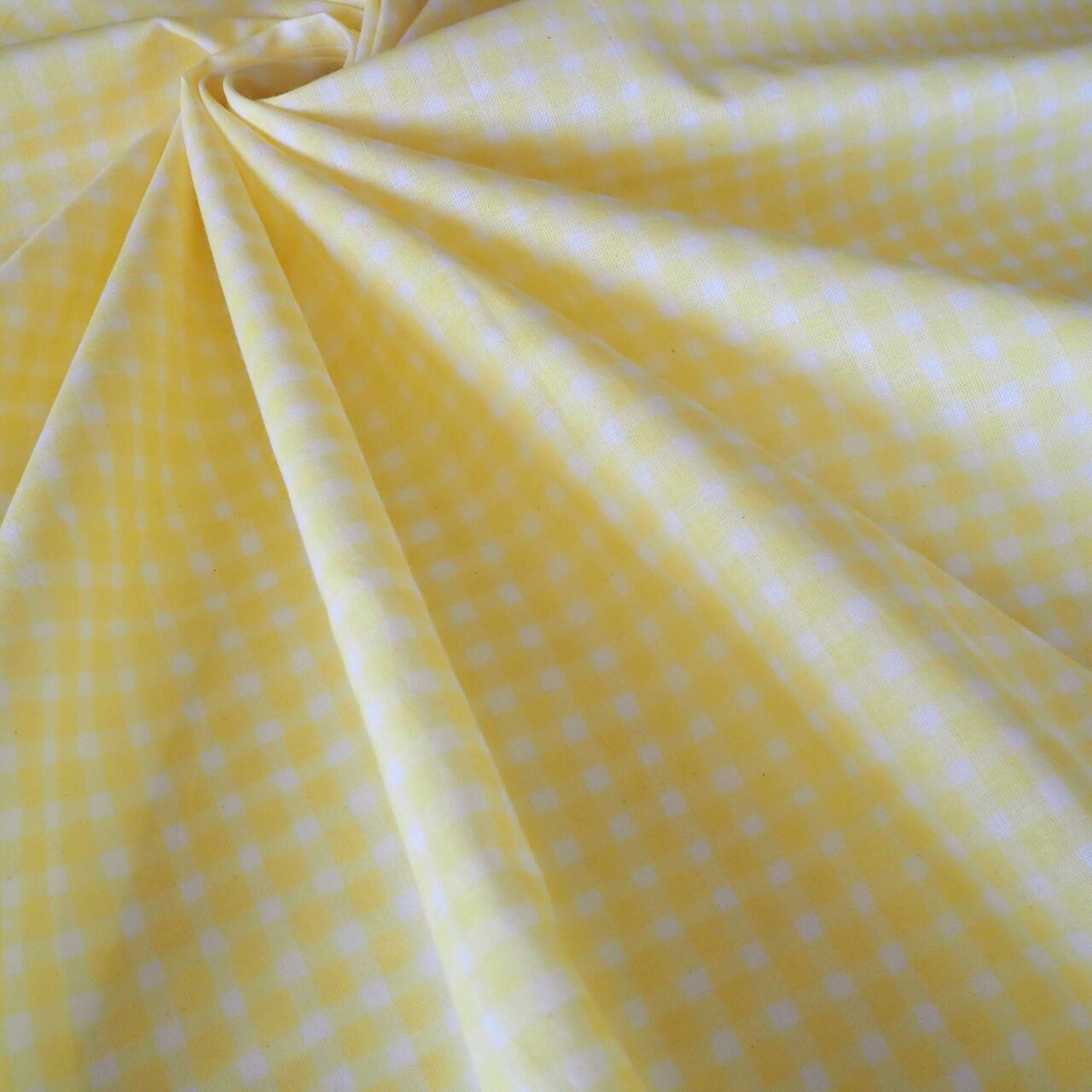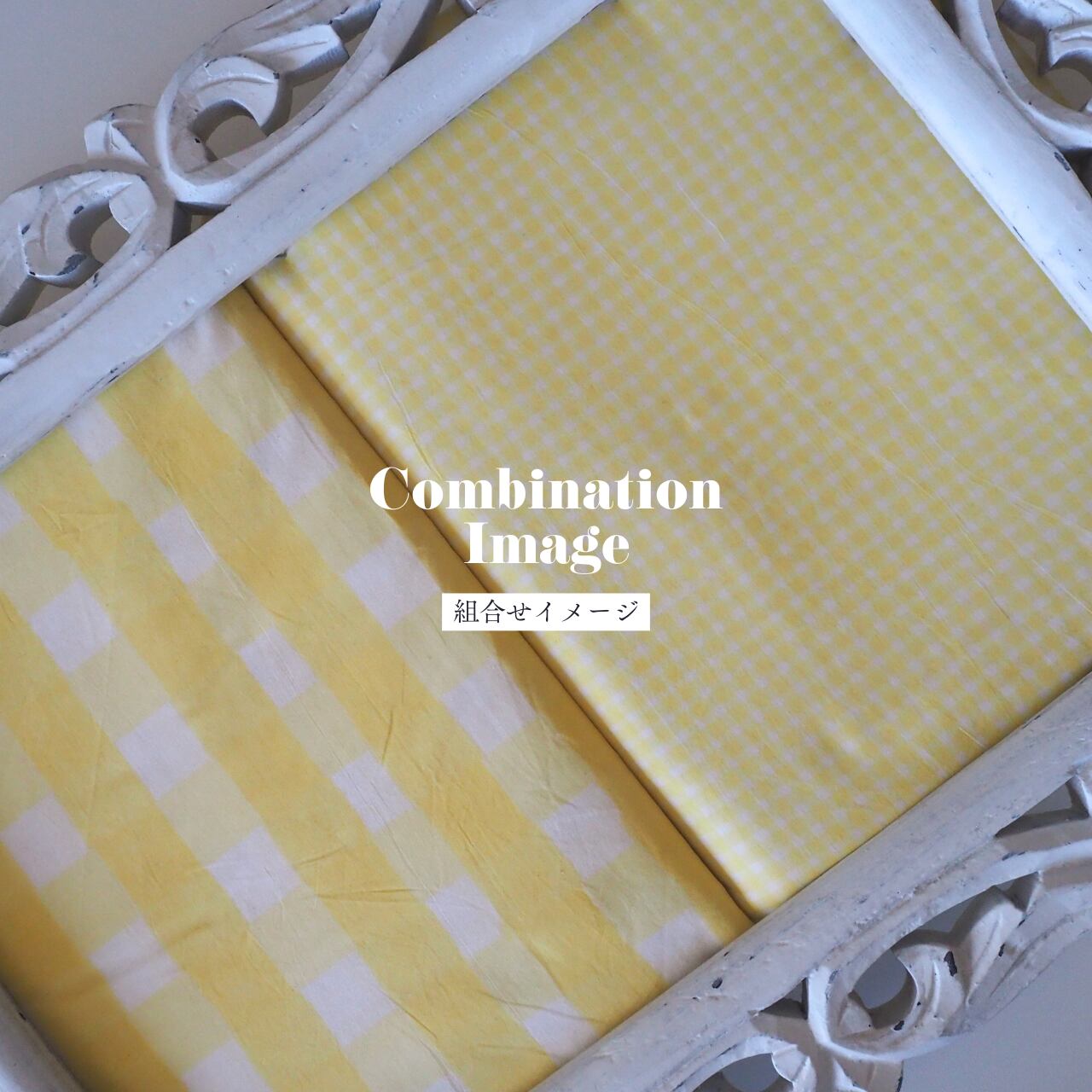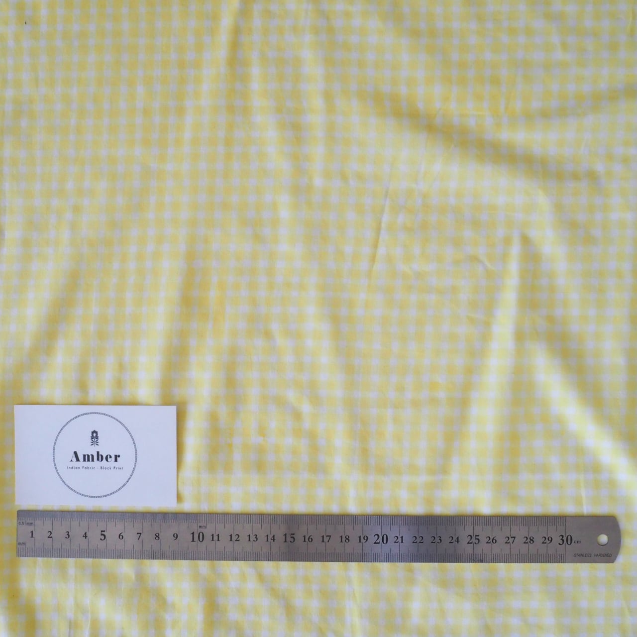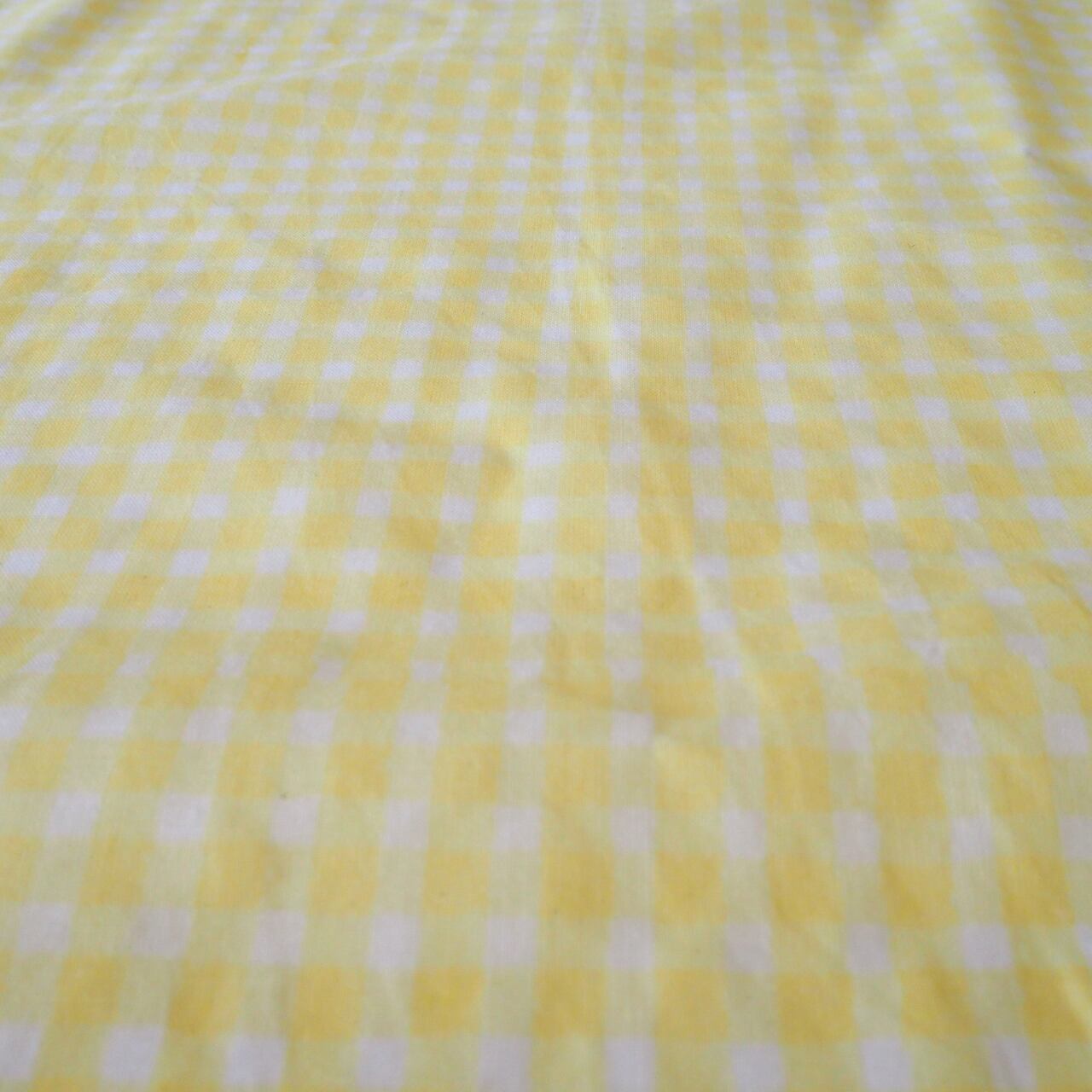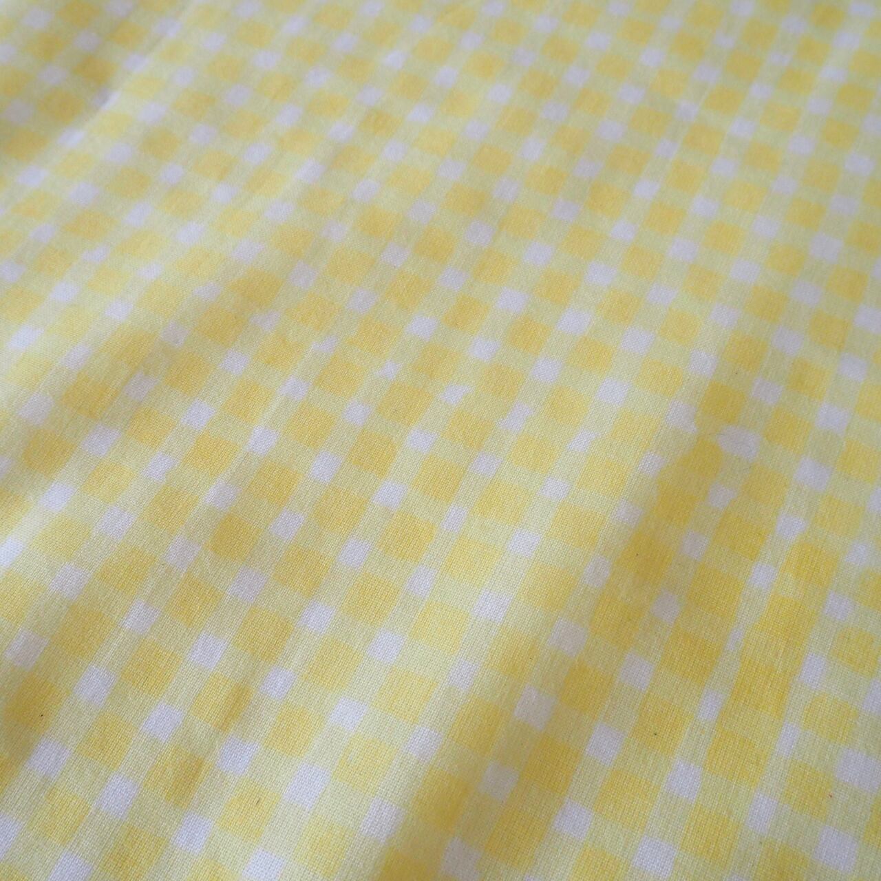 ブロックプリント生地【50cm単位】インド綿 チェック柄(小) 白×イエロー #50213-YL2