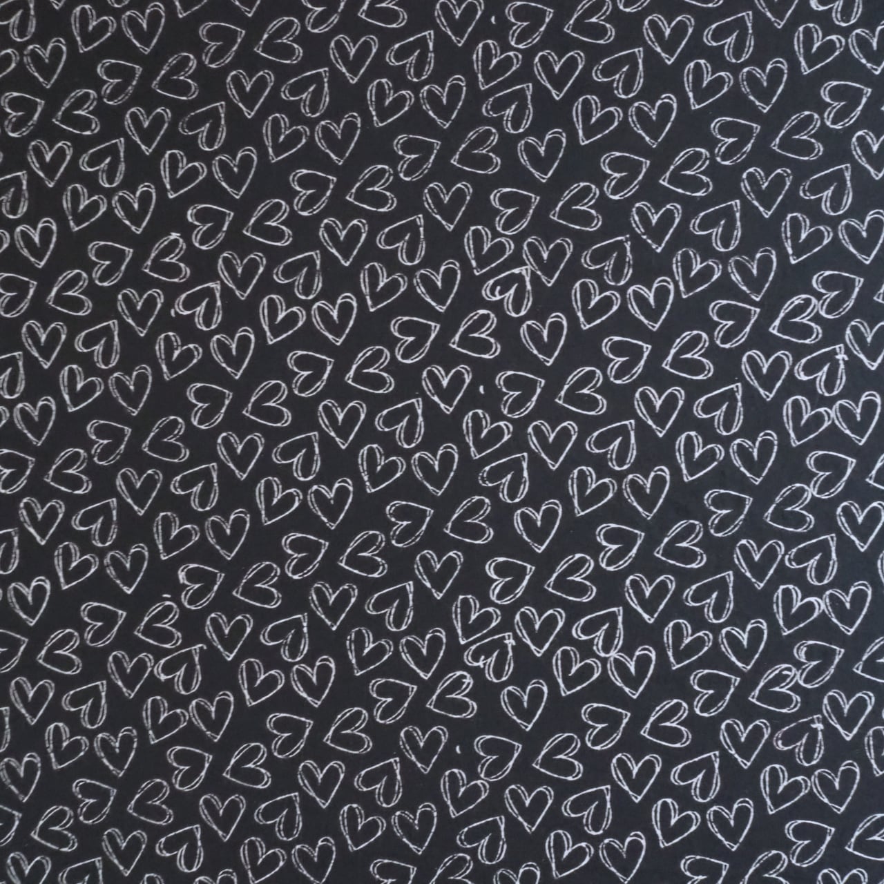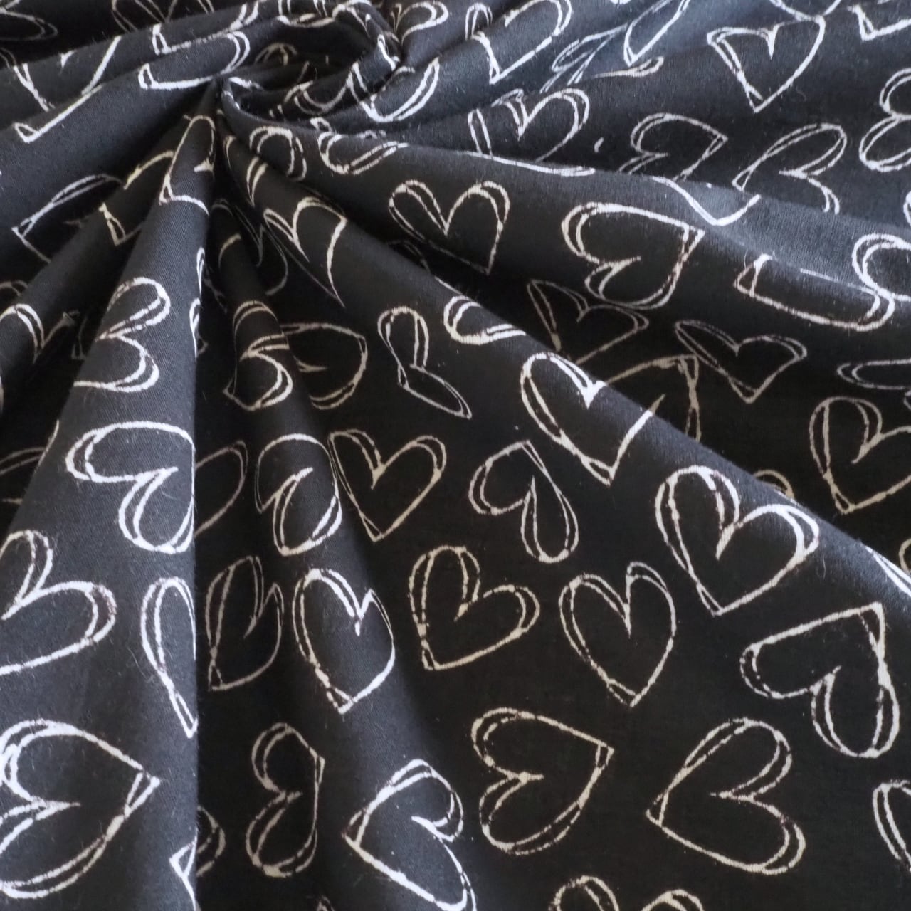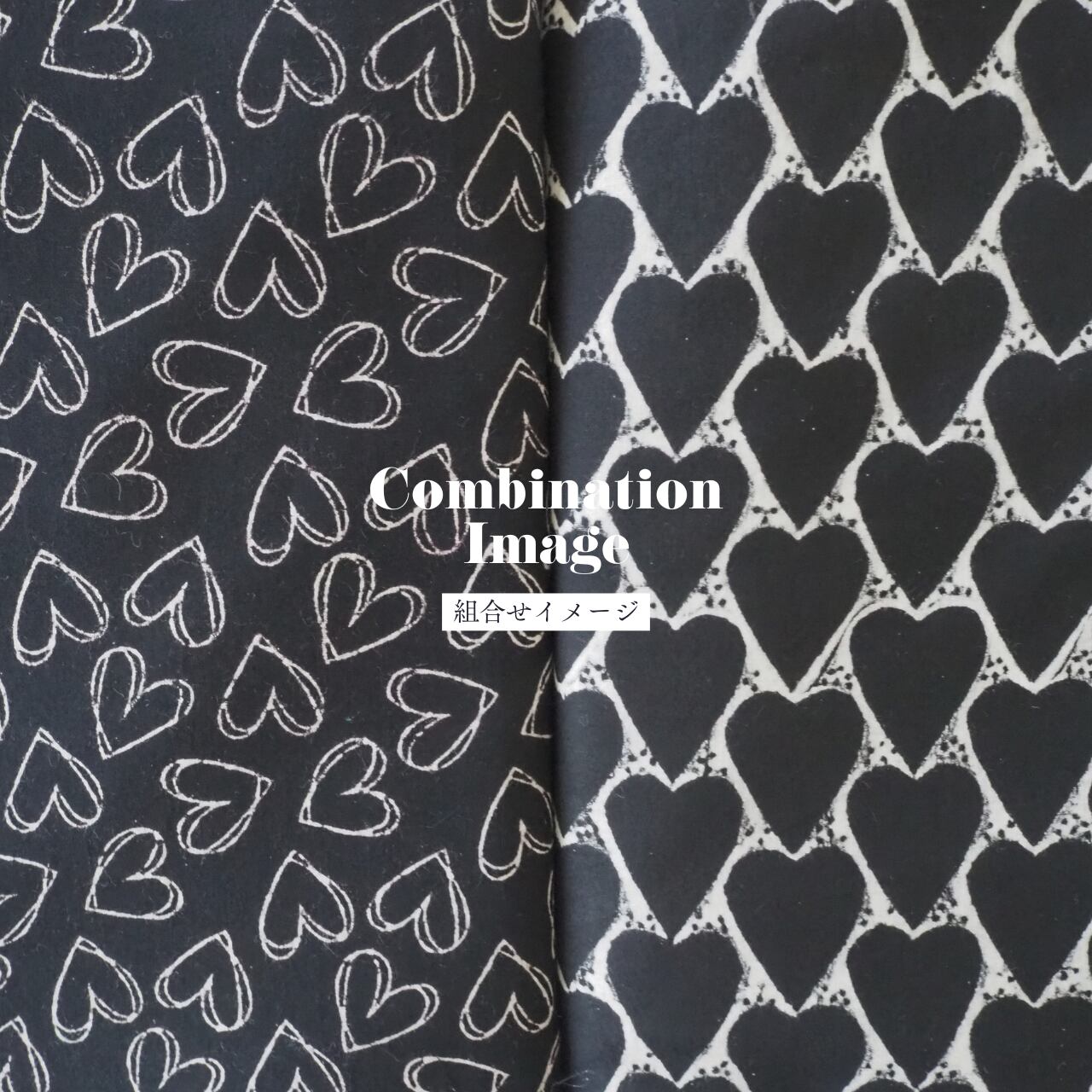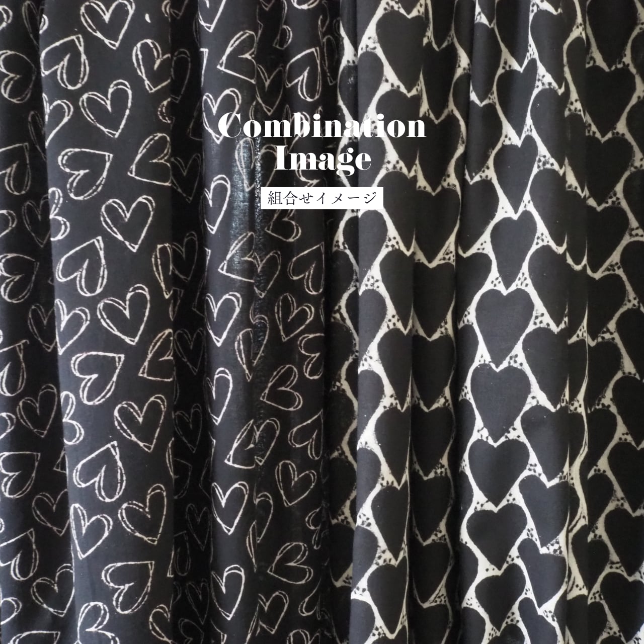 ブロックプリント生地【50cm単位】インド綿 ハート柄B ブラック #52110-BK1