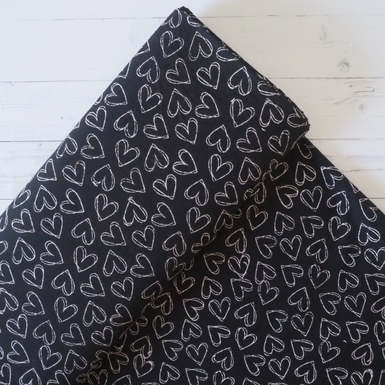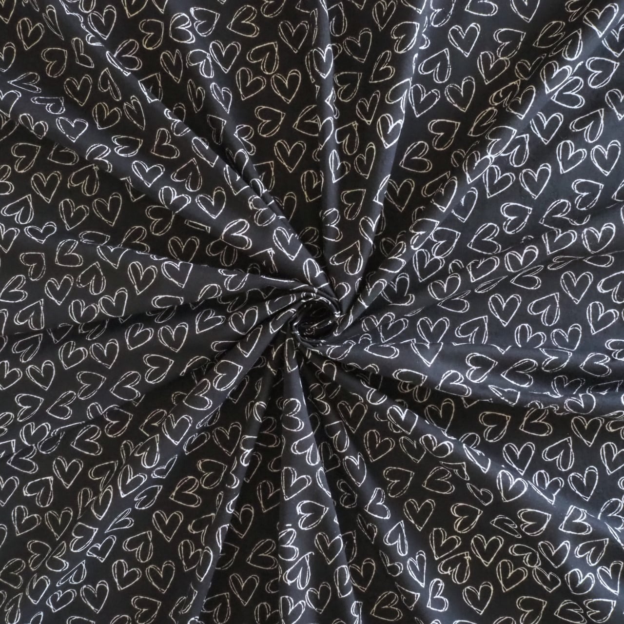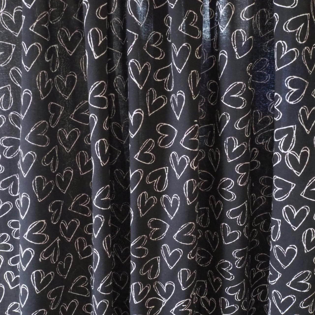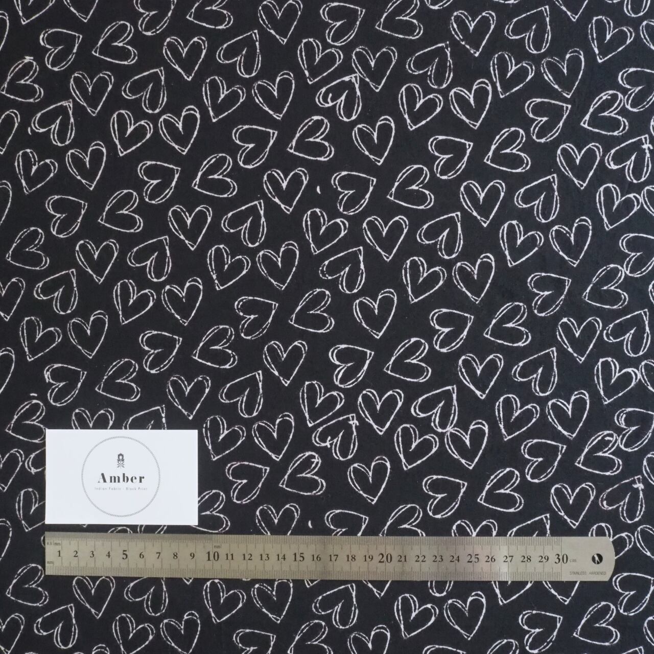 ブロックプリント生地【50cm単位】インド綿 ハート柄B ブラック #52110-BK1