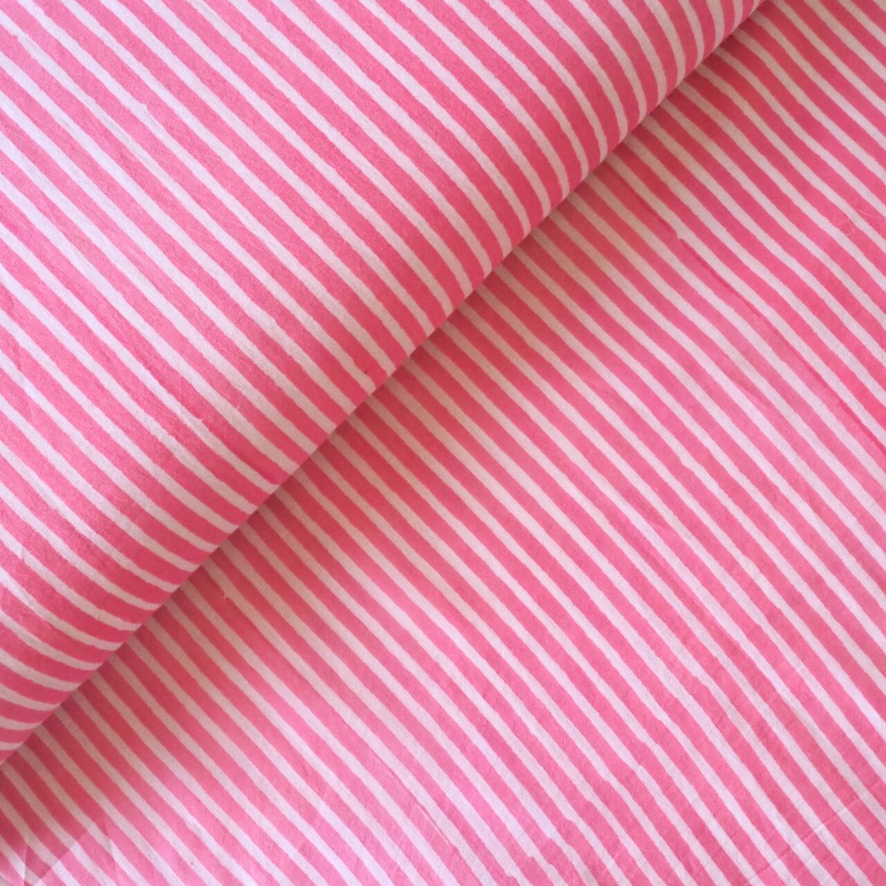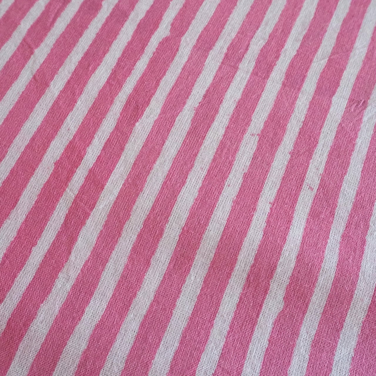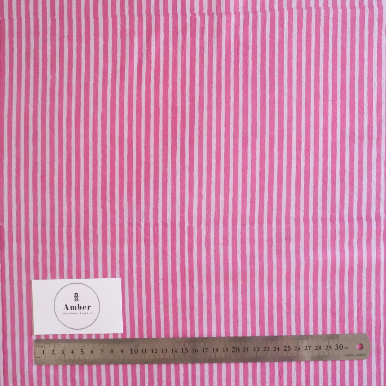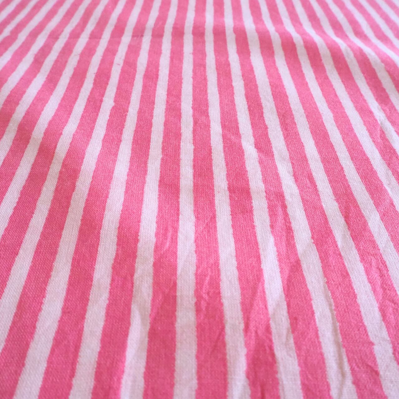 ブロックプリント生地【50cm単位】インド綿 ストライプ柄 ホワイト×ピンク #51910-PK1