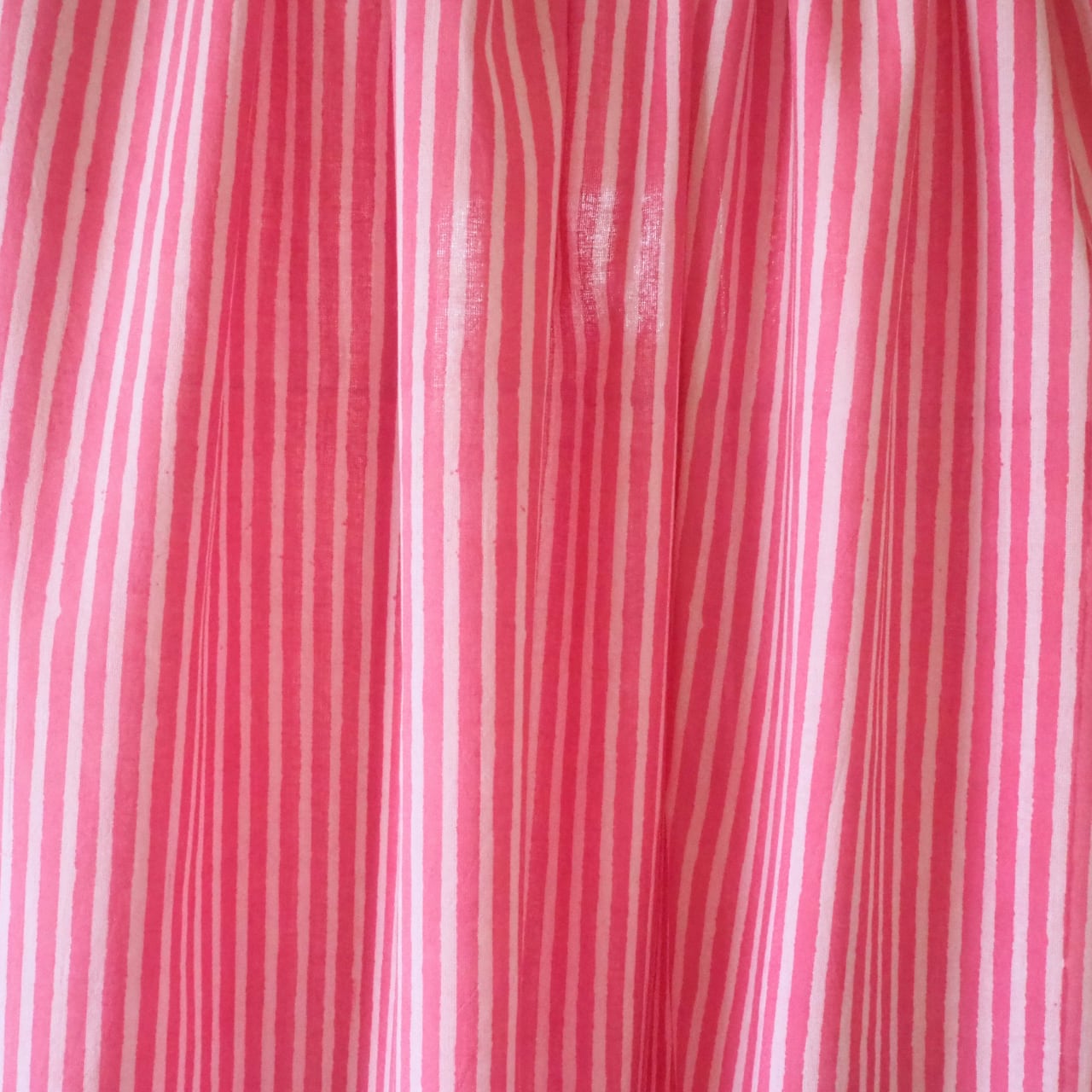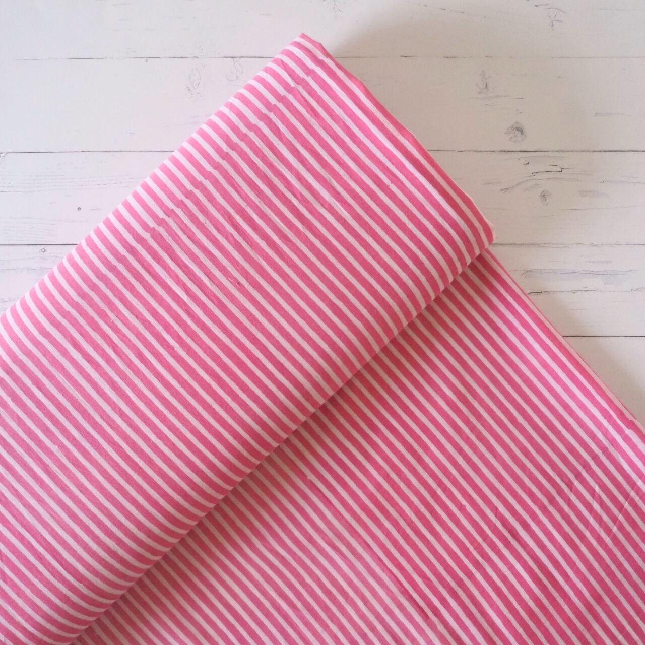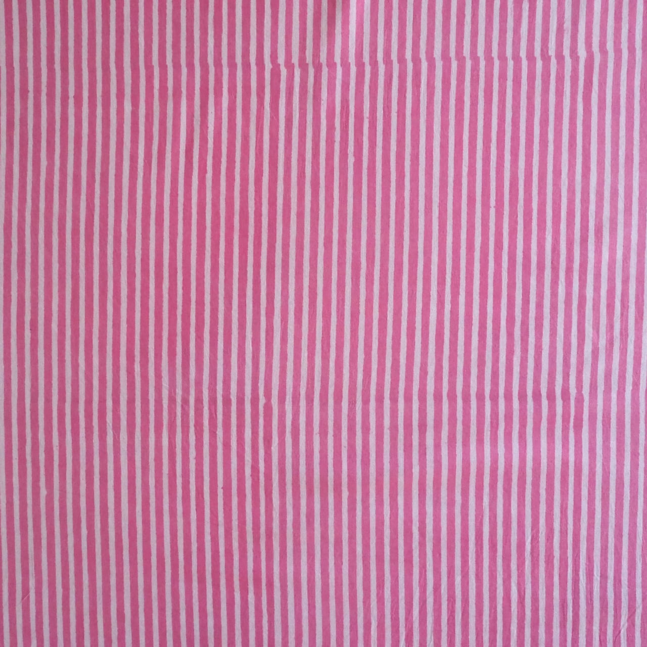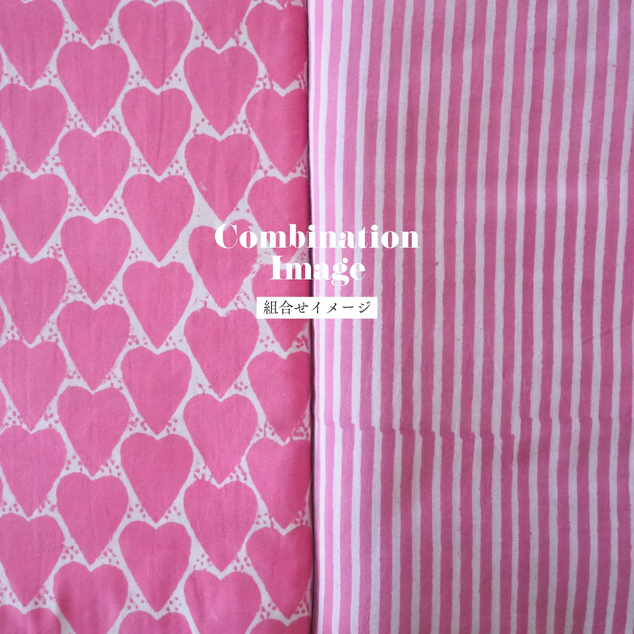 ブロックプリント生地【50cm単位】インド綿 ストライプ柄 ホワイト×ピンク #51910-PK1