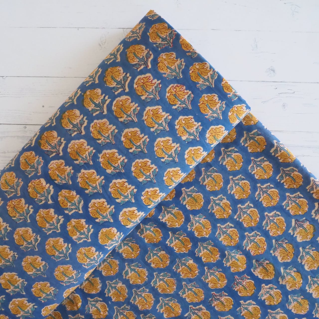 色むらや、柄のズレ、植物染料の匂いはハンドブロックプリントならではの味わいとなります。